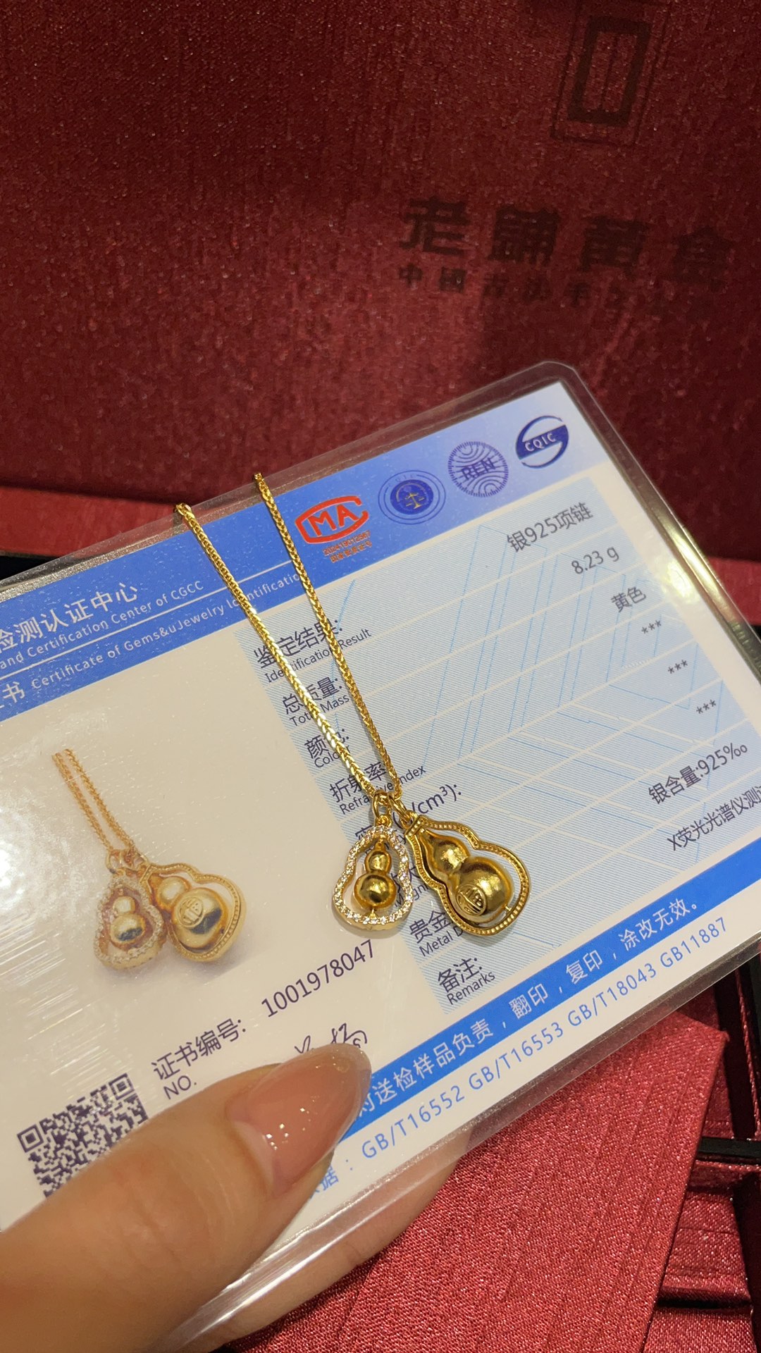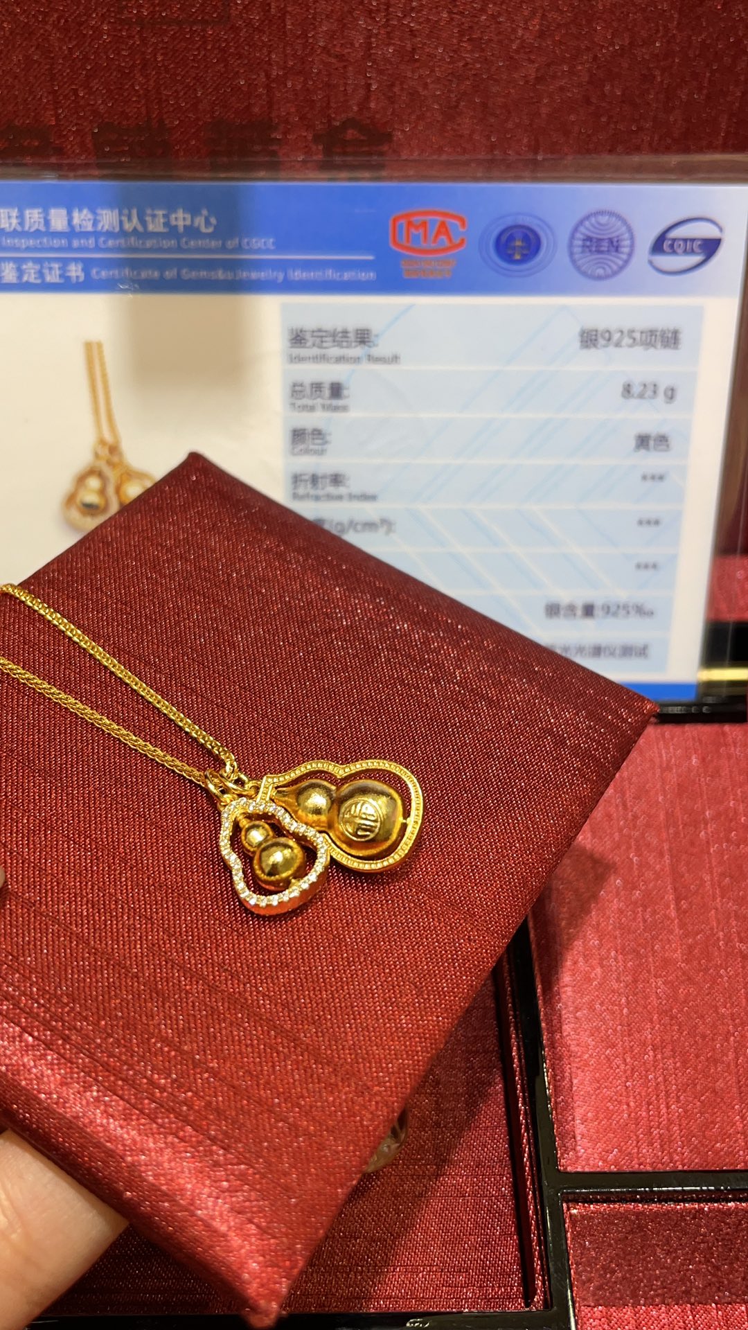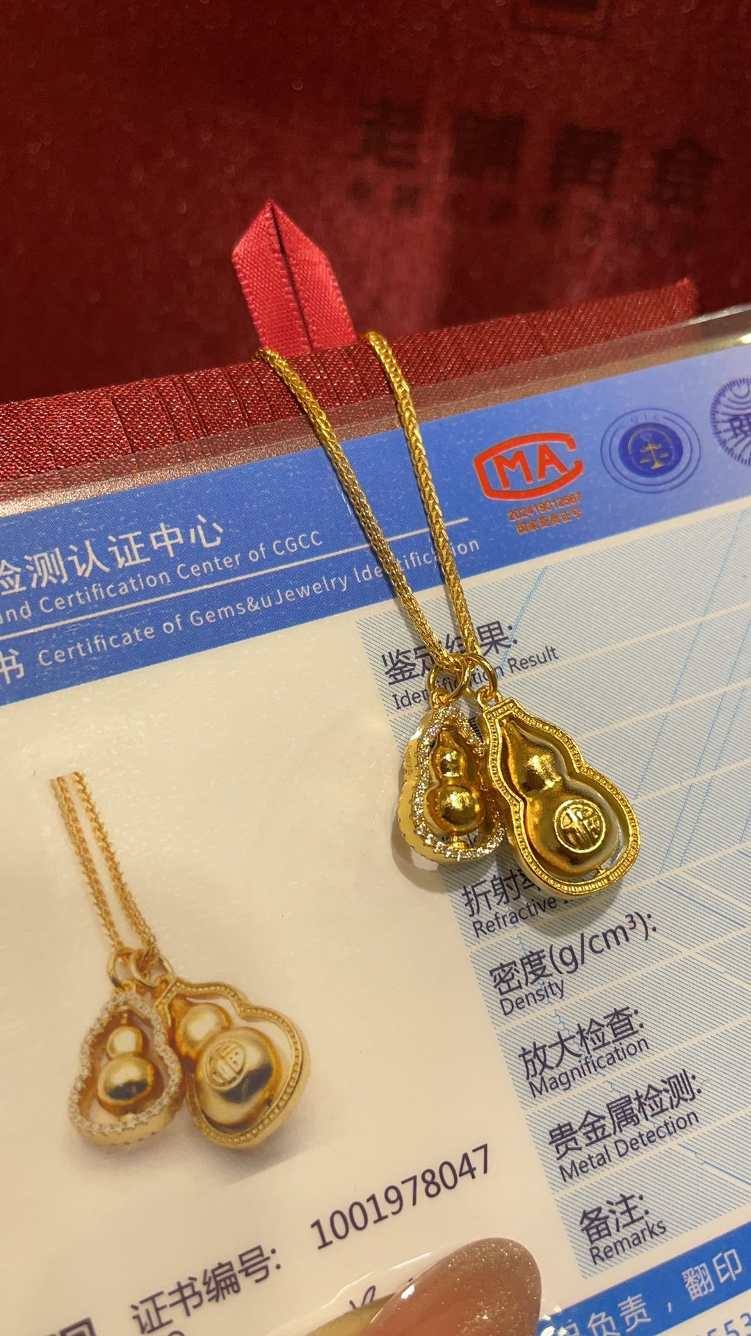 B家 时来运转金色镶钻福字立体双葫芦吊坠项链