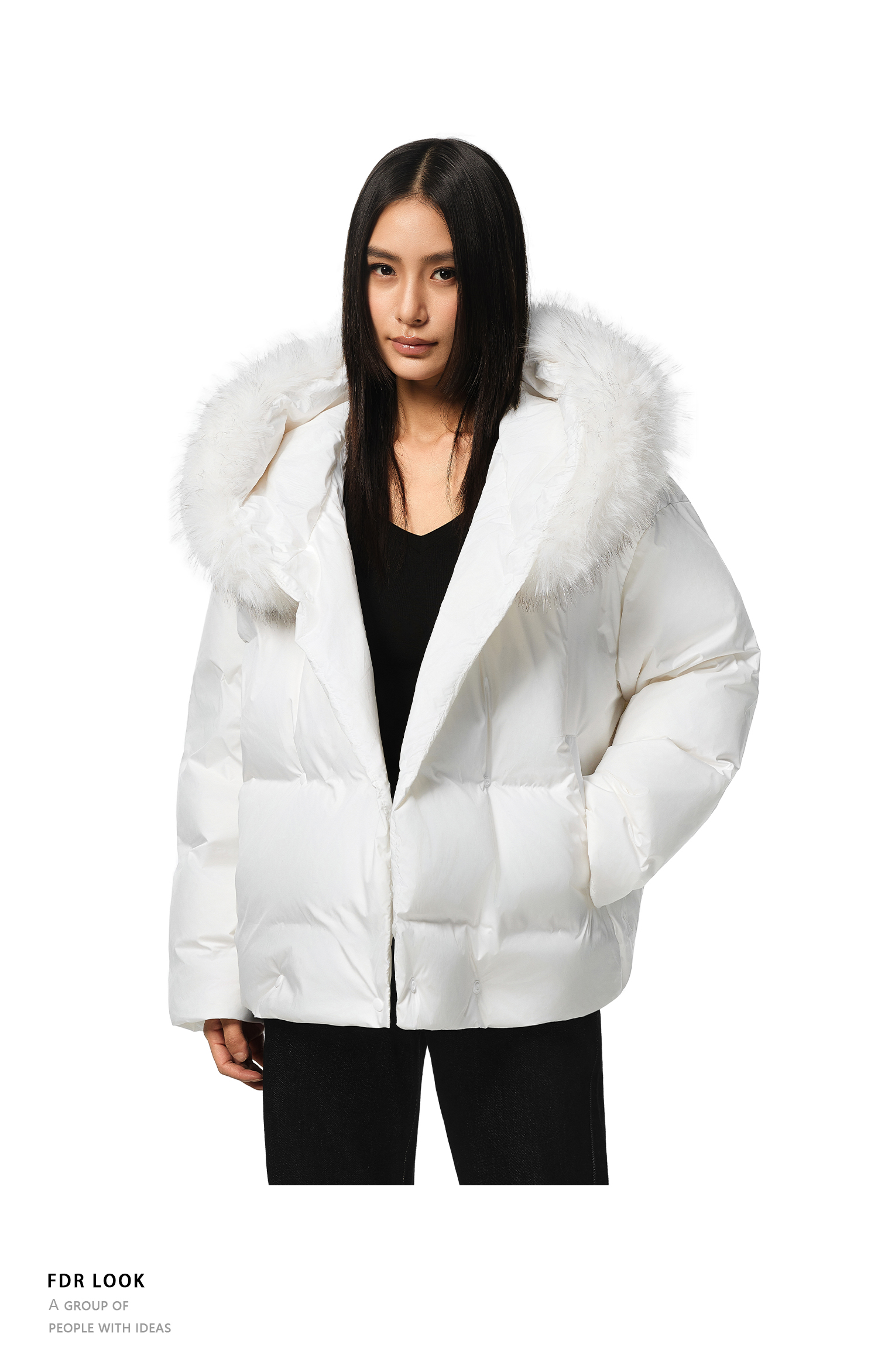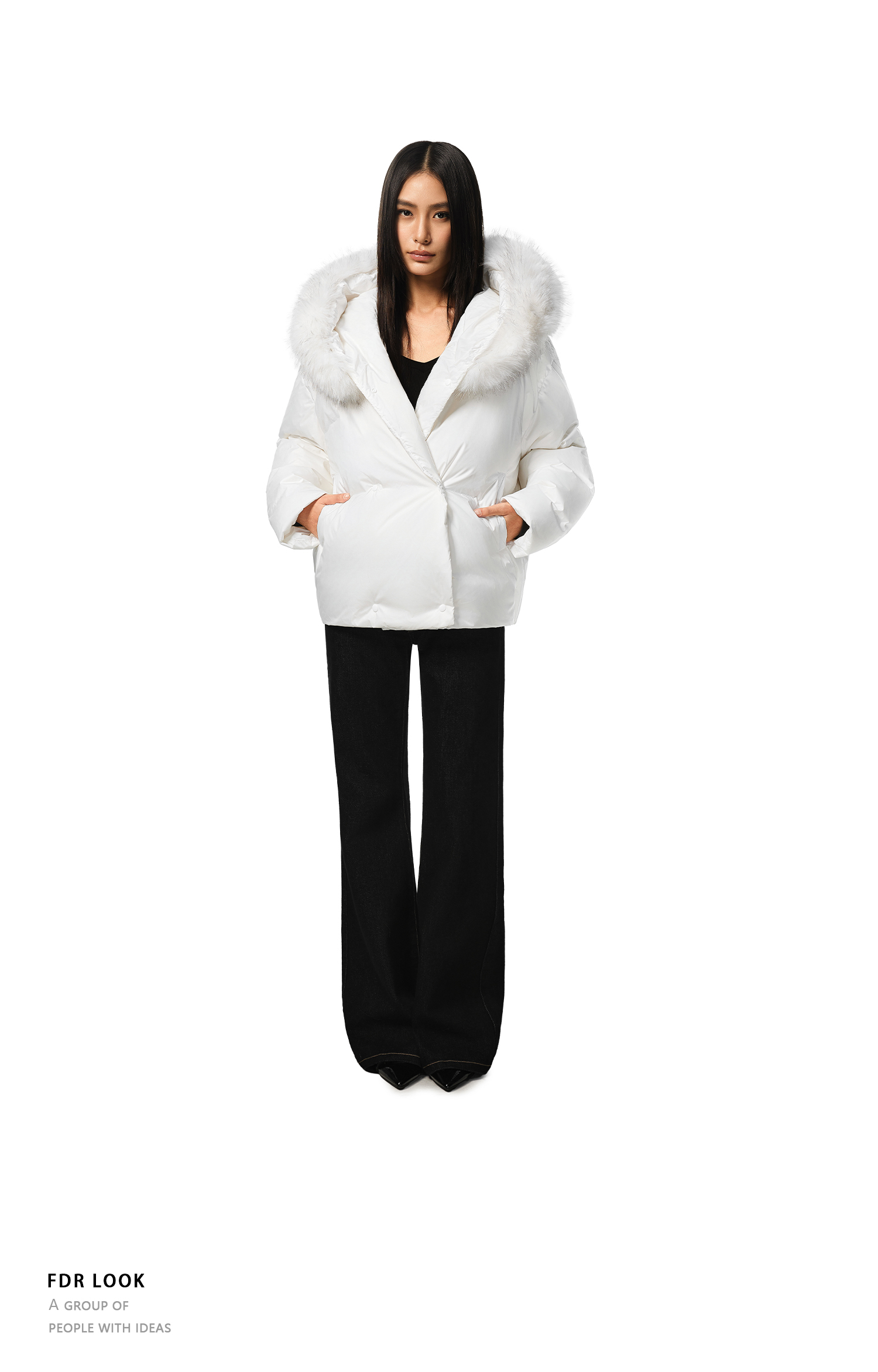 FDR官方店 双排扣毛领羽绒服女款冬季