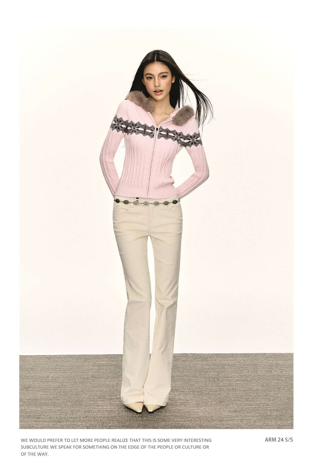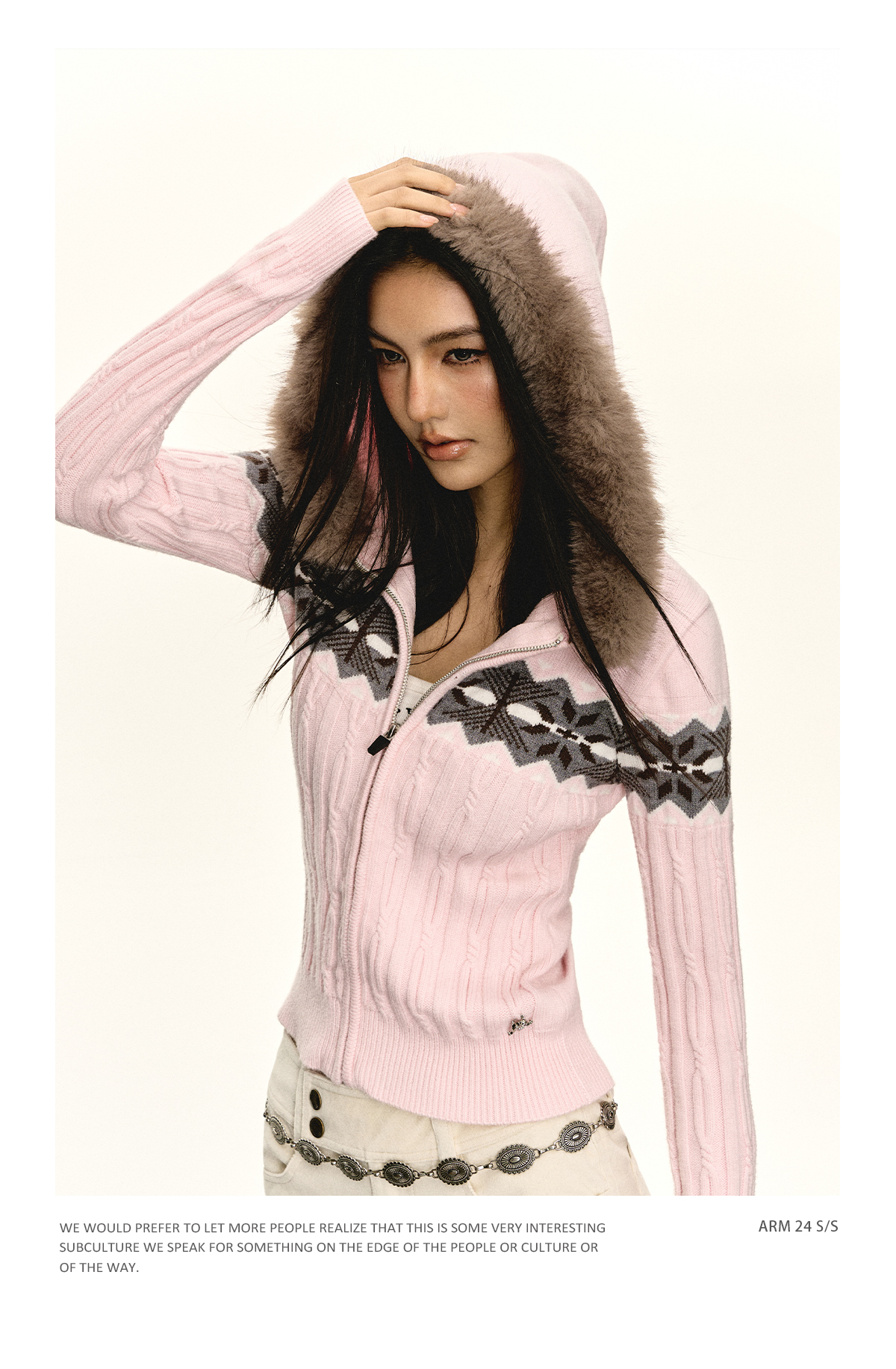Ariseism 美式复古连帽针织拉链开衫女2025春秋新款上衣毛衣外套