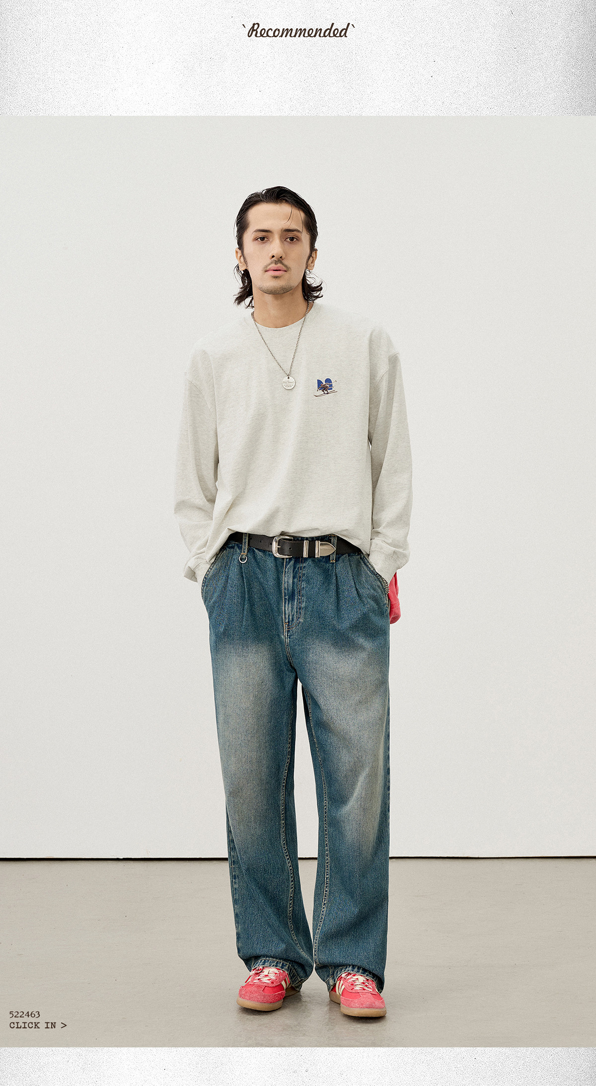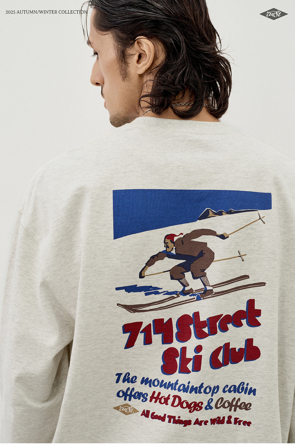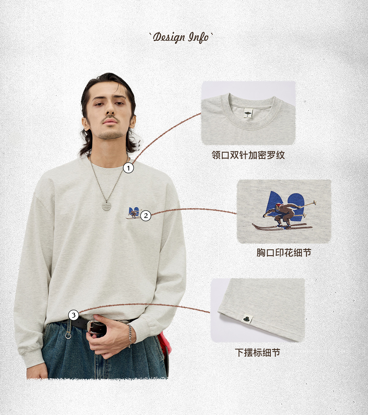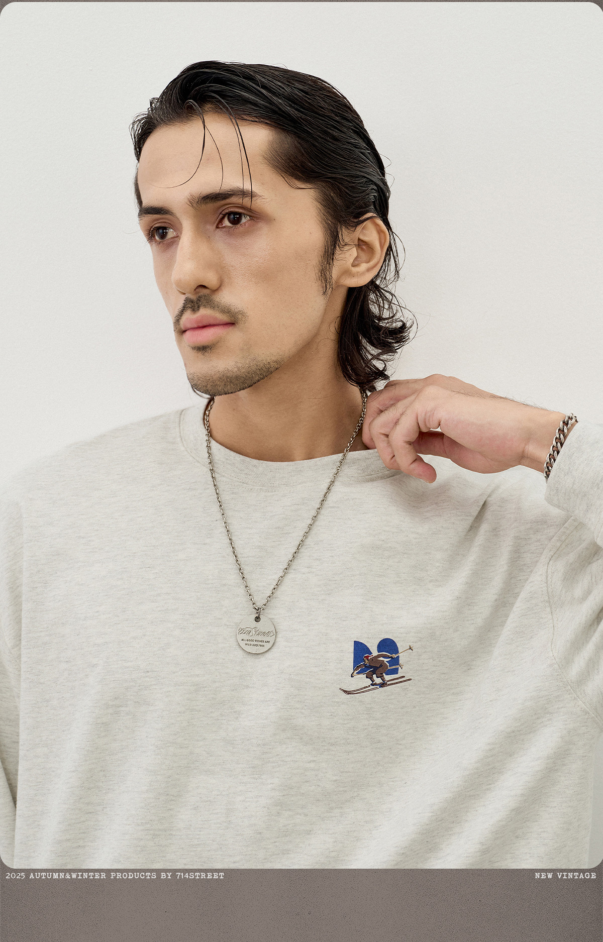 714street美式复古滑雪插画长袖上衣2025秋季情侣装纯棉印花T恤男