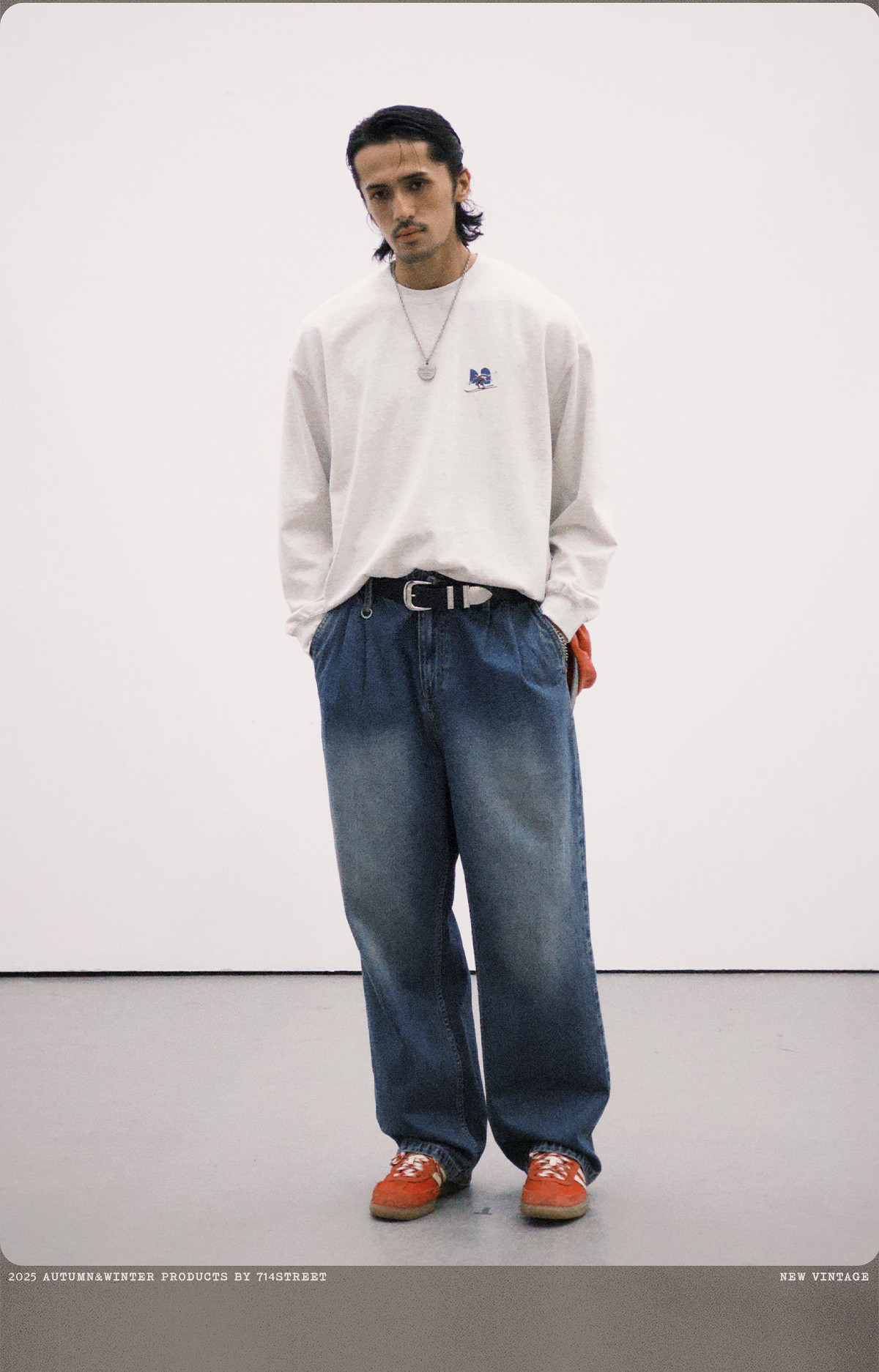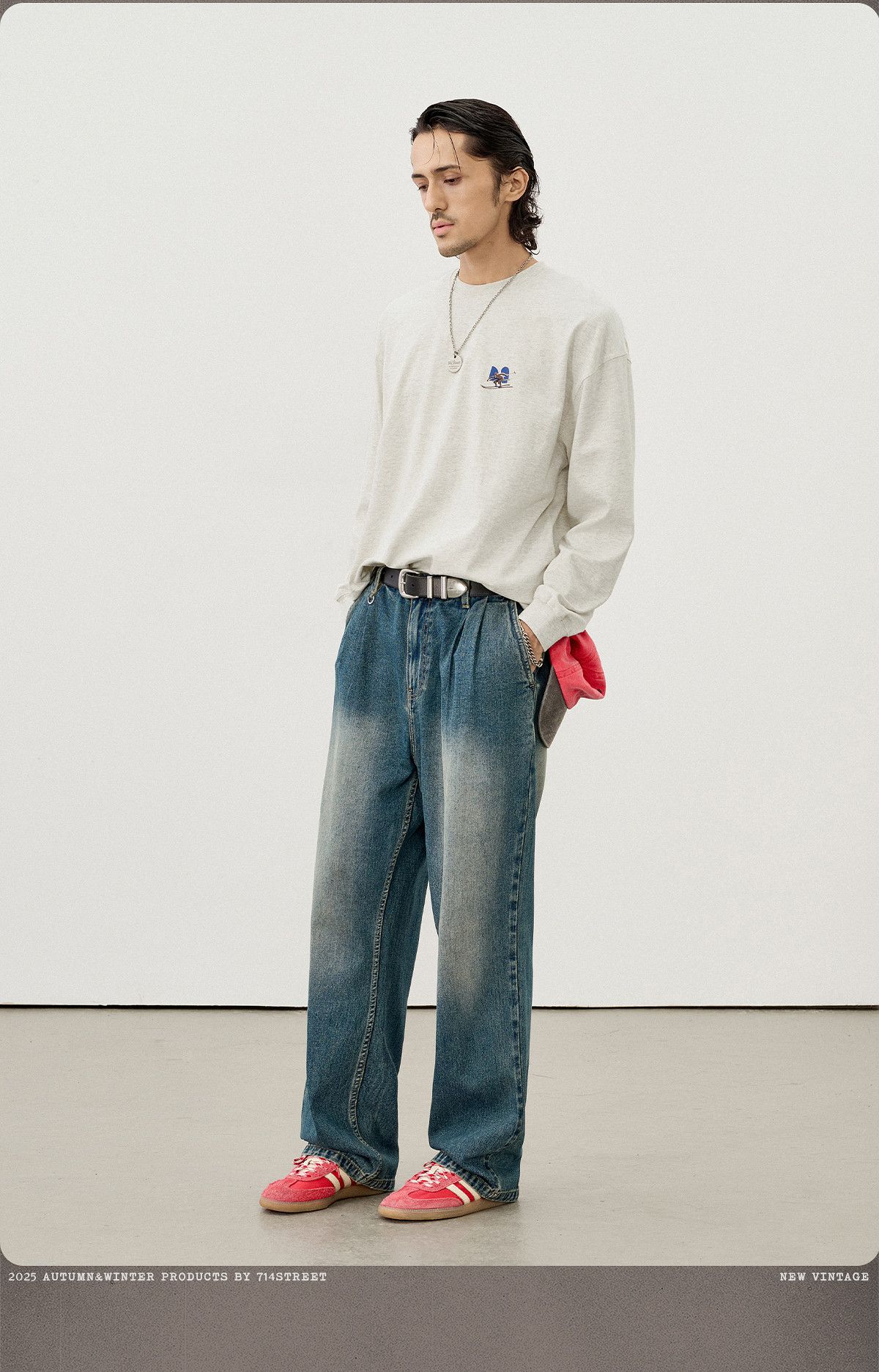 714street潮流百搭男士裤子2025秋季新款直筒裤宽松打褶毛圈卫裤