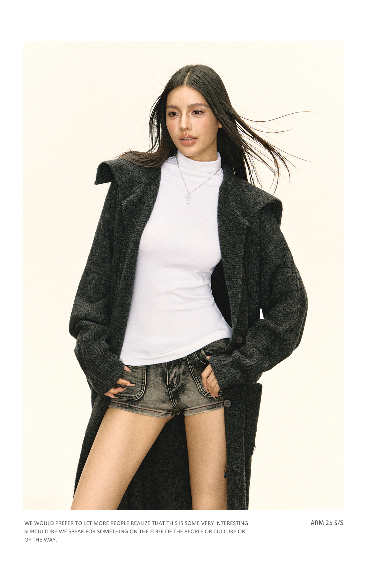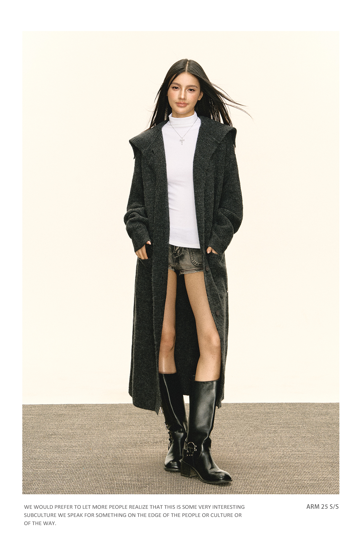 Ariseism 美式复古设计感修身露肩针织开衫女春季新款修身上衣