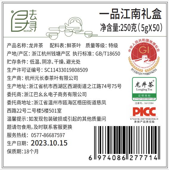【一品江南礼盒】去寻头春头采明前特级龙井茶罐国风高奢茶礼送礼茶叶
