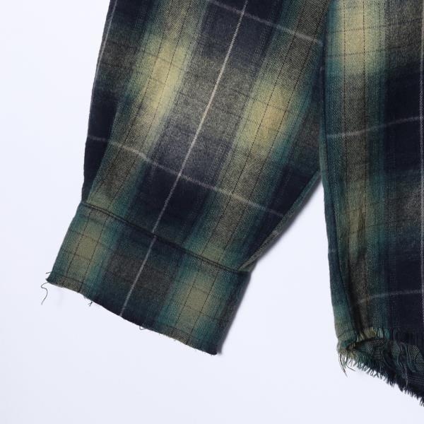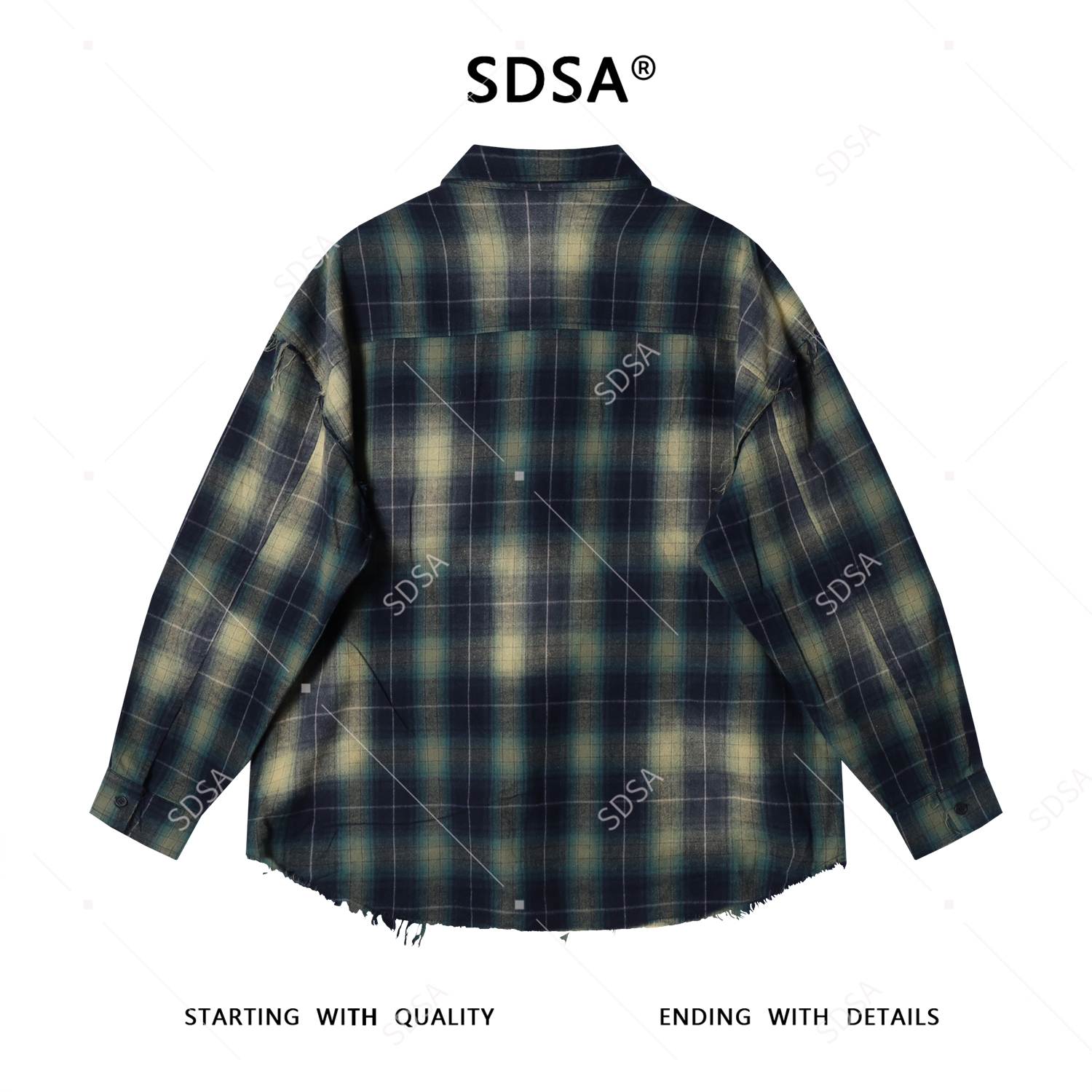25008SDSA秋冬新款痞帅男装韩版流苏扎染格纹纽扣翻领长袖衬衫百搭衬衣