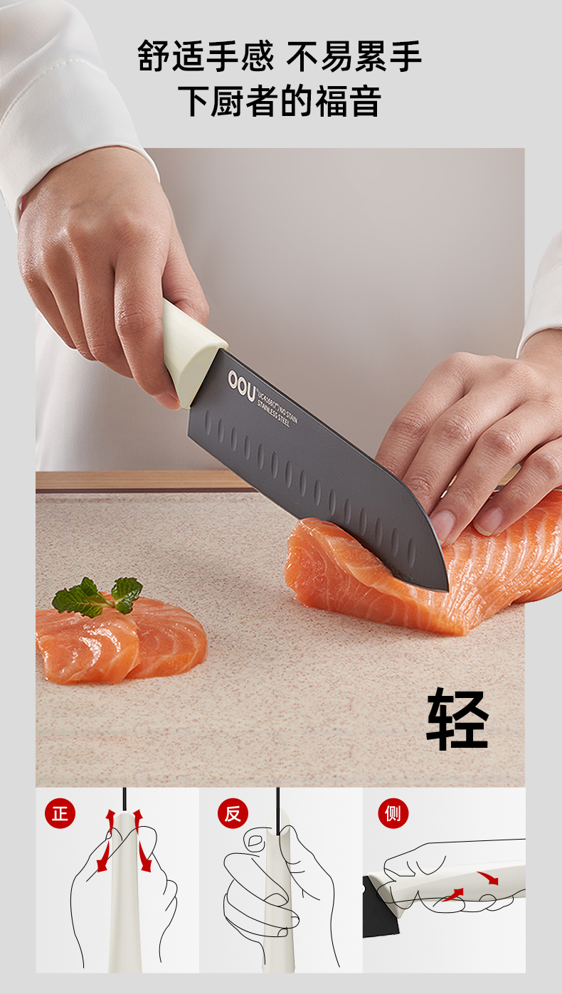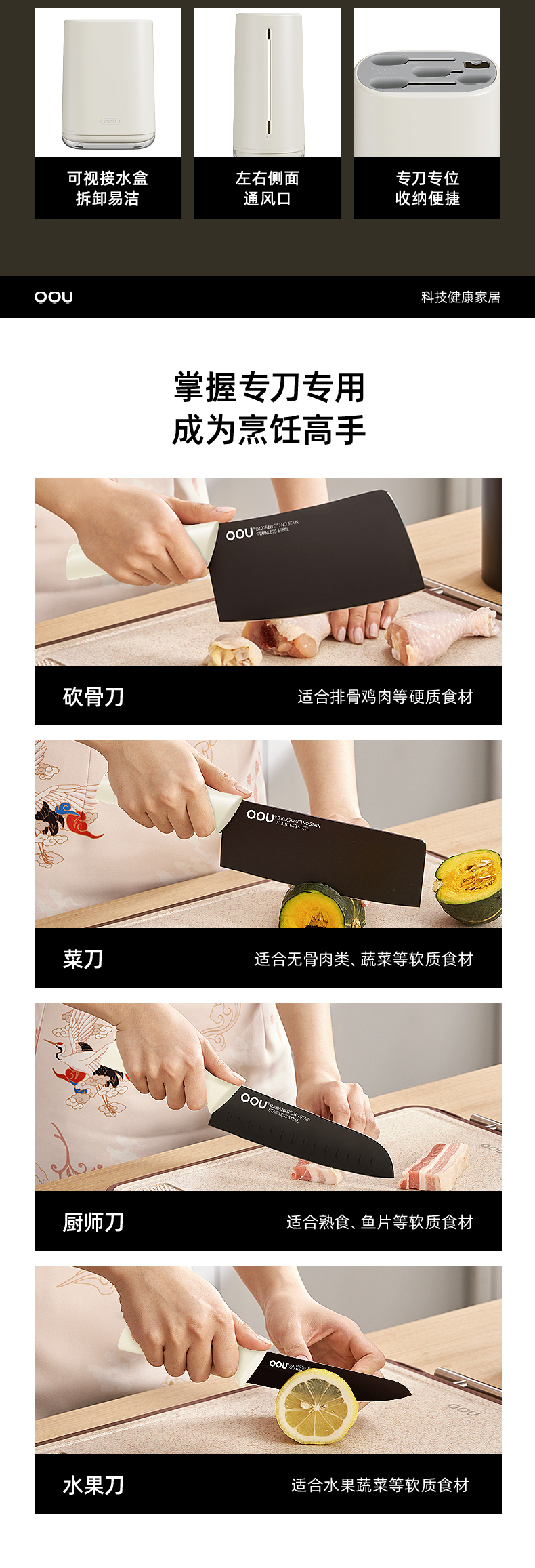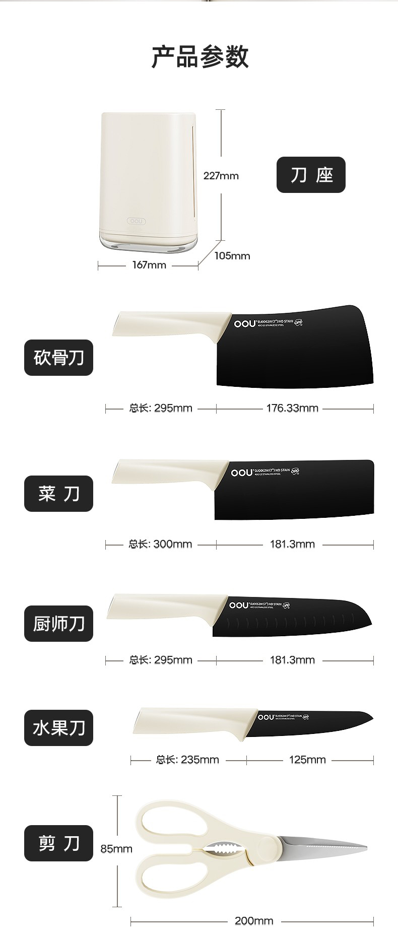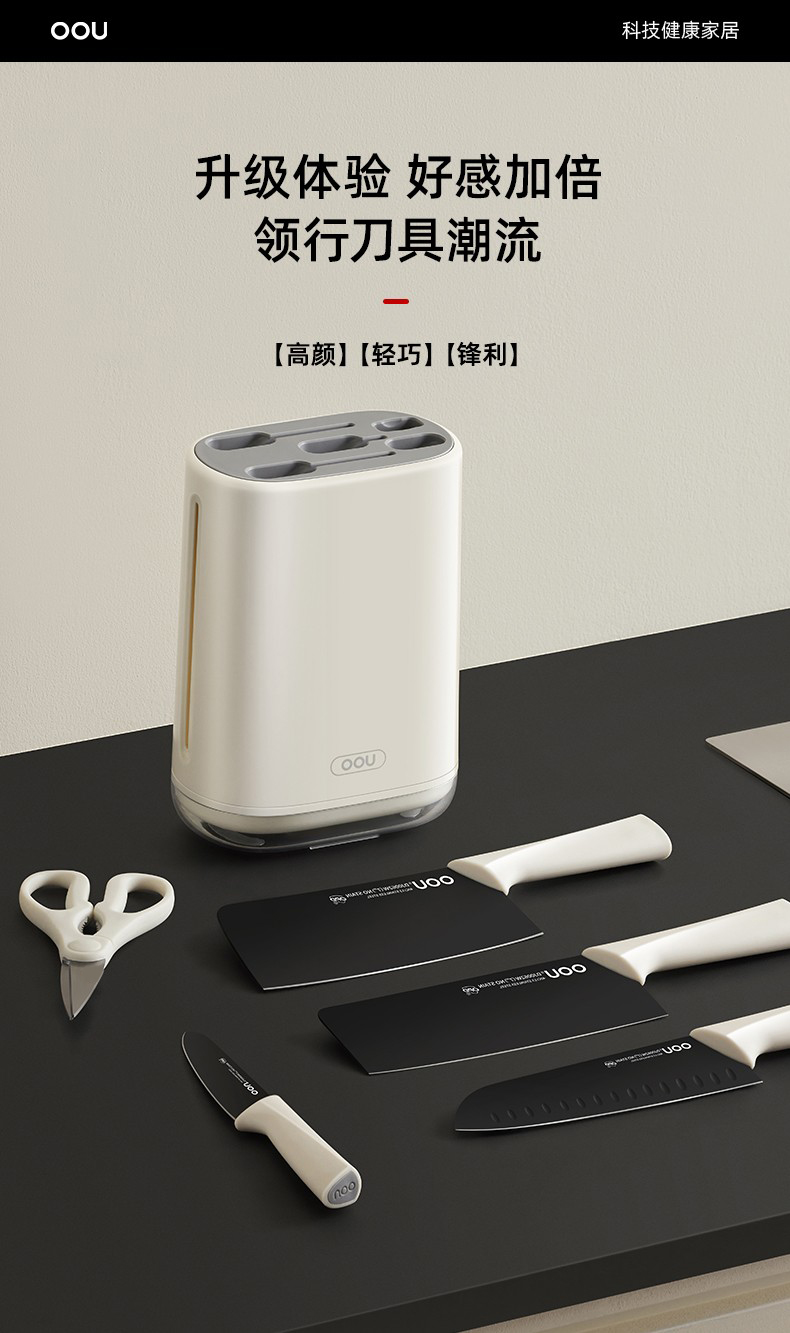 OOU刀具厨房套装组合抗菌防霉不锈钢菜刀带菜板砧板刀架收纳一体