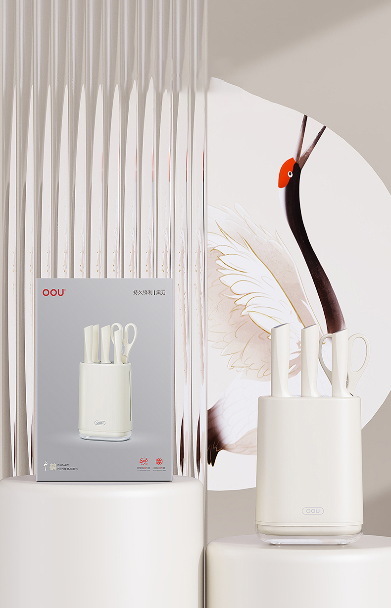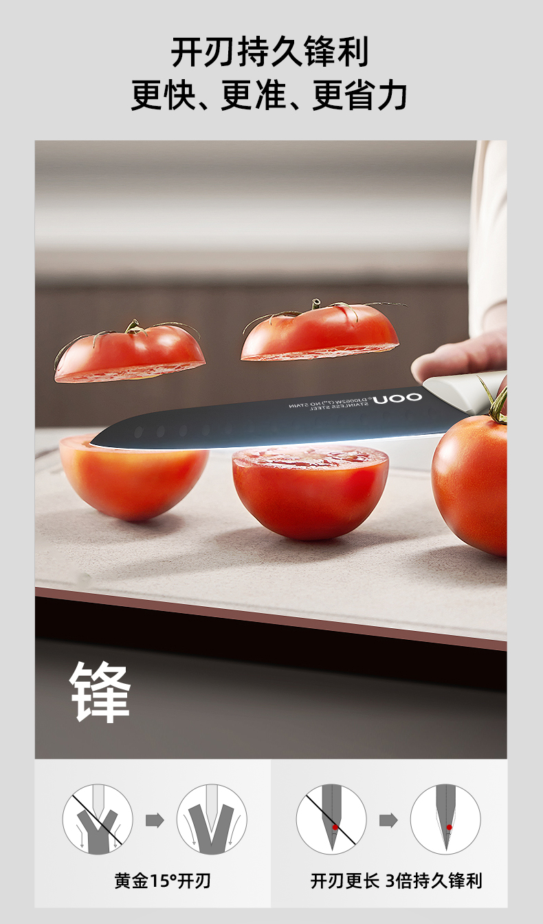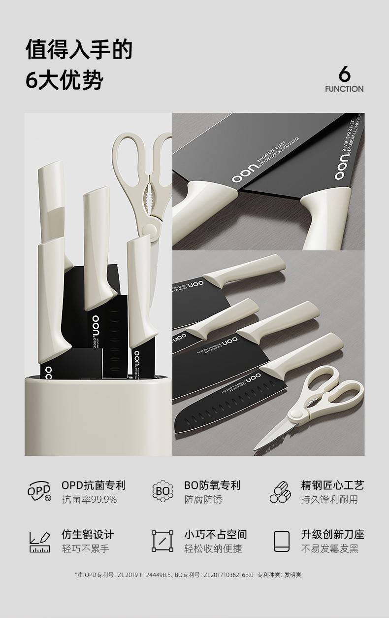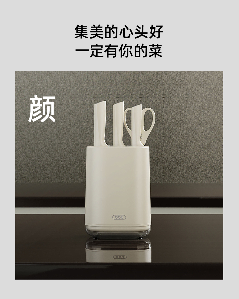 OOU刀具厨房套装组合抗菌防霉不锈钢菜刀带菜板砧板刀架收纳一体