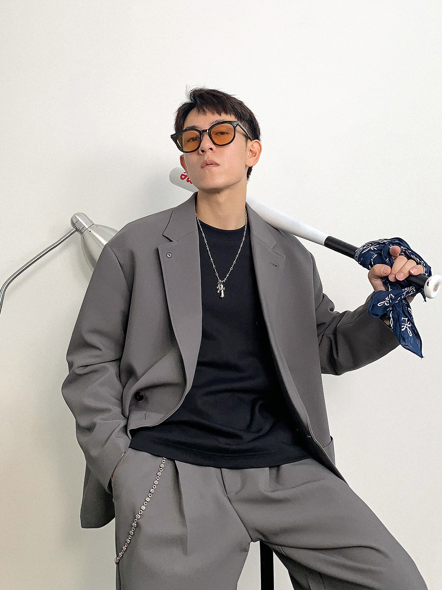 徐太浪暗人字纹面料西服男秋季2024新款潮牌商务休闲宽松西装外套