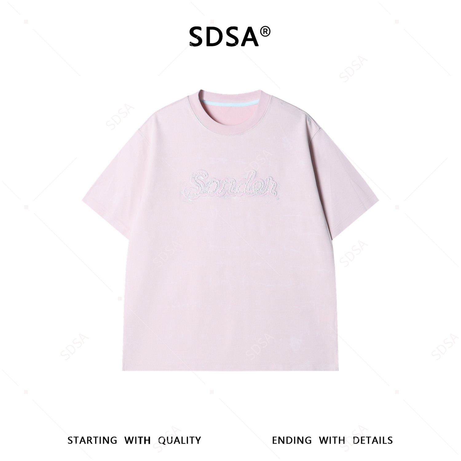 SDSA男装2026新款潮牌短袖t恤情侣肌理纹字母刺绣宽松半袖上衣
