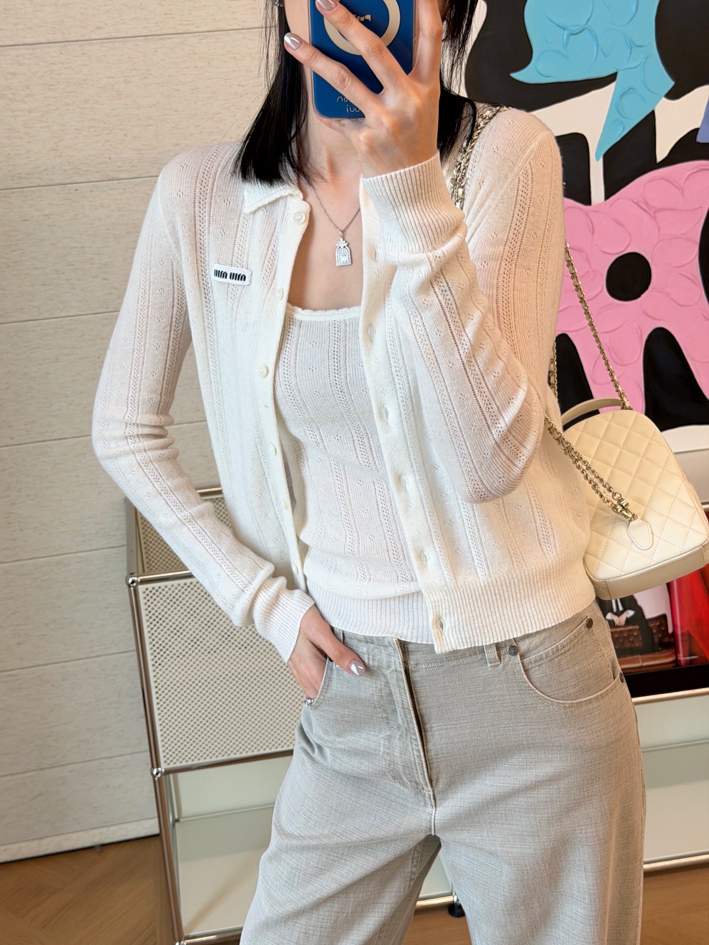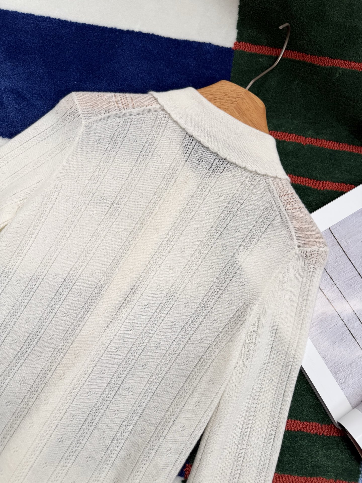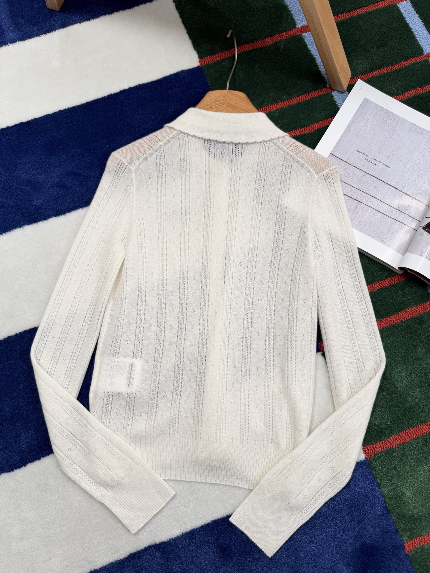 【新款现货发售】最新款🌠 米白色长袖针织开衫💫一眼即心动,温柔气质悄然漾开💓定制纽扣点缀其间,缕空织法细腻通透,每一处细节皆见匠心,精致度满分👏上身即显品味,时髦姿态轻松拿捏🧳面料质感无可挑剔,触感柔滑似云✨特别定制羊绒纱线🧶,亲肤穿着毫不扎人,绵软糯滑🫶🏻无论内搭外穿皆显风格🥰堪称时髦精必备的经典单品🔖注定成为你衣橱里反复穿搭的挚爱❤️更在视觉上拉升时髦气场🌟码数SML