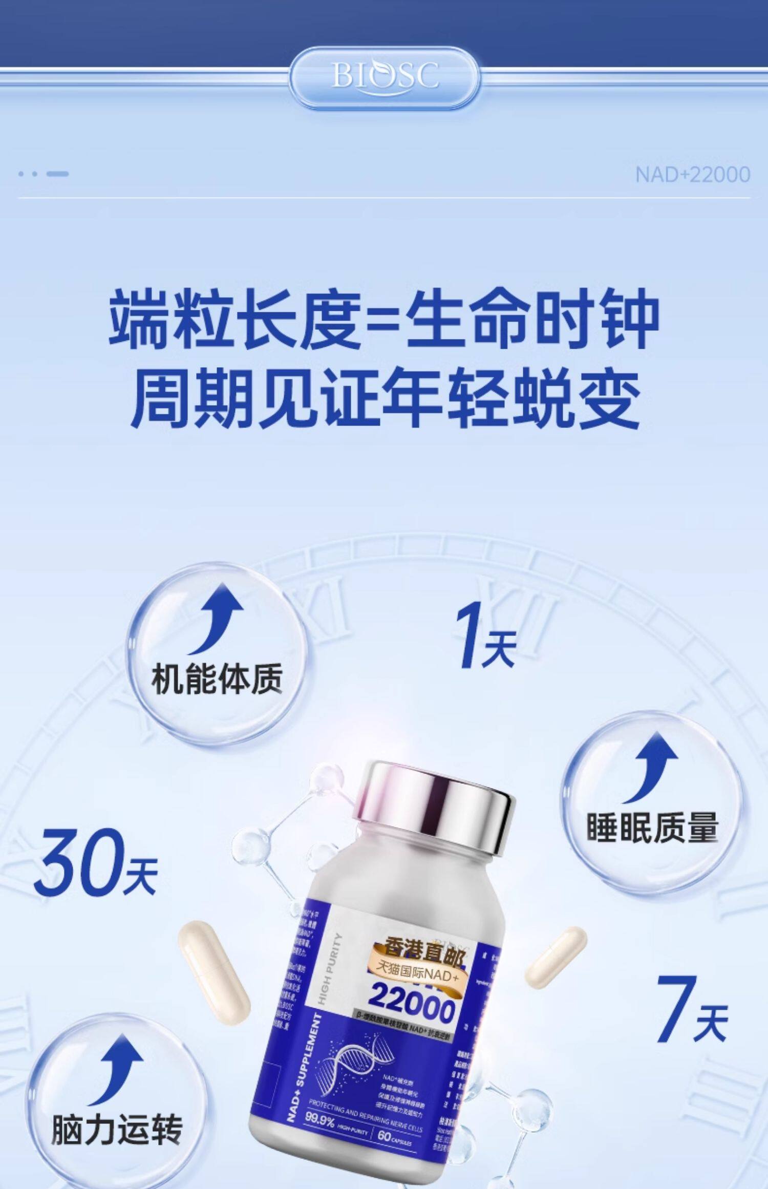 柏澳斯BioscNMN22000β烟酰胺单核苷酸nad+补充剂PQQ香港原装60粒