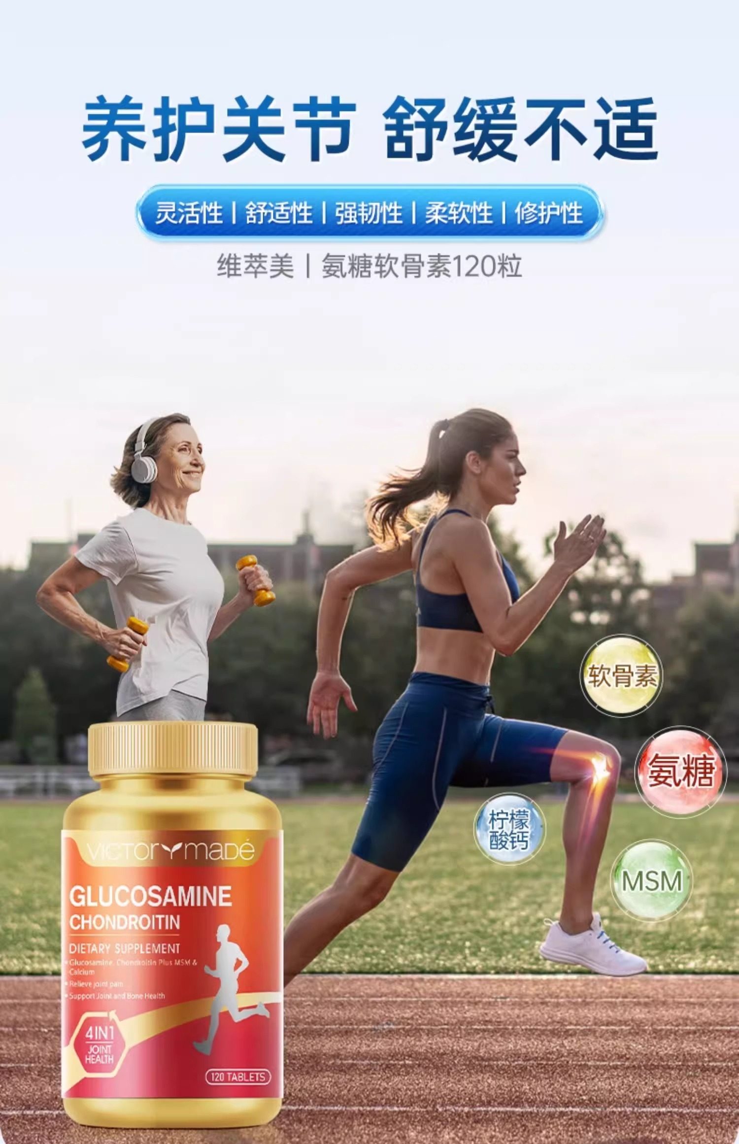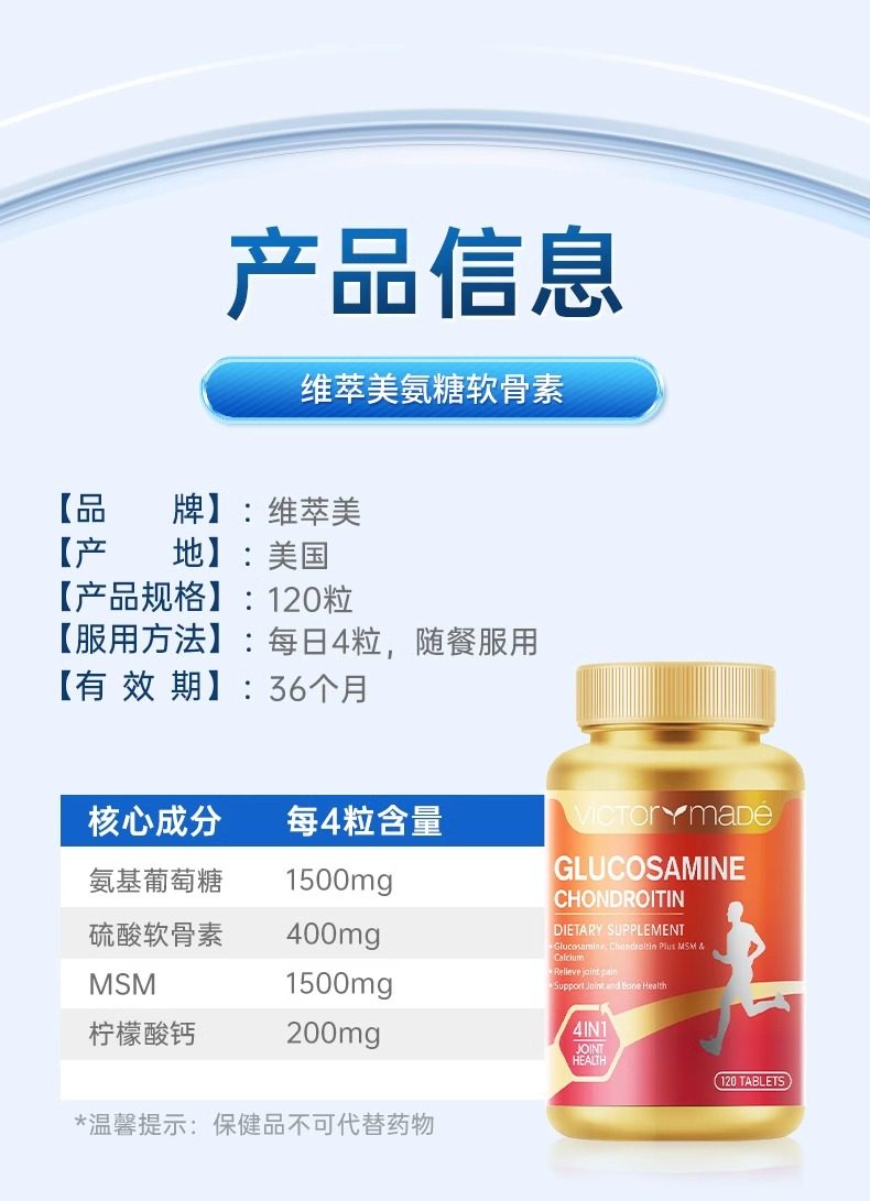 【赠品】维萃美4倍强效氨糖软骨素钙片美国原装进口老年人护关节