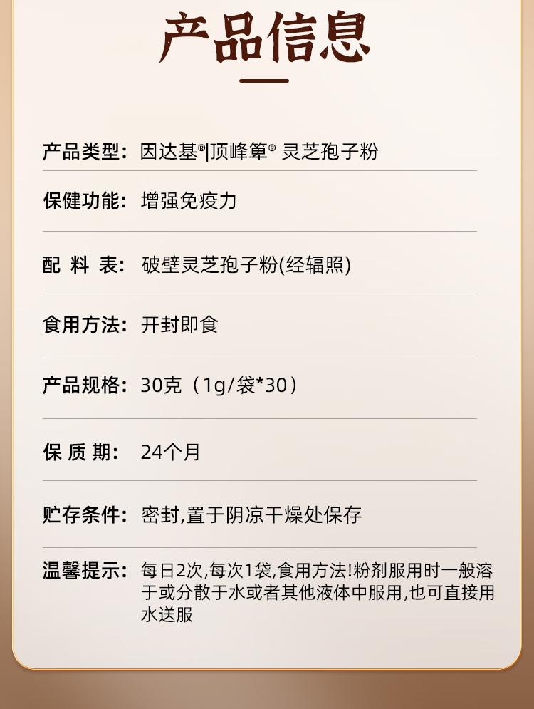 因达基灵芝孢子粉破壁灵芝孢子粉正品增强免疫力长白山袍子粉