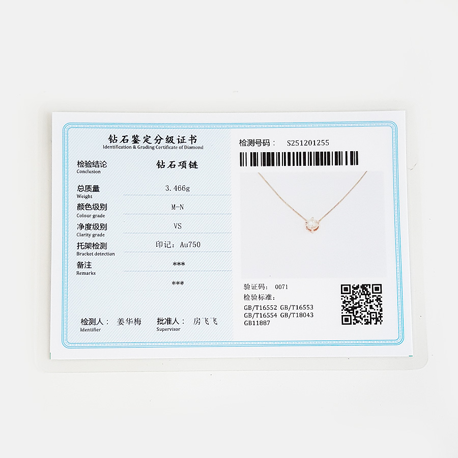AU750玫瑰金简约时尚单钻款1.02克拉钻石吊坠项链6.1*6.1*5.3MM(皆取最大值)链长:42CM 151225NJS23