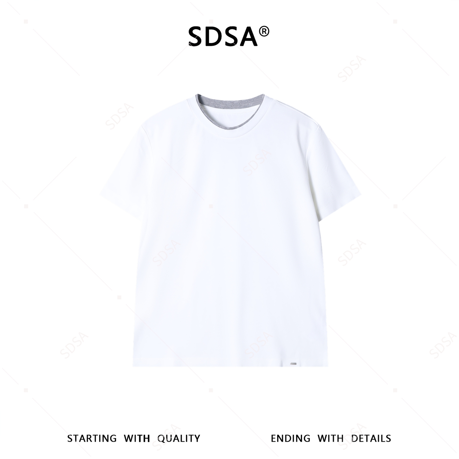 SDSA男装2026新款高贵轻奢简约领口拼接撞色圆领短袖T恤百搭时尚