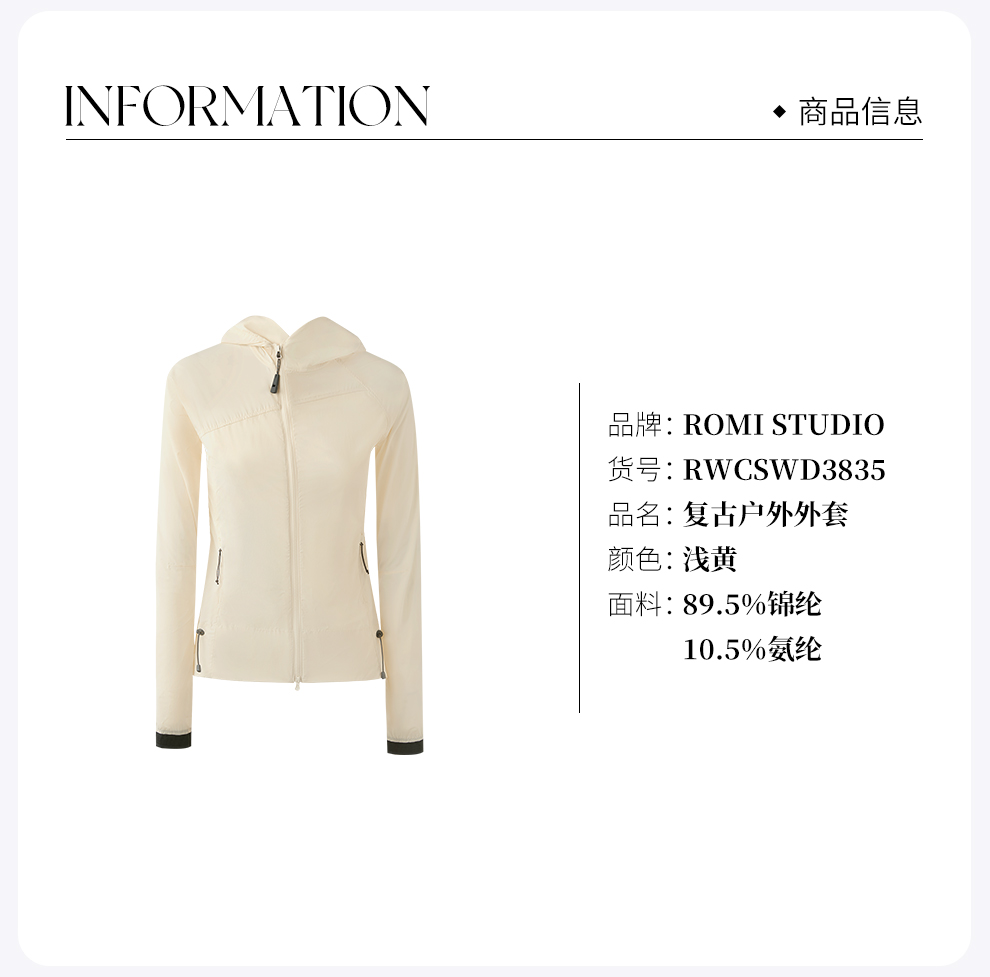 ROMI STUDIO 防晒UPF80轻量化超轻薄修身连帽防晒外套RWCSWD3835【发货时间25-30天】