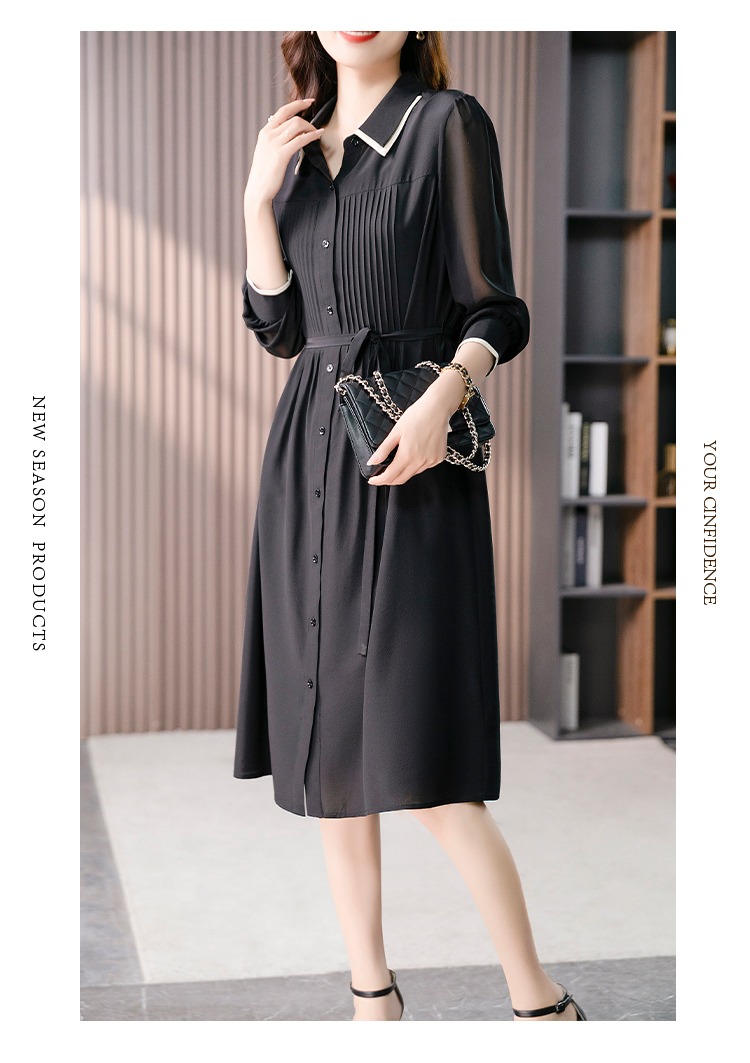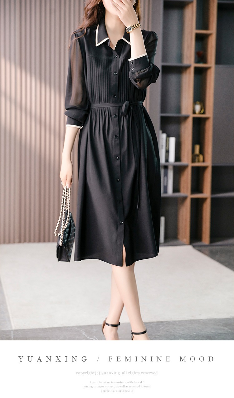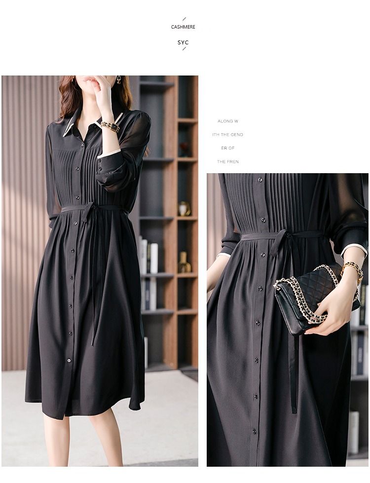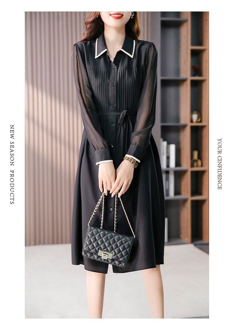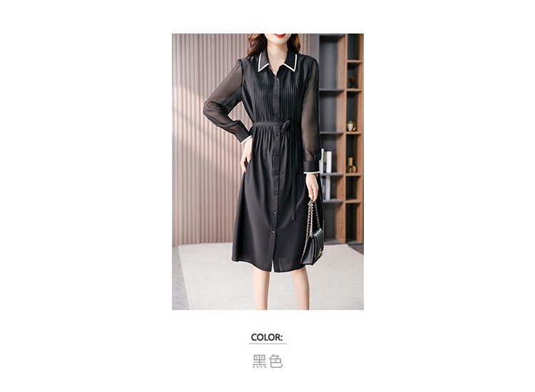 YX【定制15天】显瘦真丝双绉衬衫连衣裙女2024夏季新款系带收腰桑蚕丝中长裙