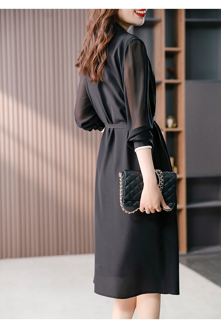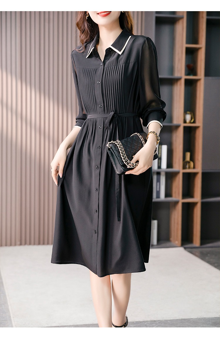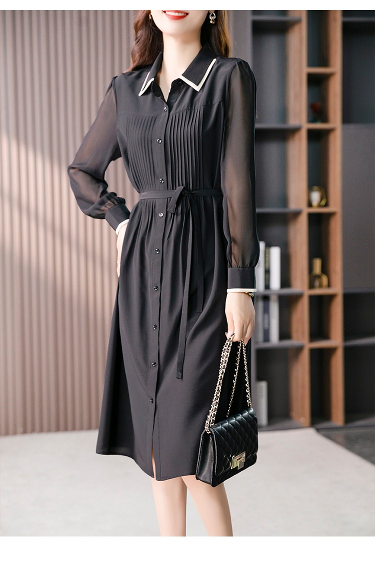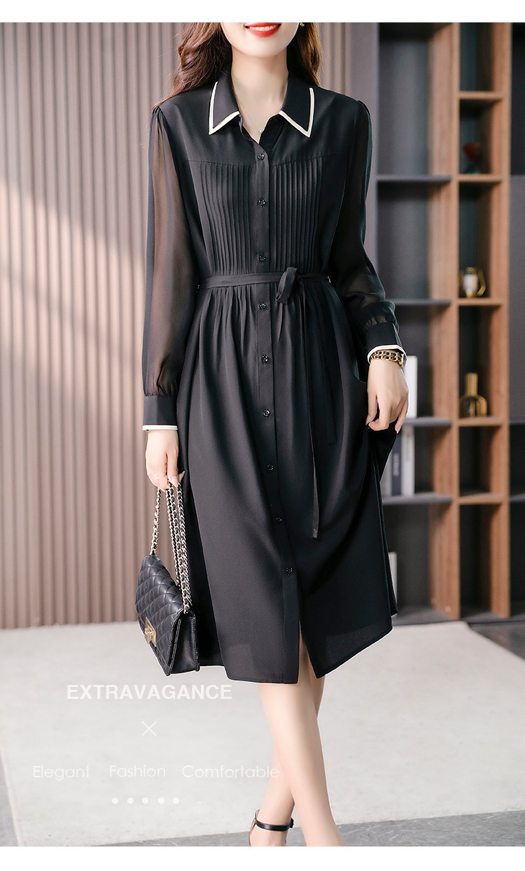 YX【定制15天】显瘦真丝双绉衬衫连衣裙女2024夏季新款系带收腰桑蚕丝中长裙