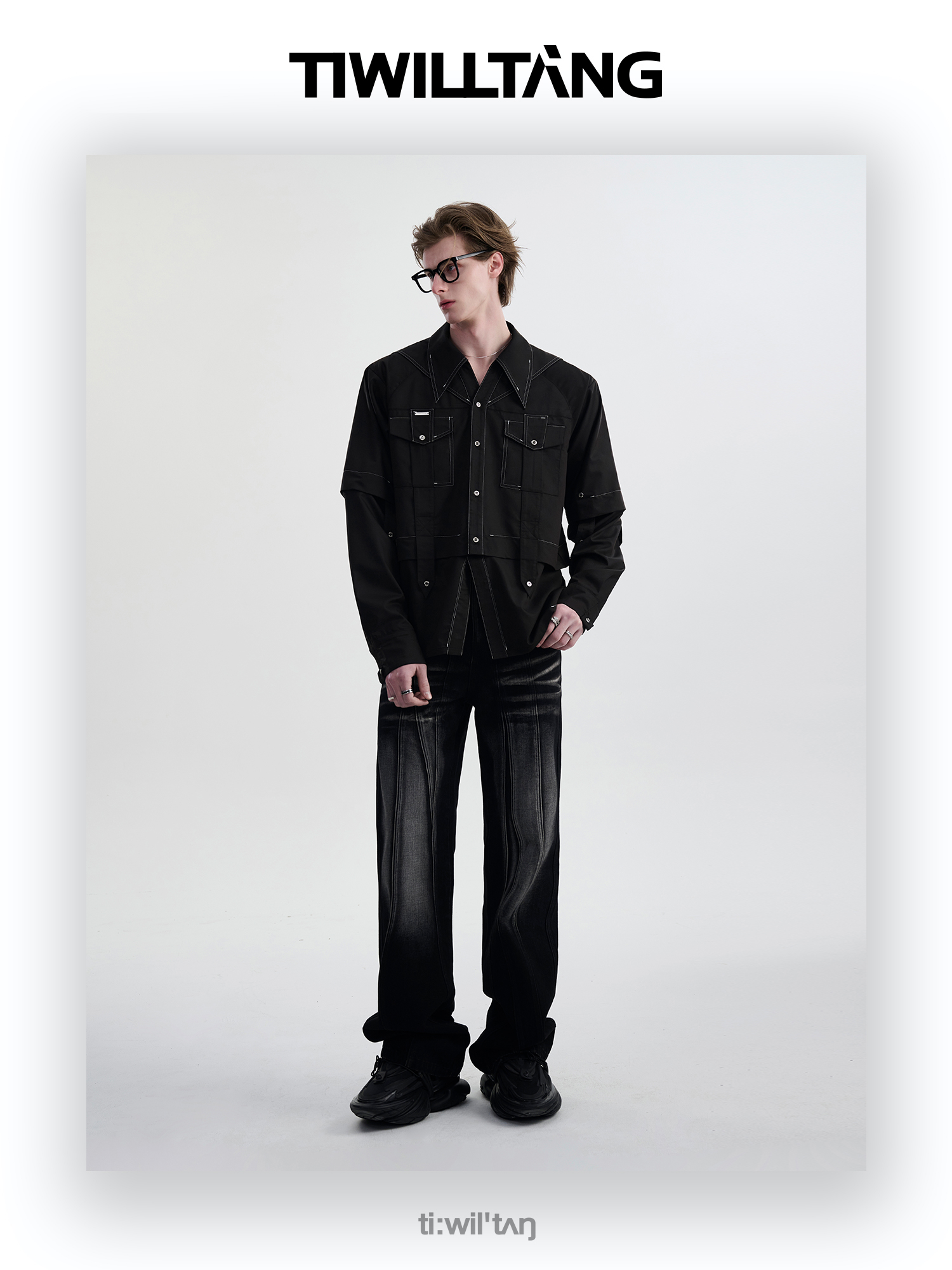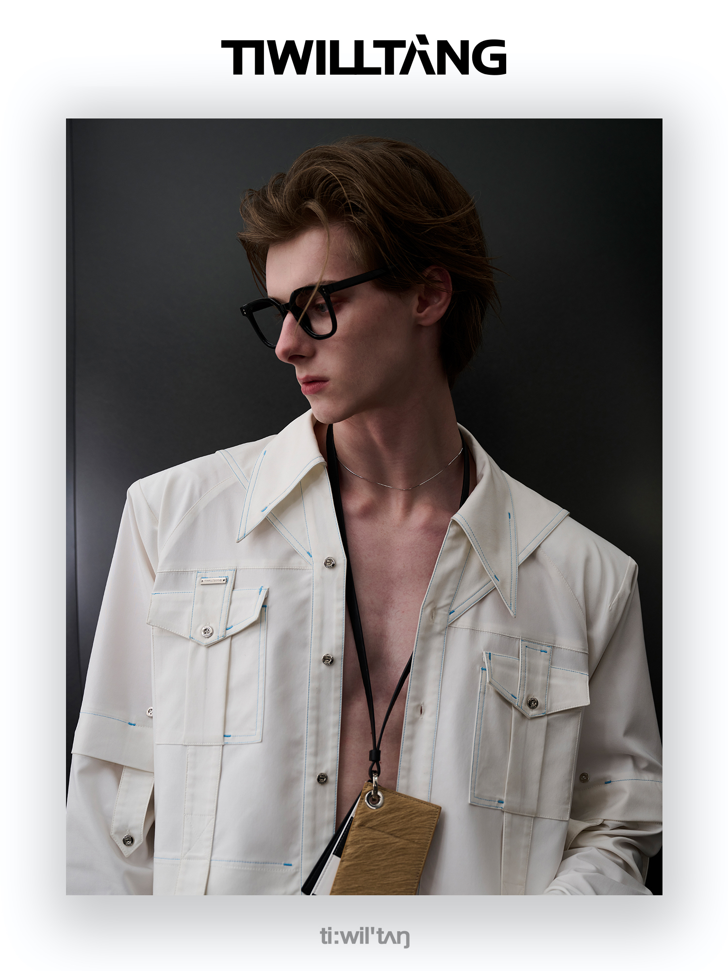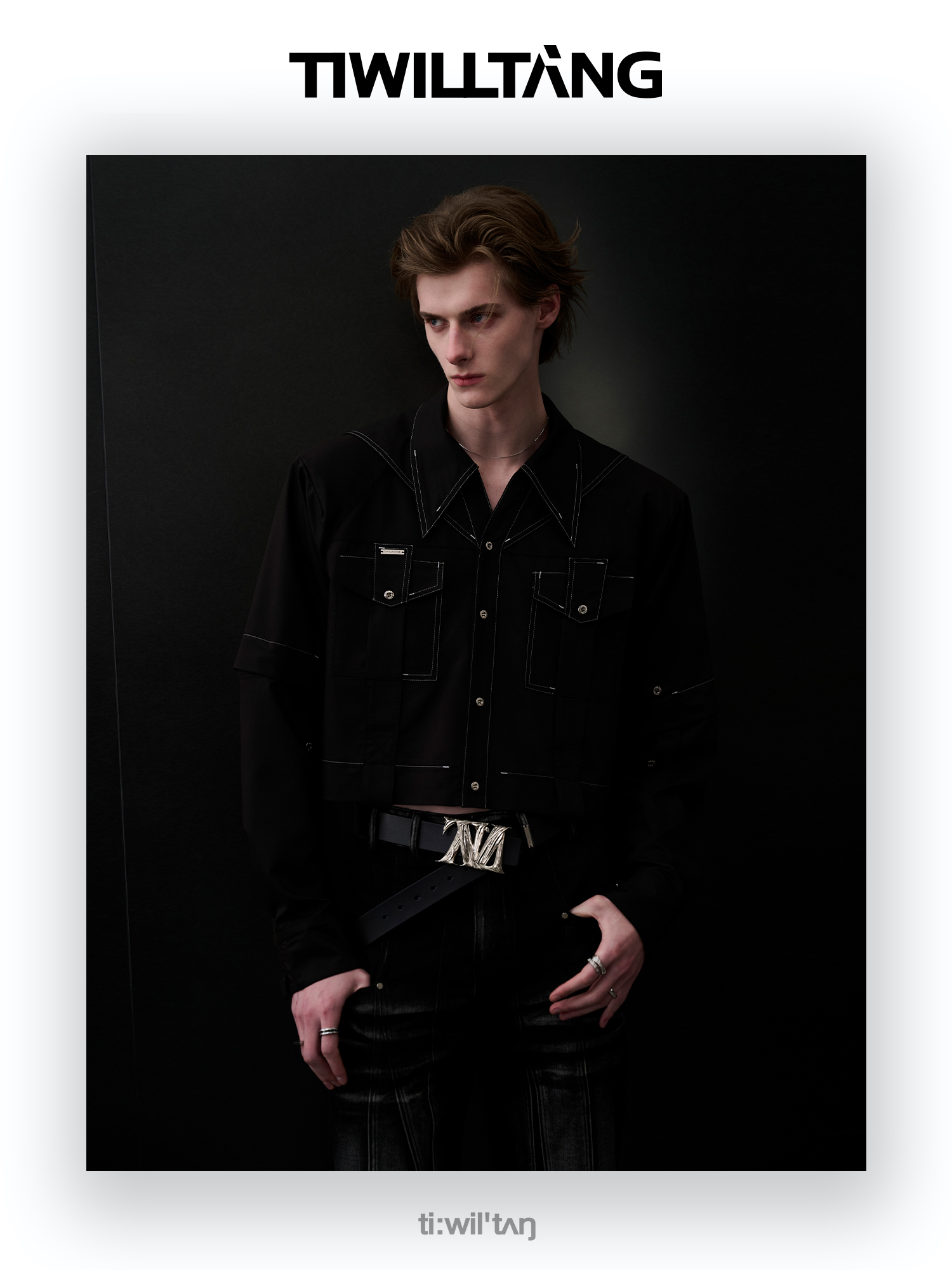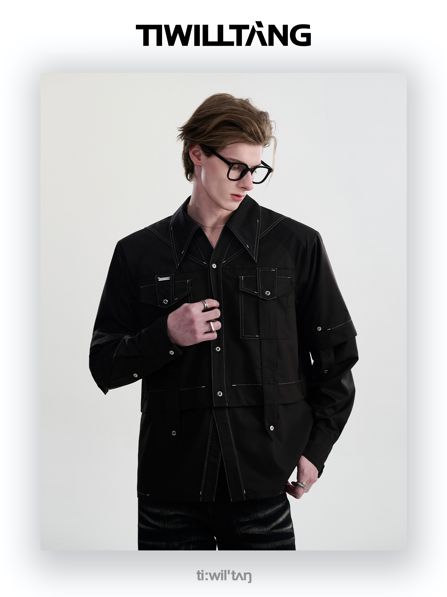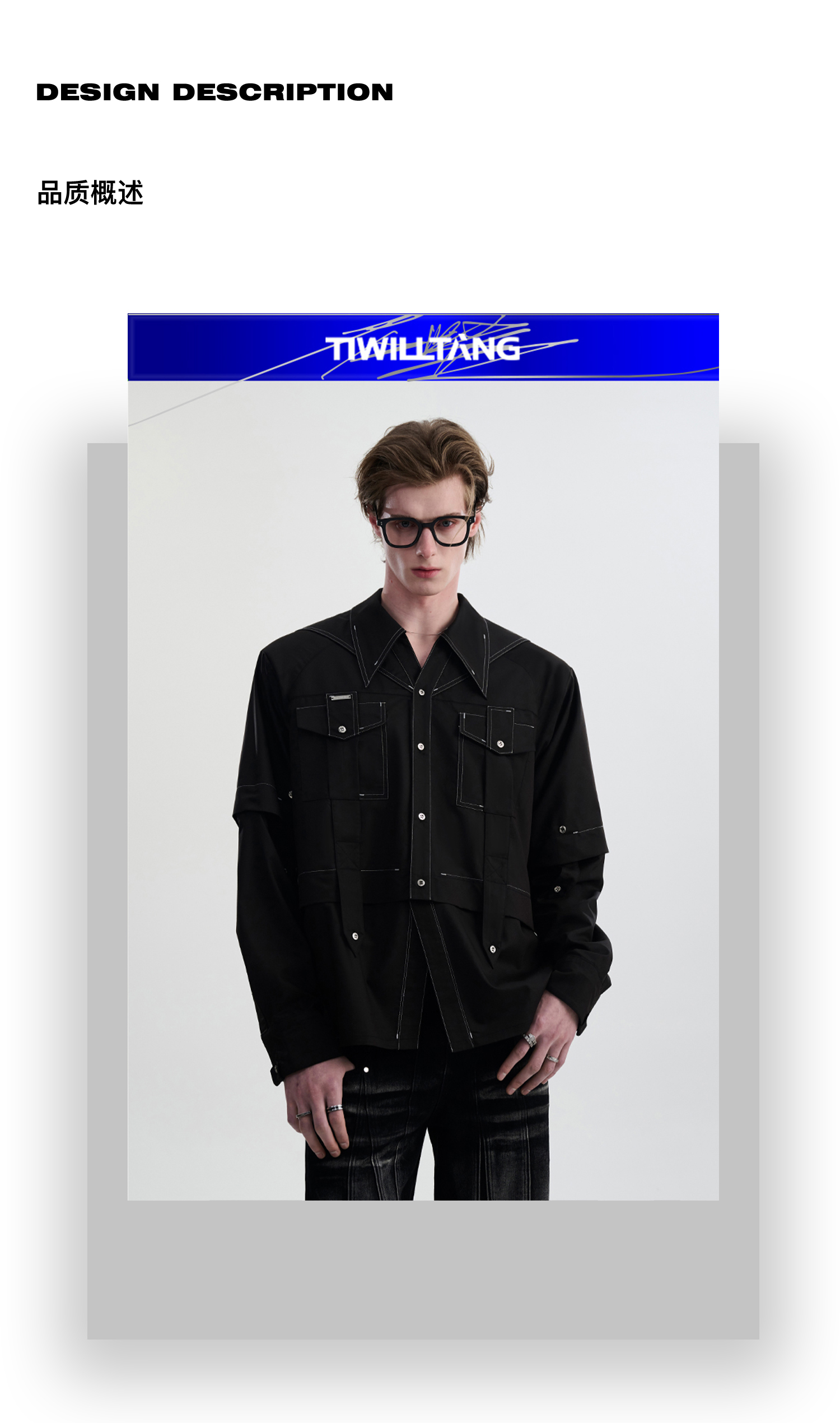 TIWILLTANG启世录“风烬镕玥”撞色线可拆卸衬衫男春重工长袖衬衣