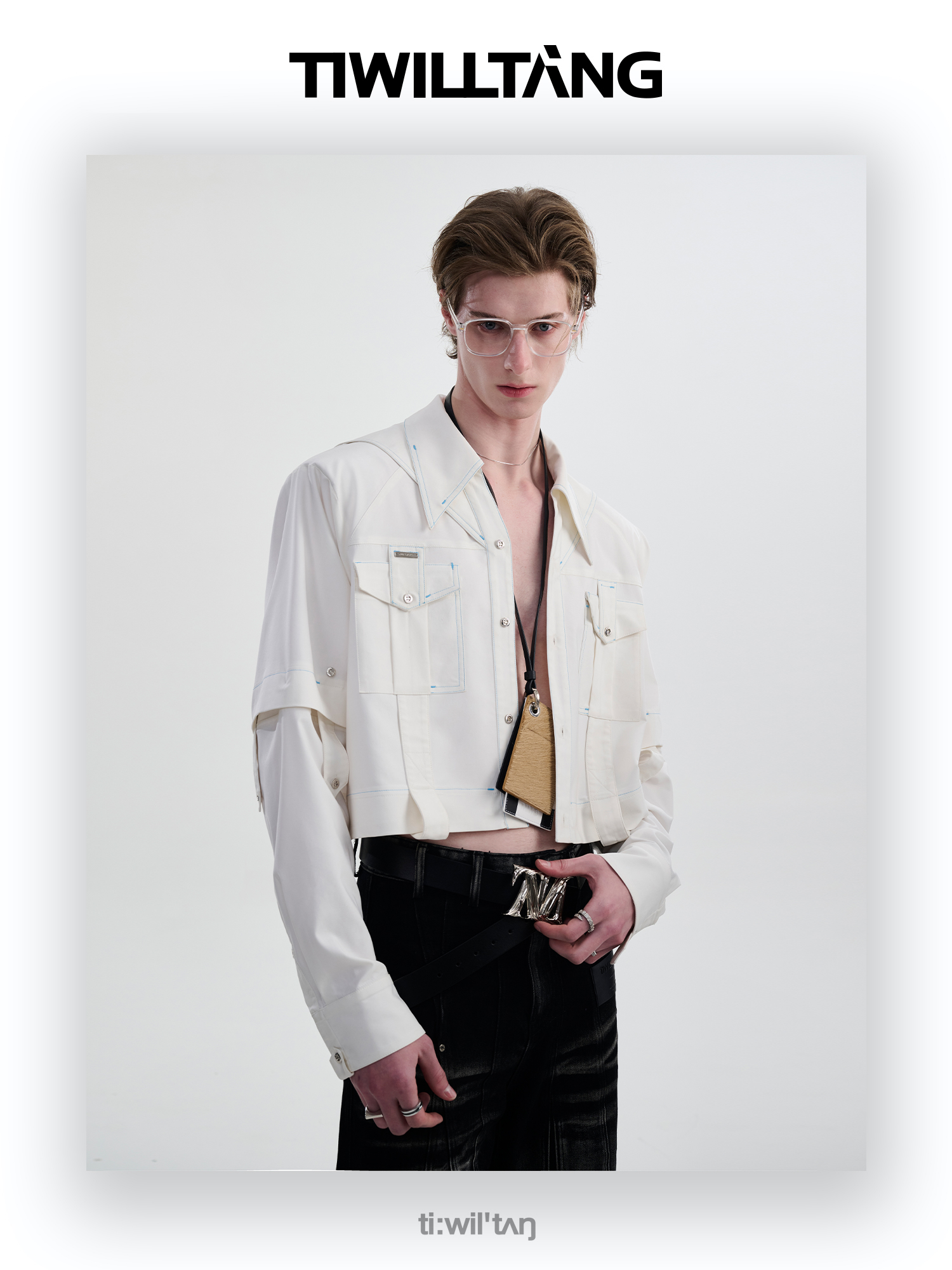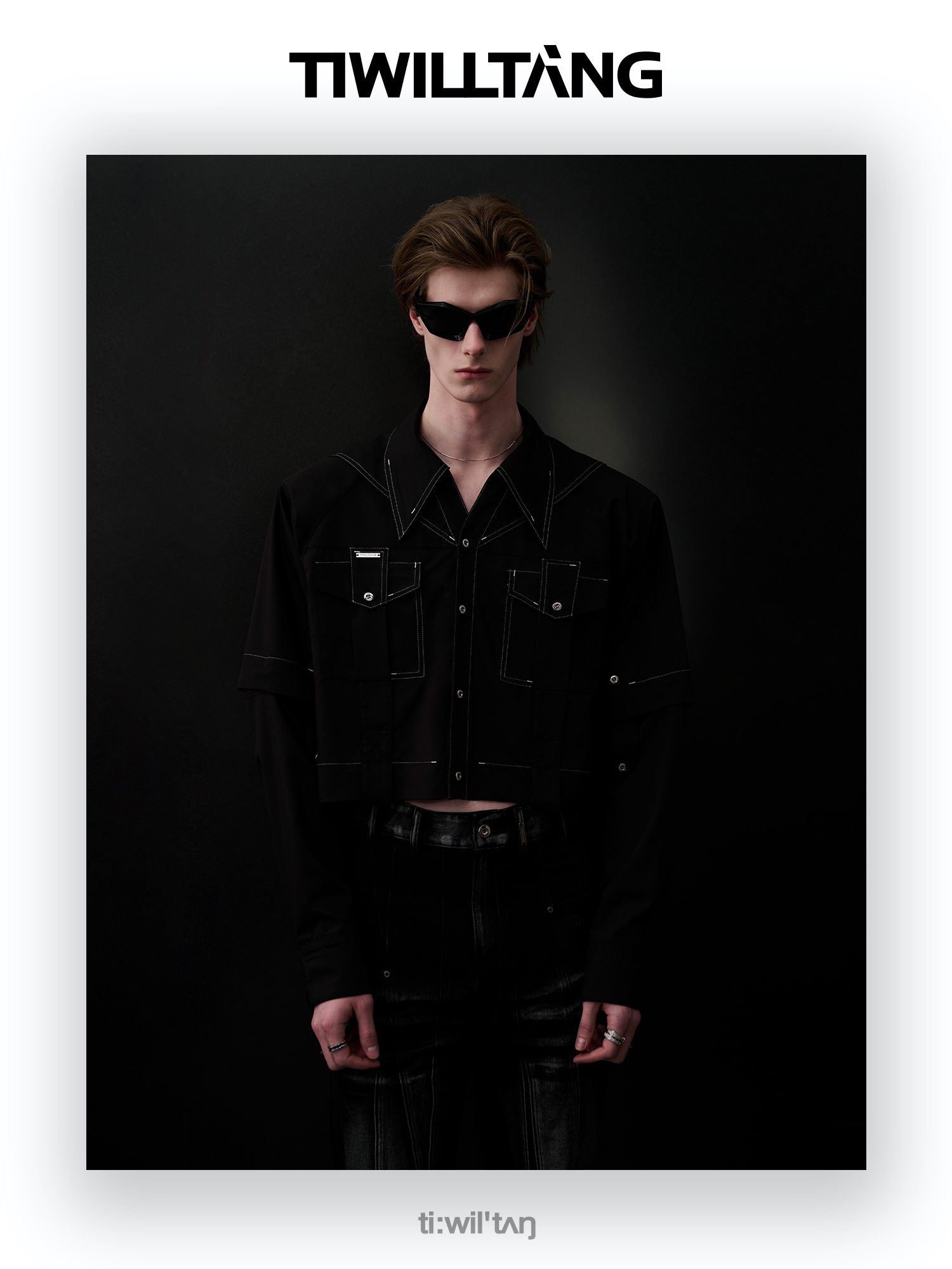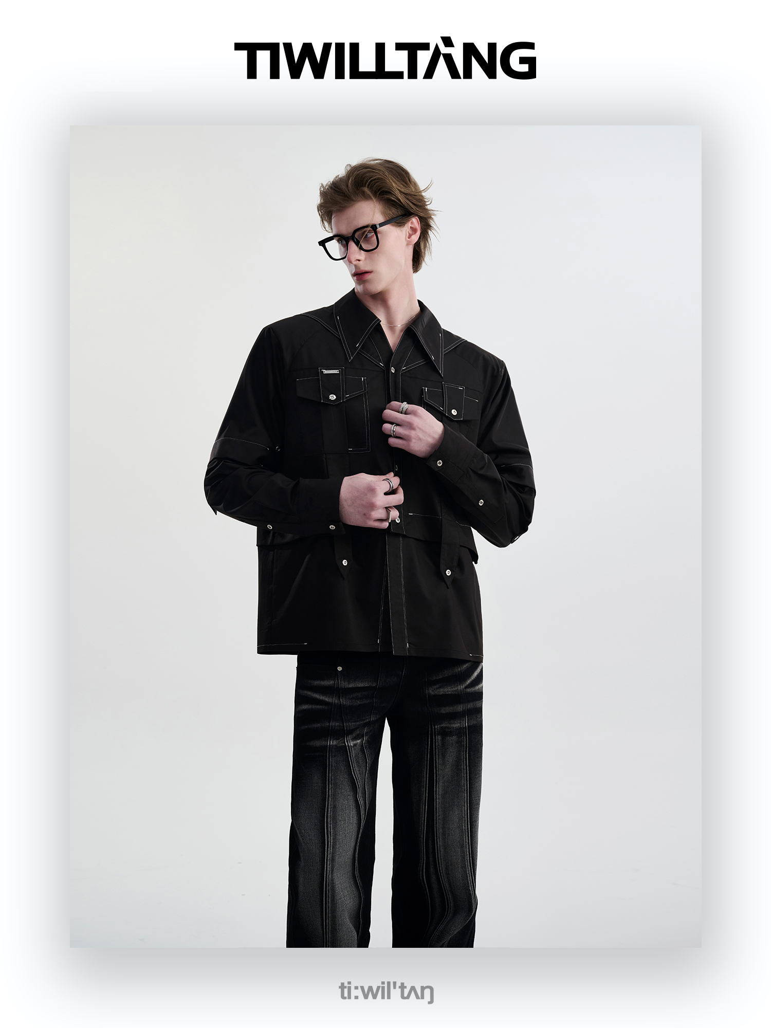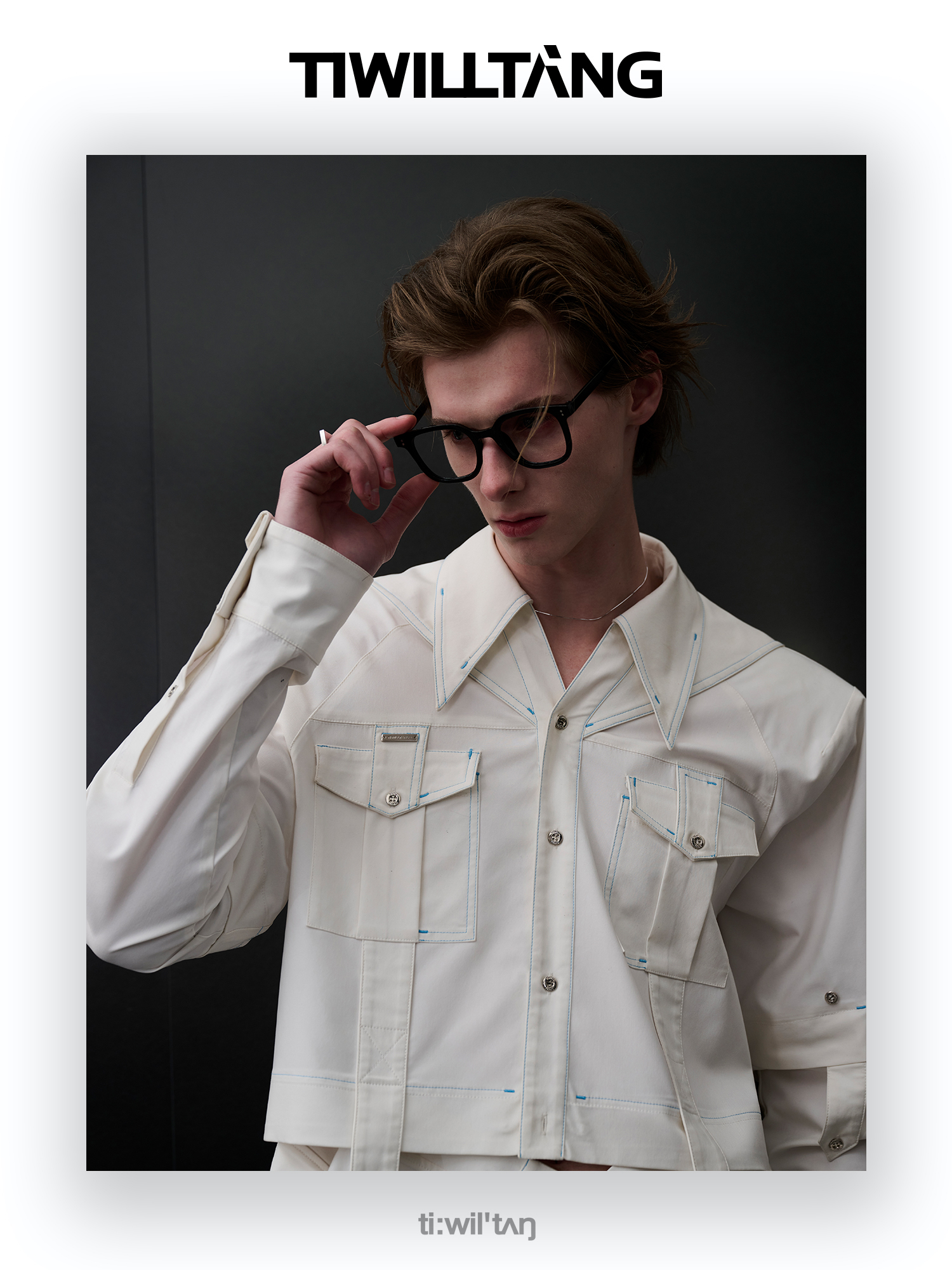 TIWILLTANG启世录“风烬镕玥”撞色线可拆卸衬衫男春重工长袖衬衣