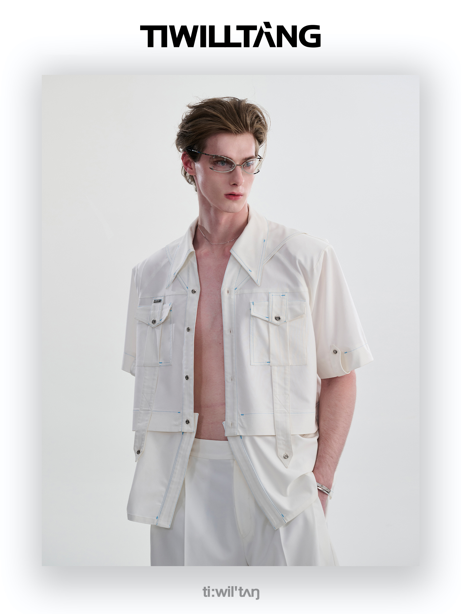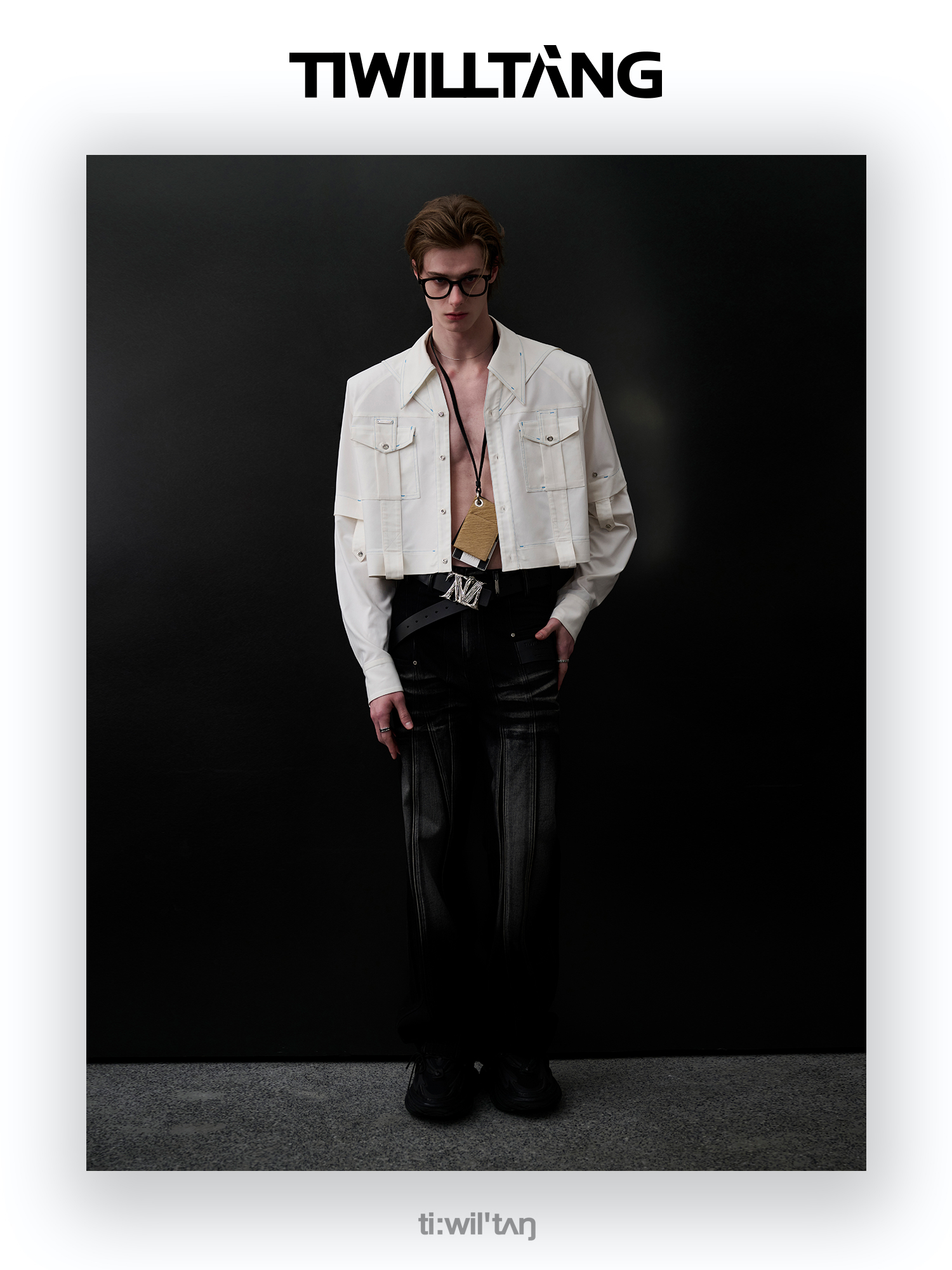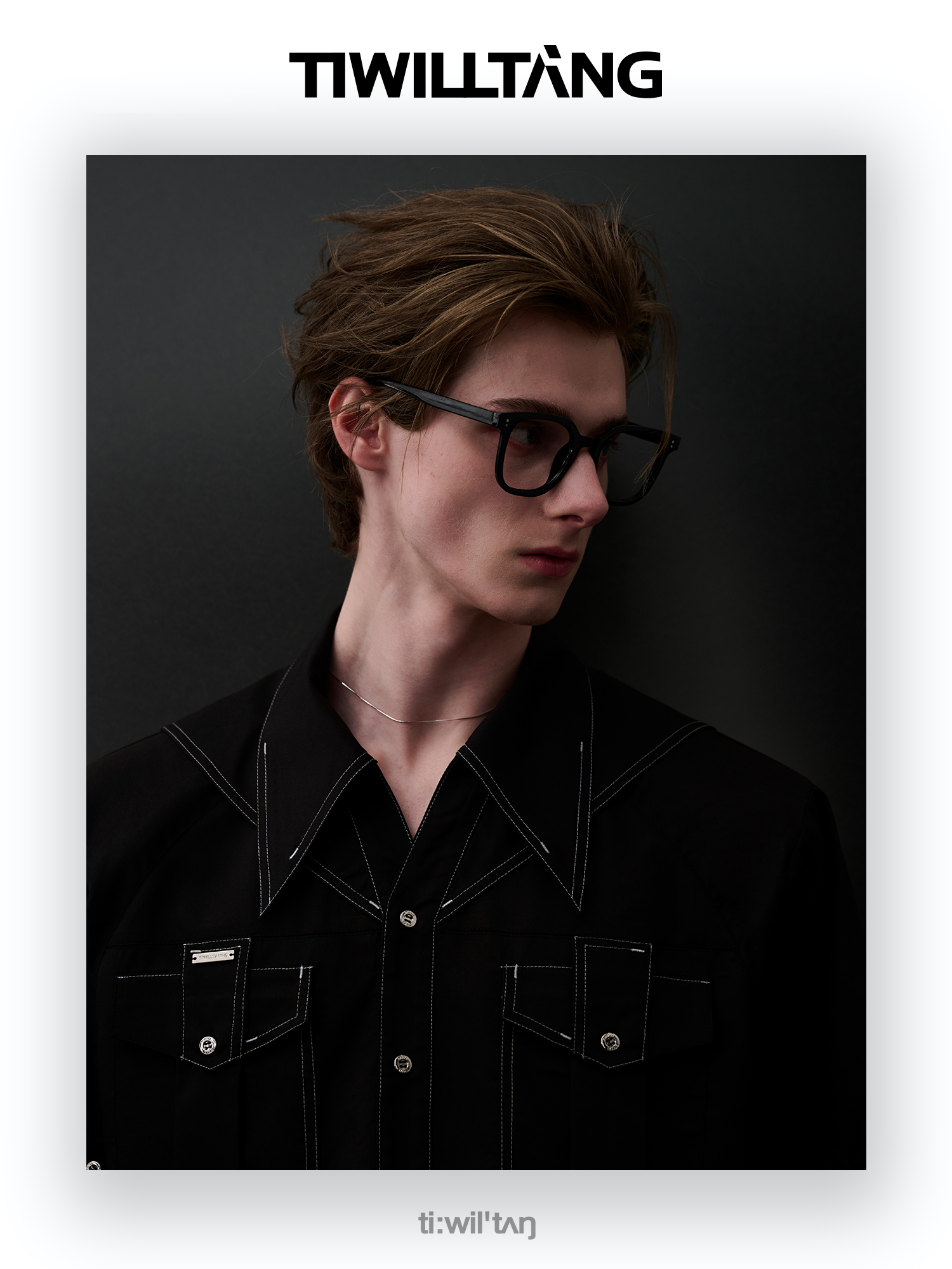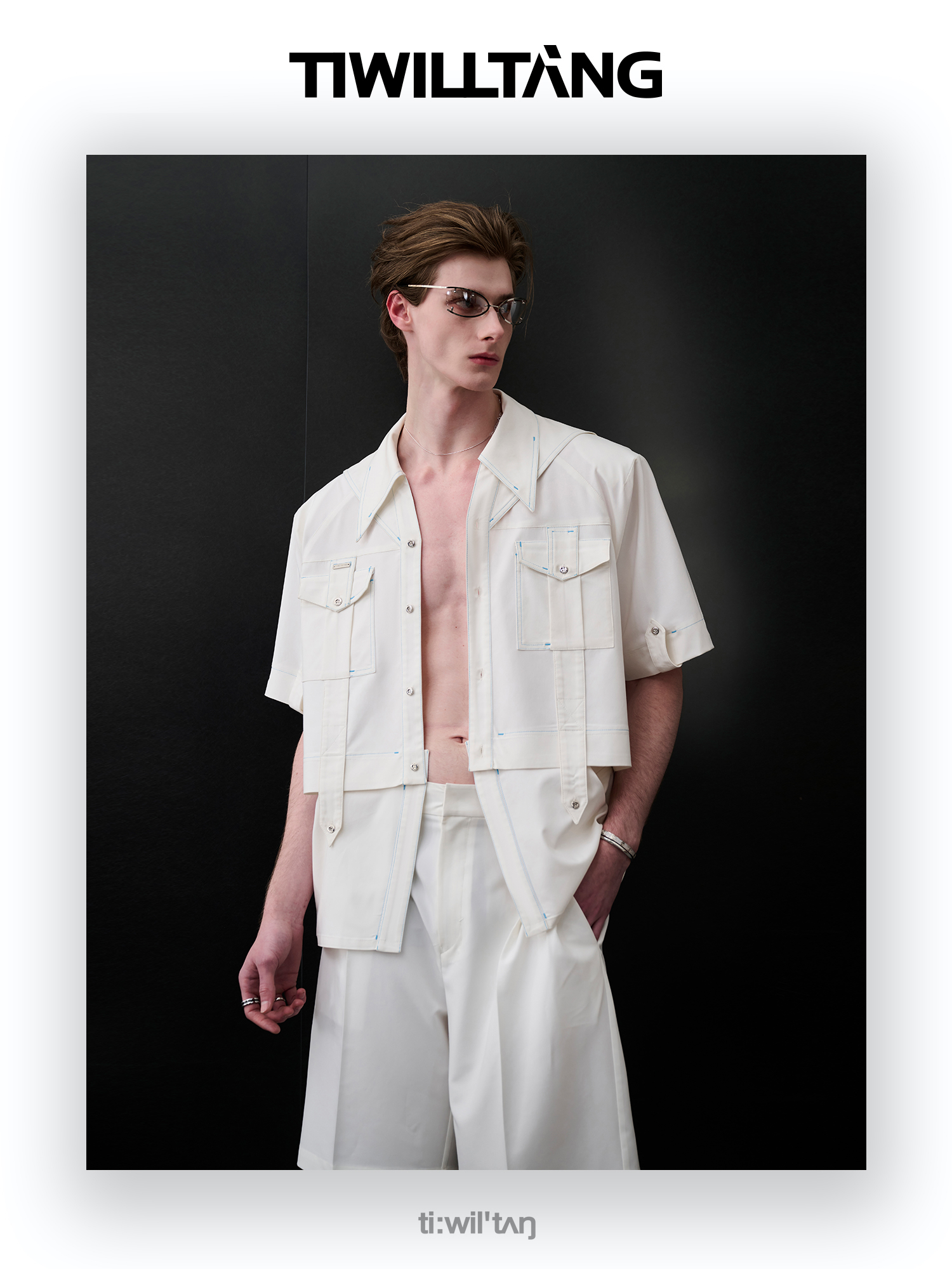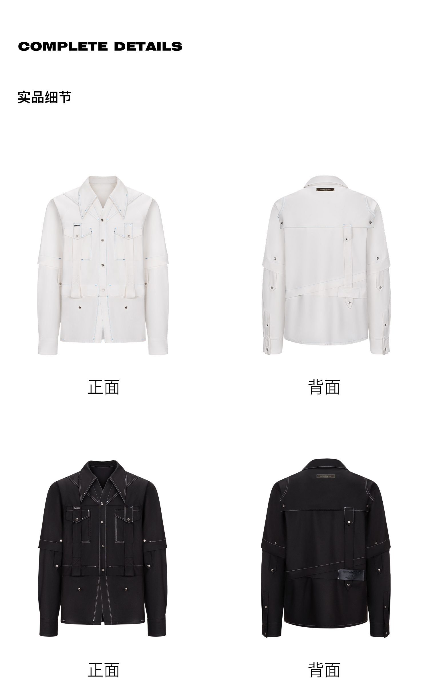 TIWILLTANG启世录“风烬镕玥”撞色线可拆卸衬衫男春重工长袖衬衣