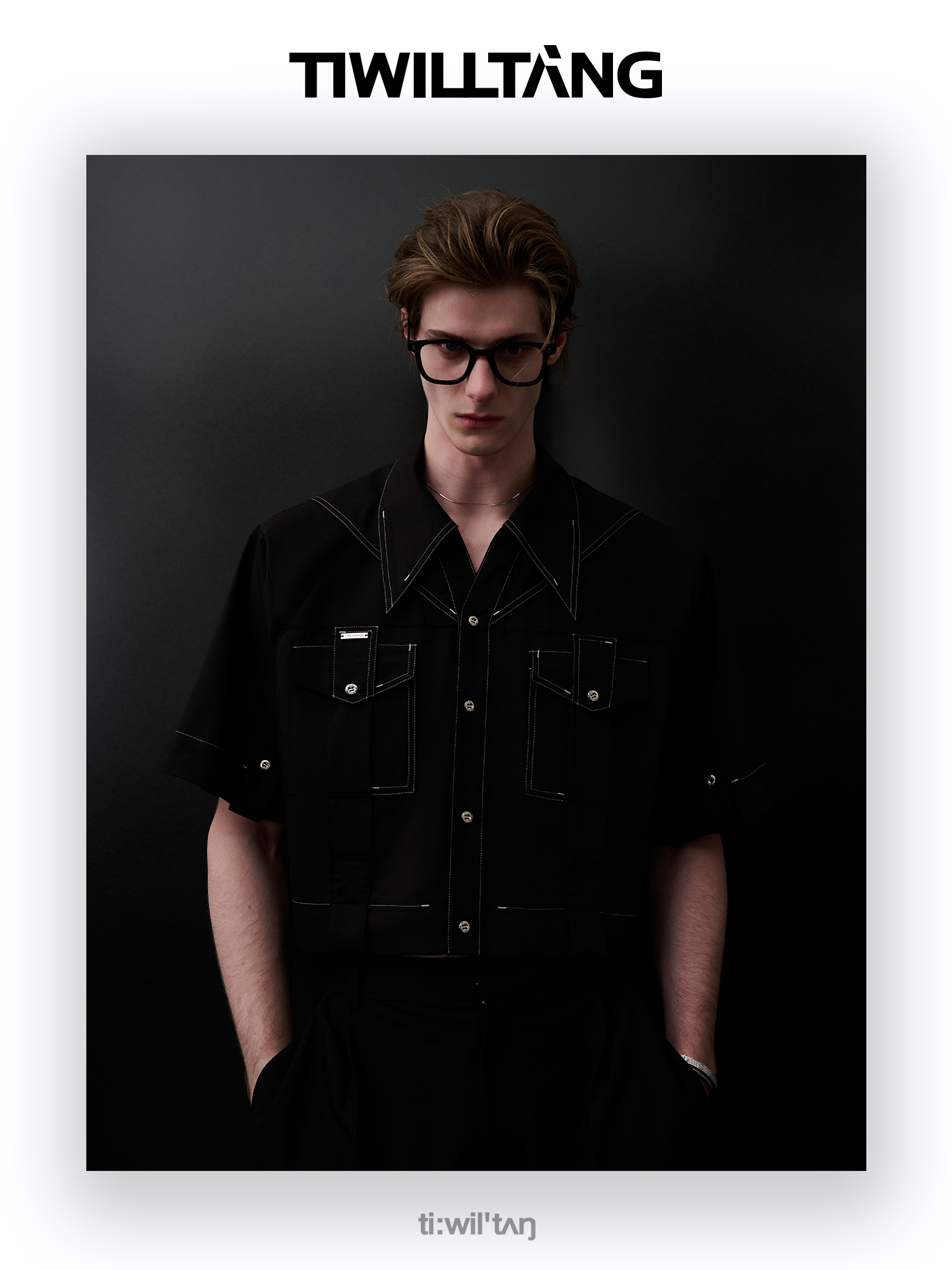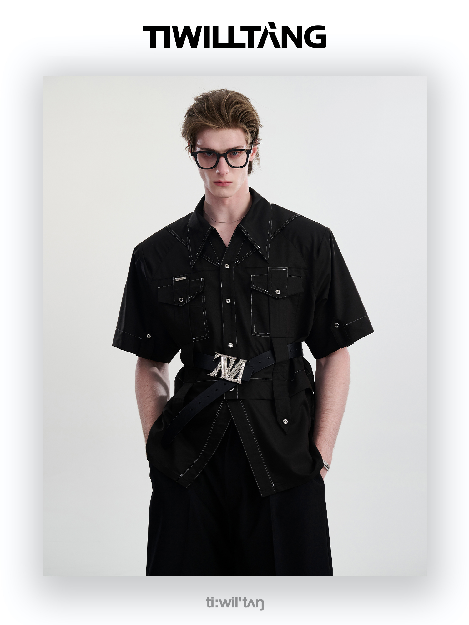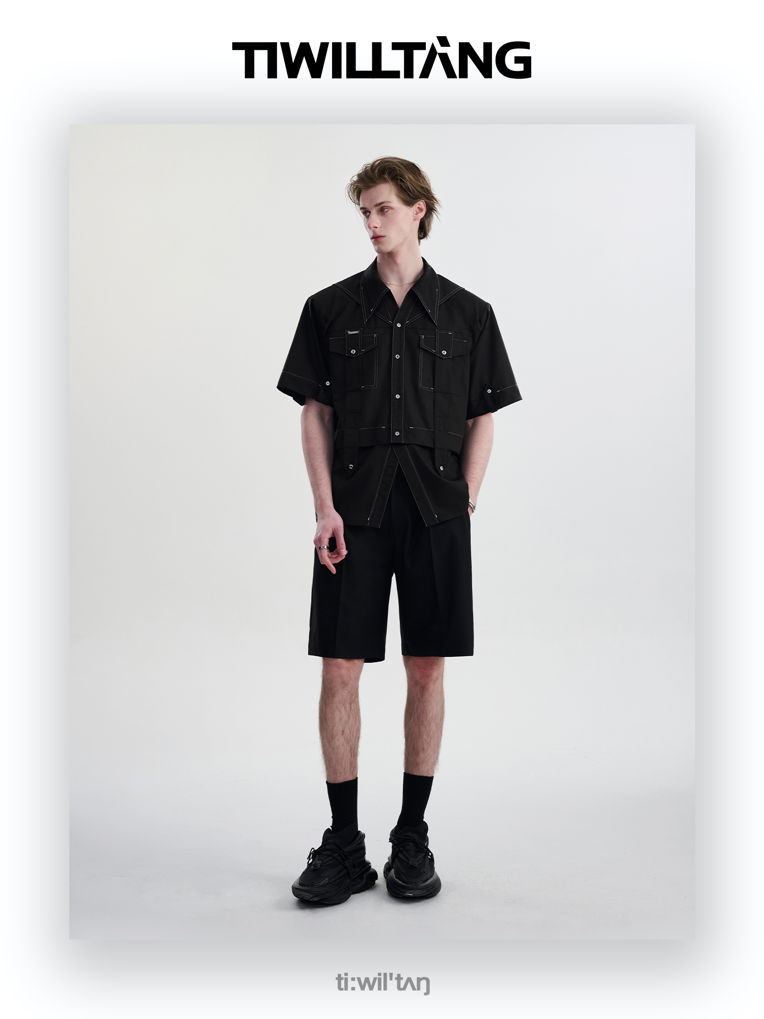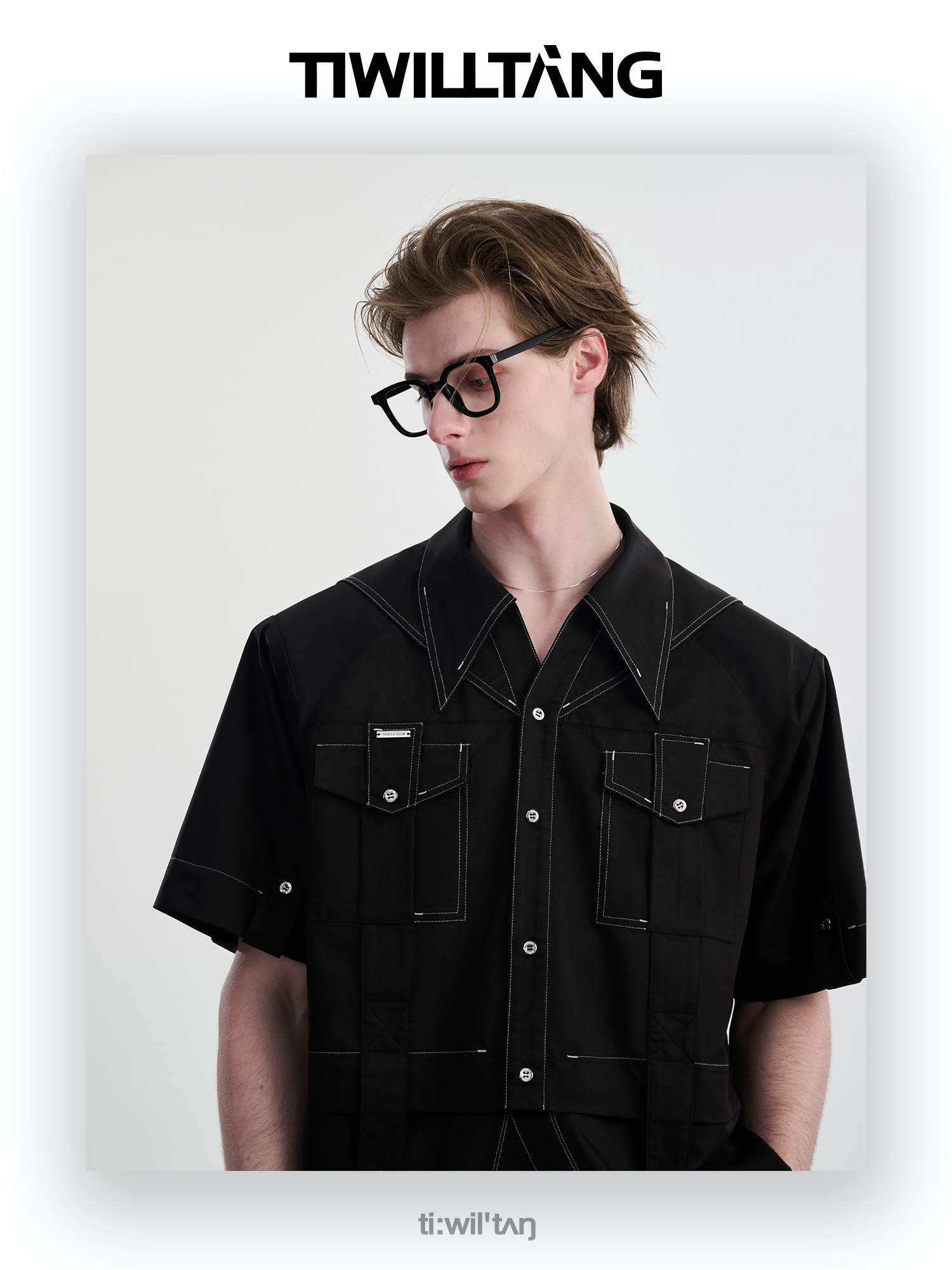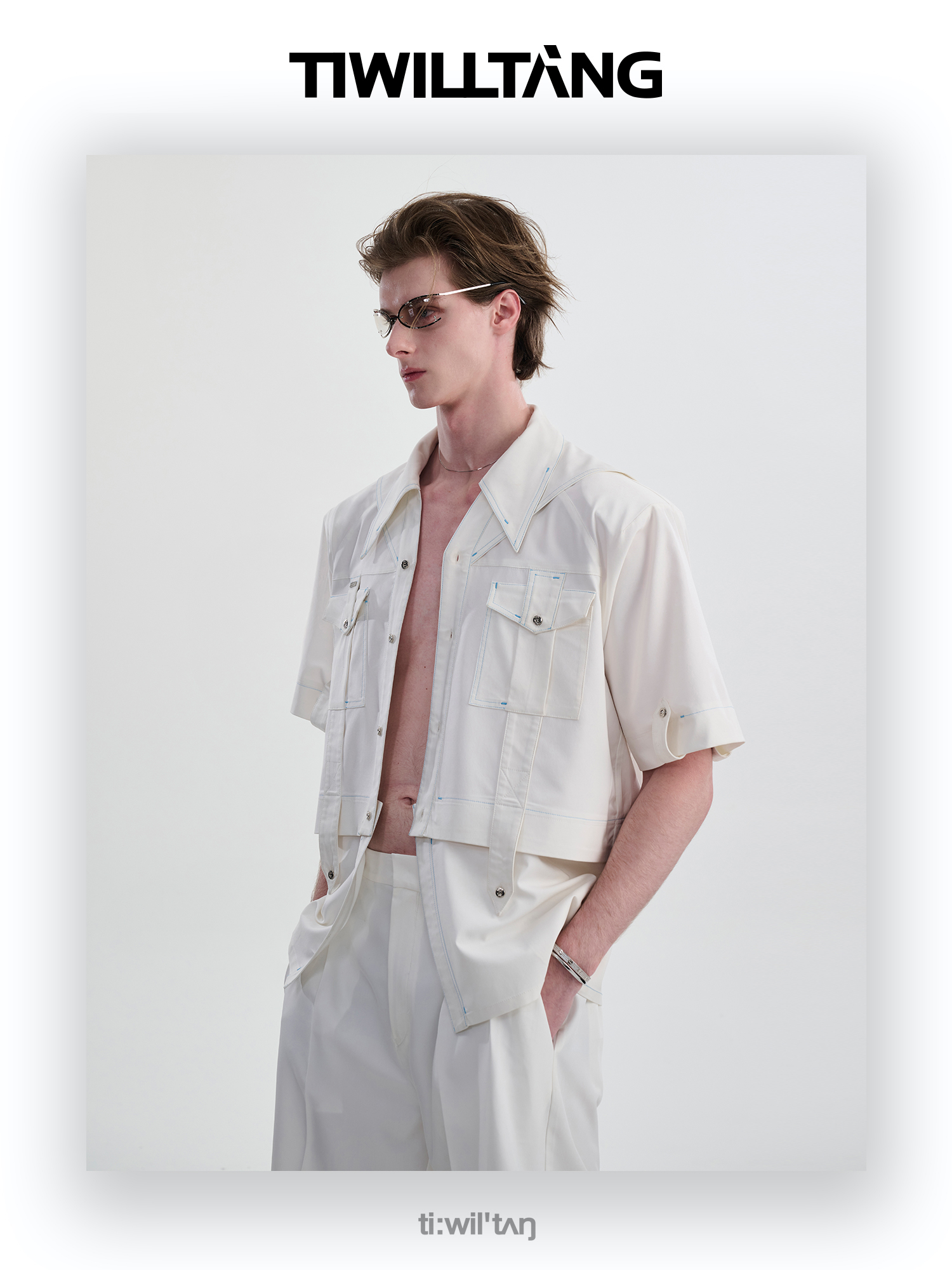 TIWILLTANG启世录“风烬镕玥”撞色线可拆卸衬衫男春重工长袖衬衣