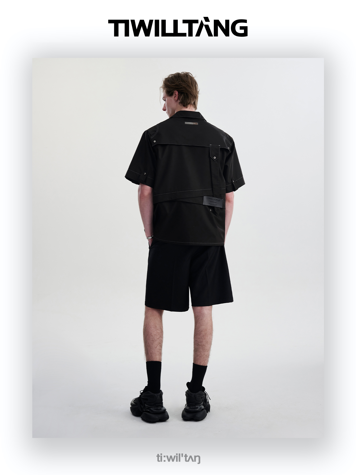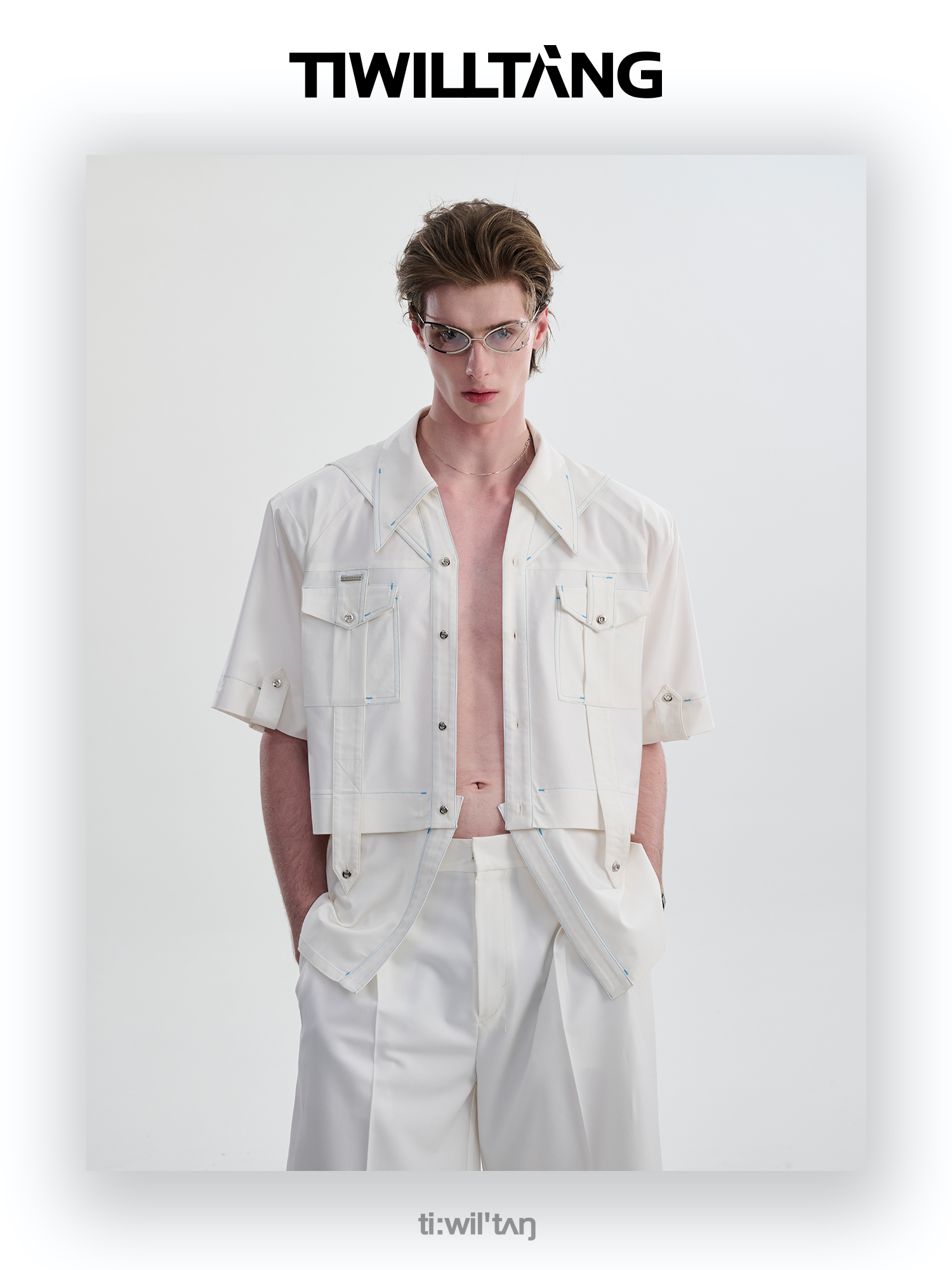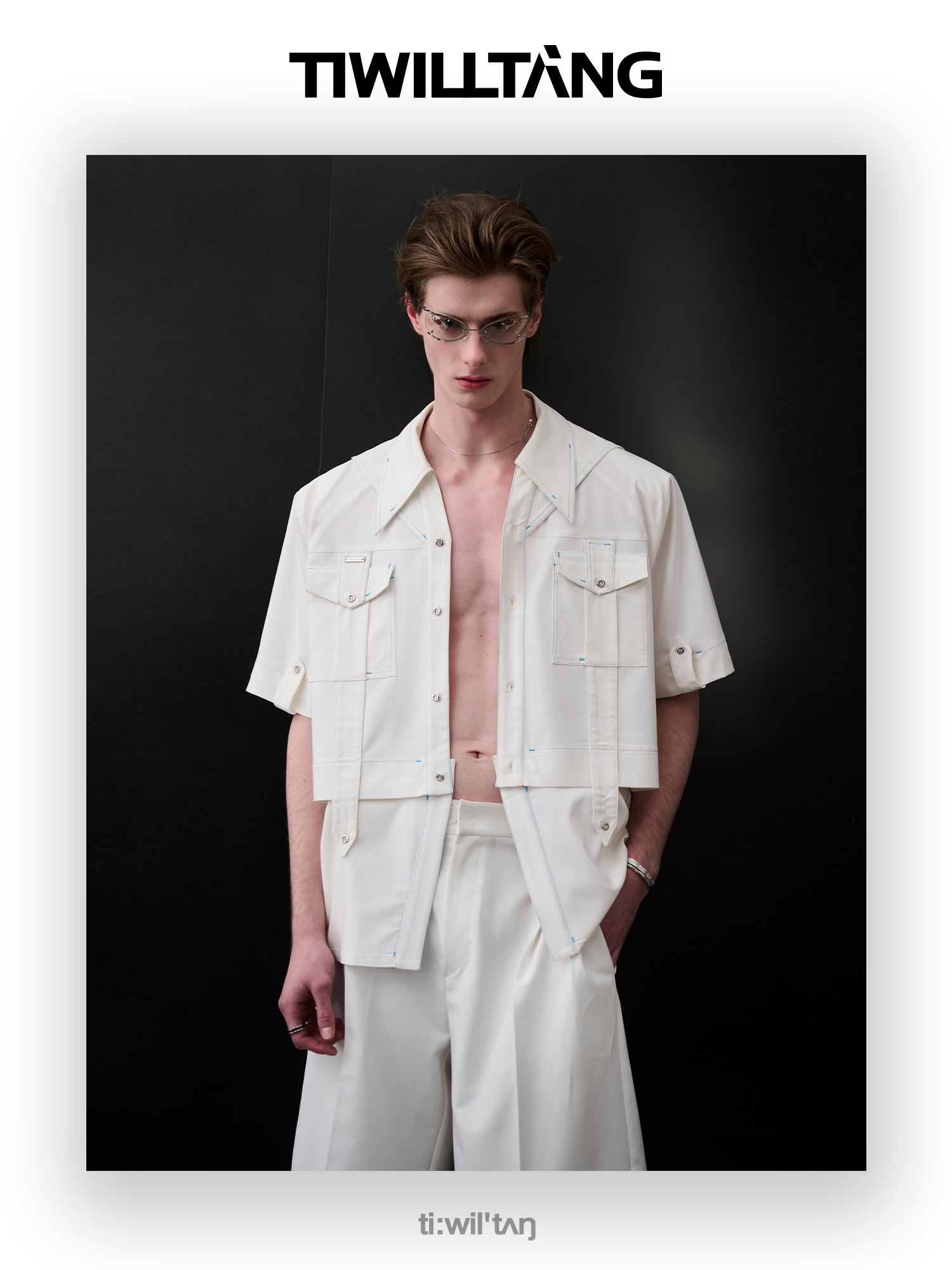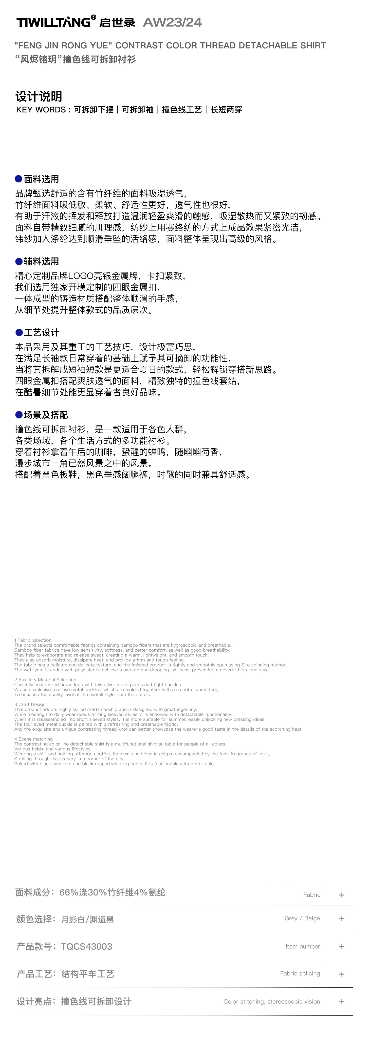 TIWILLTANG启世录“风烬镕玥”撞色线可拆卸衬衫男春重工长袖衬衣