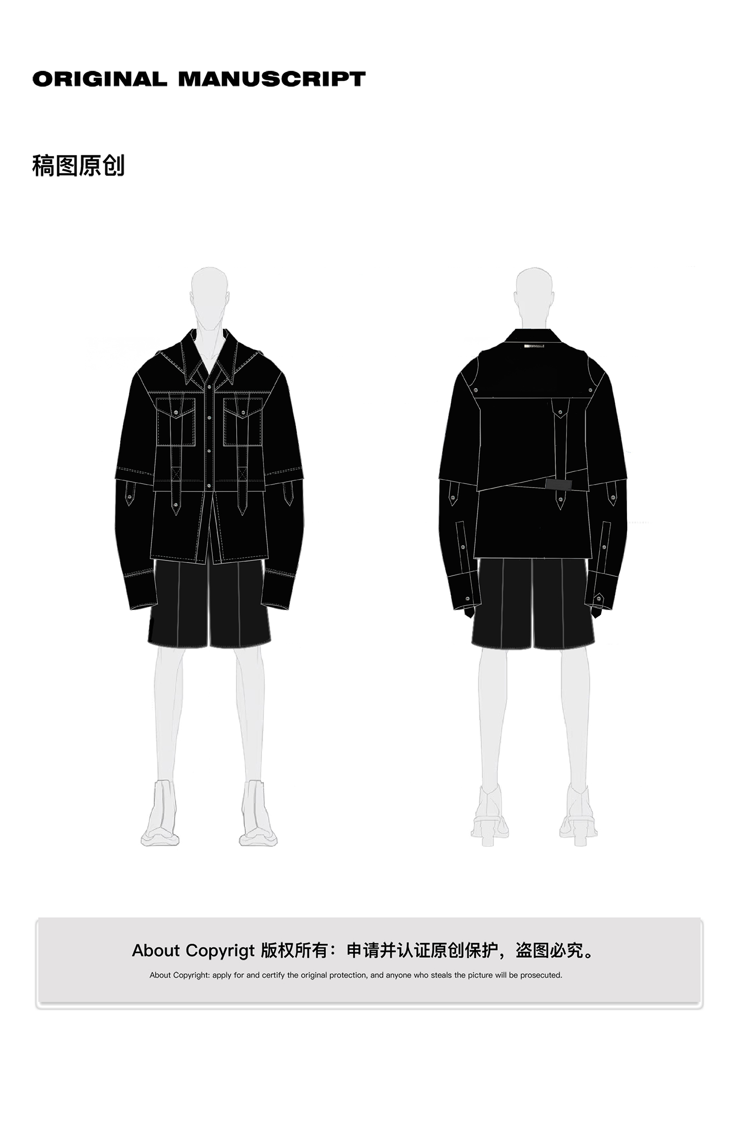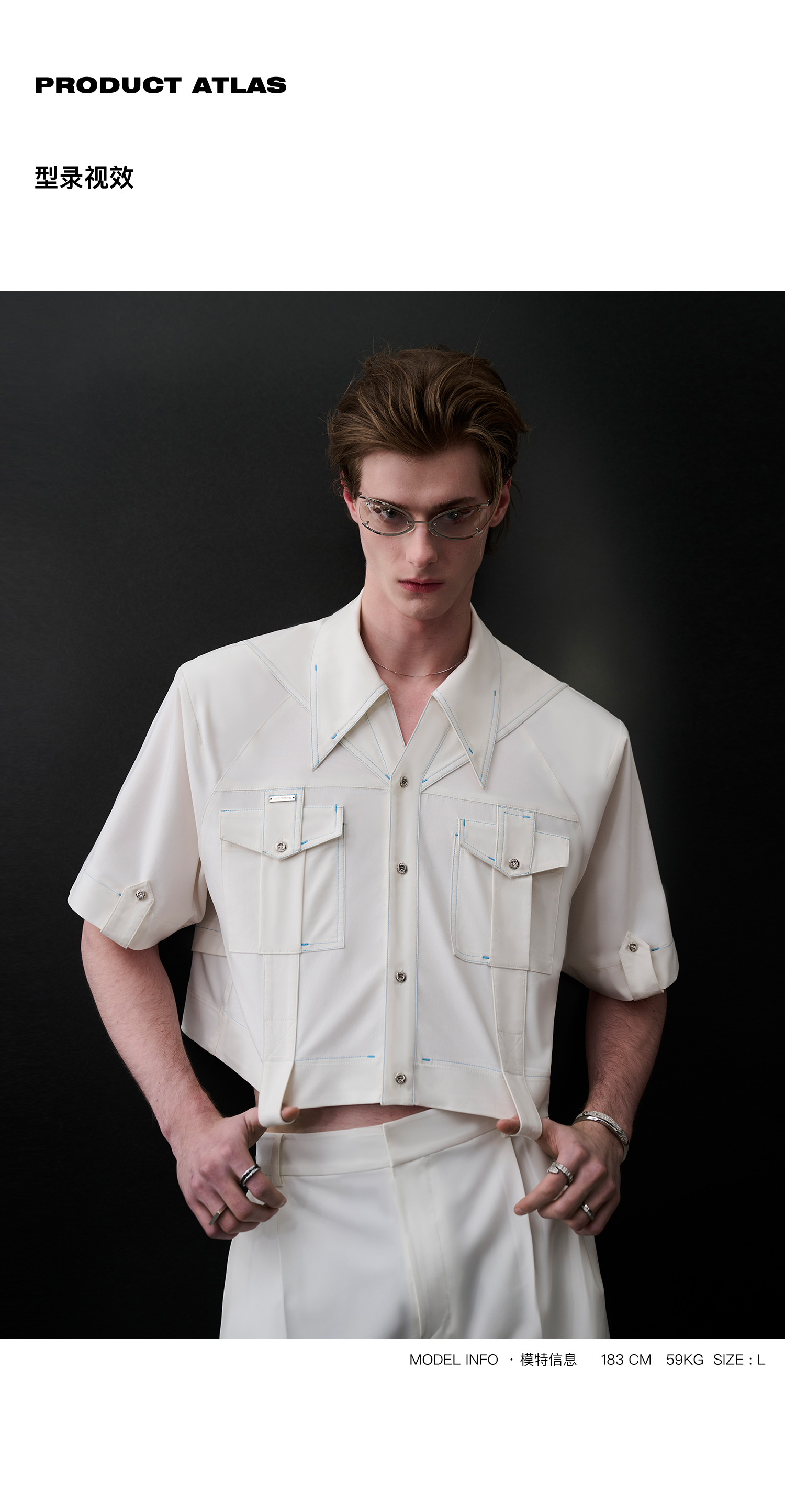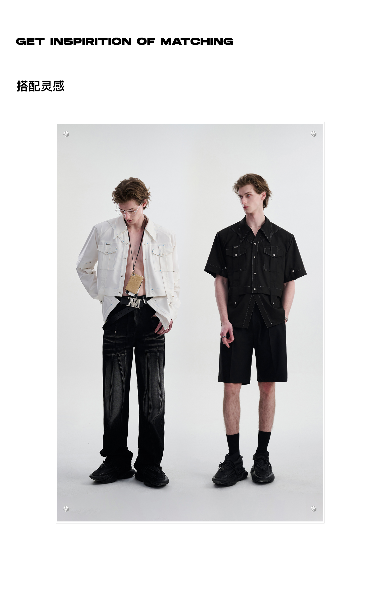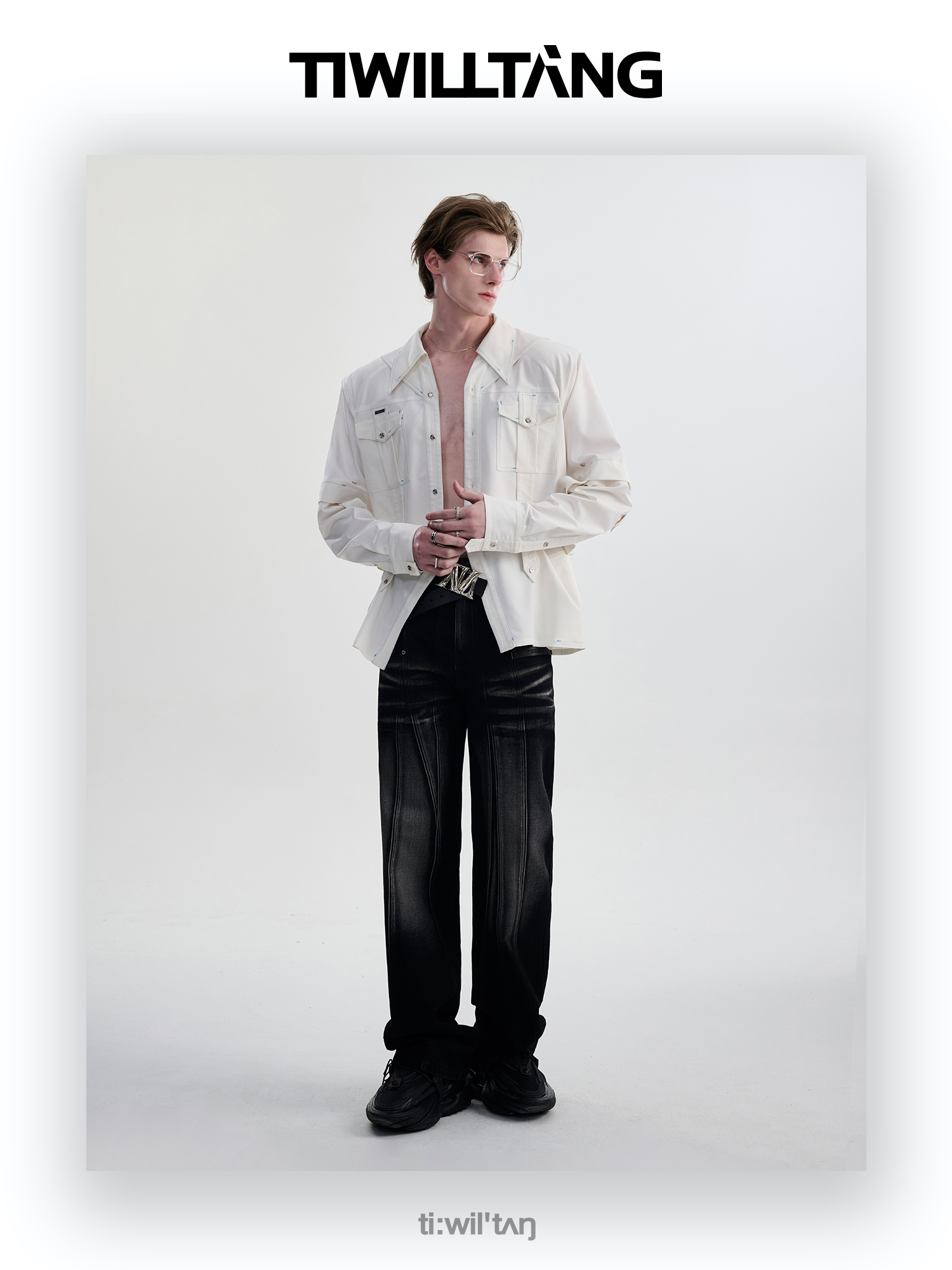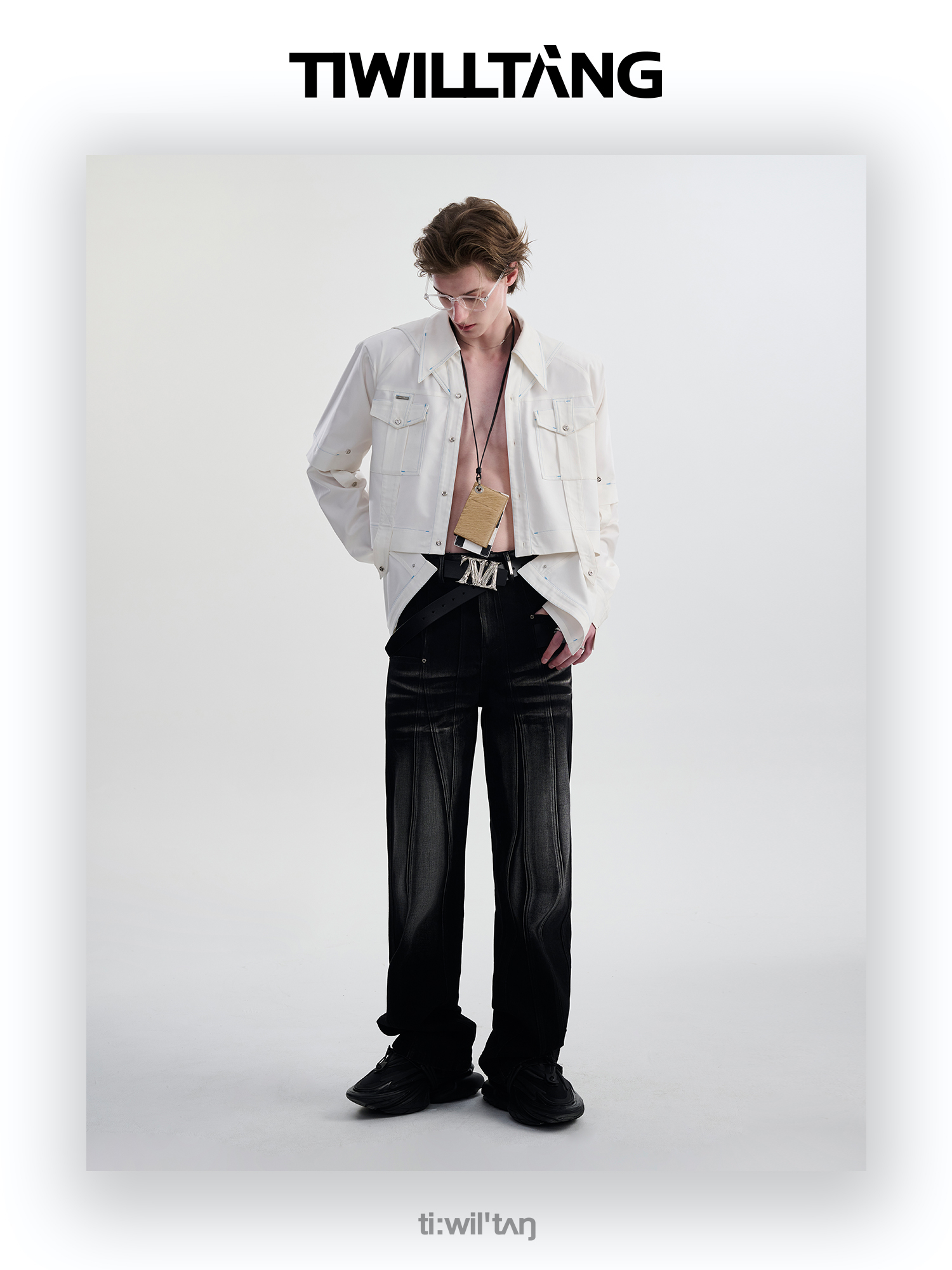 TIWILLTANG启世录“风烬镕玥”撞色线可拆卸衬衫男春重工长袖衬衣