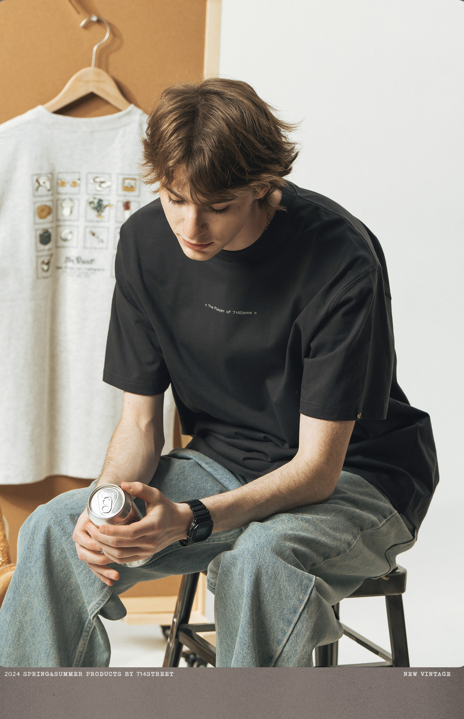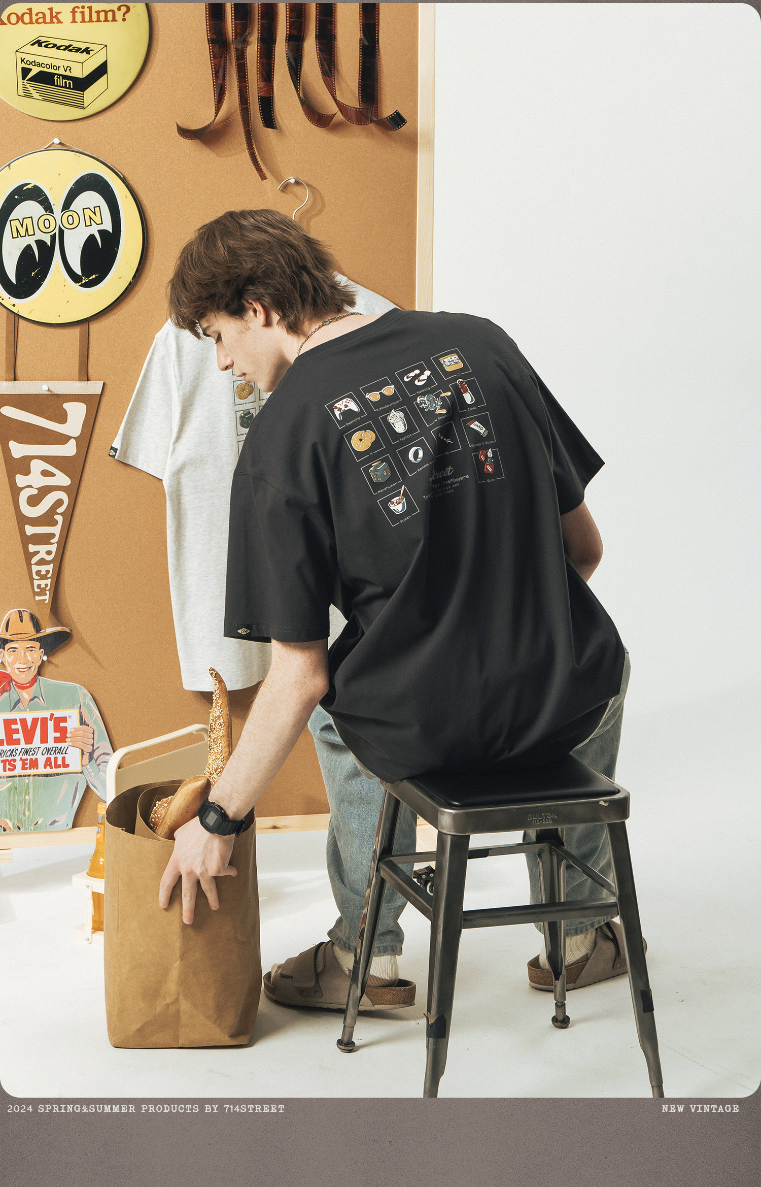 714street美式复古宽松纯棉印花短袖男款2026夏季潮牌圆领情侣T恤