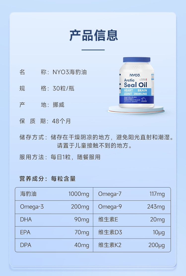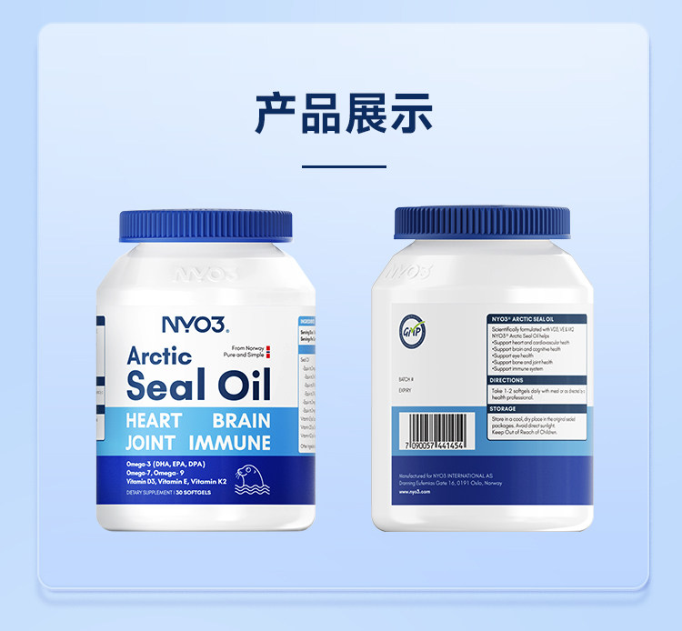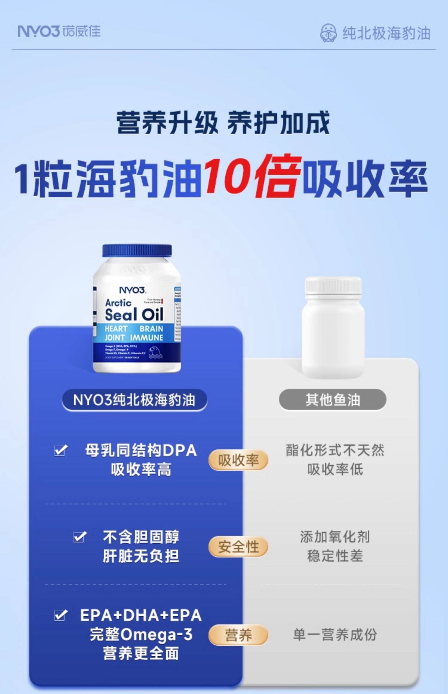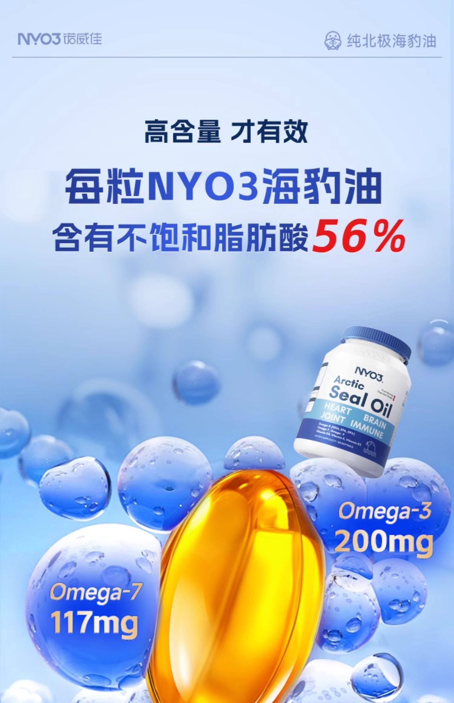 NYO3挪威进口海豹油胶囊DPA心血管高浓缩北极平衡油鱼油
