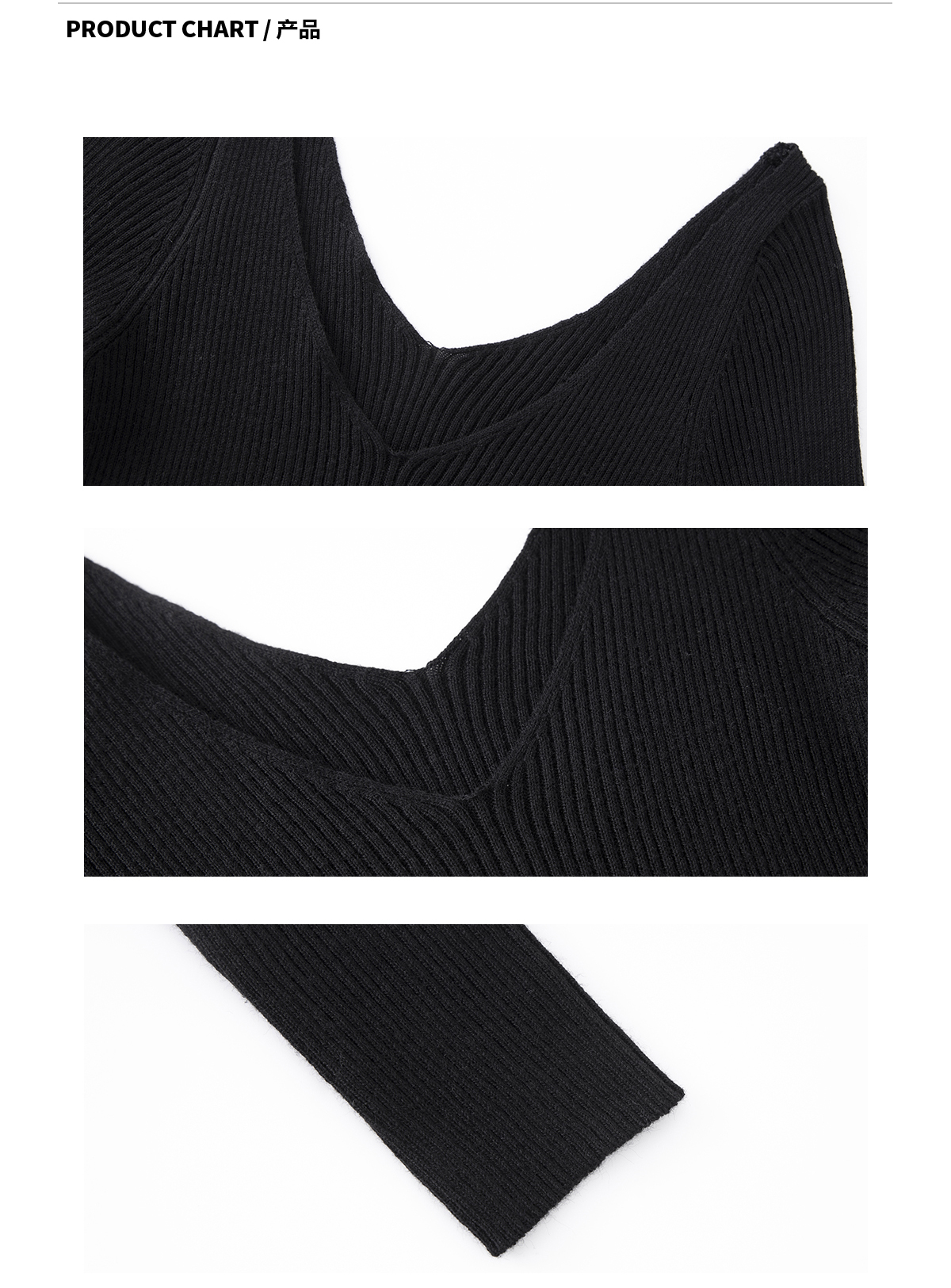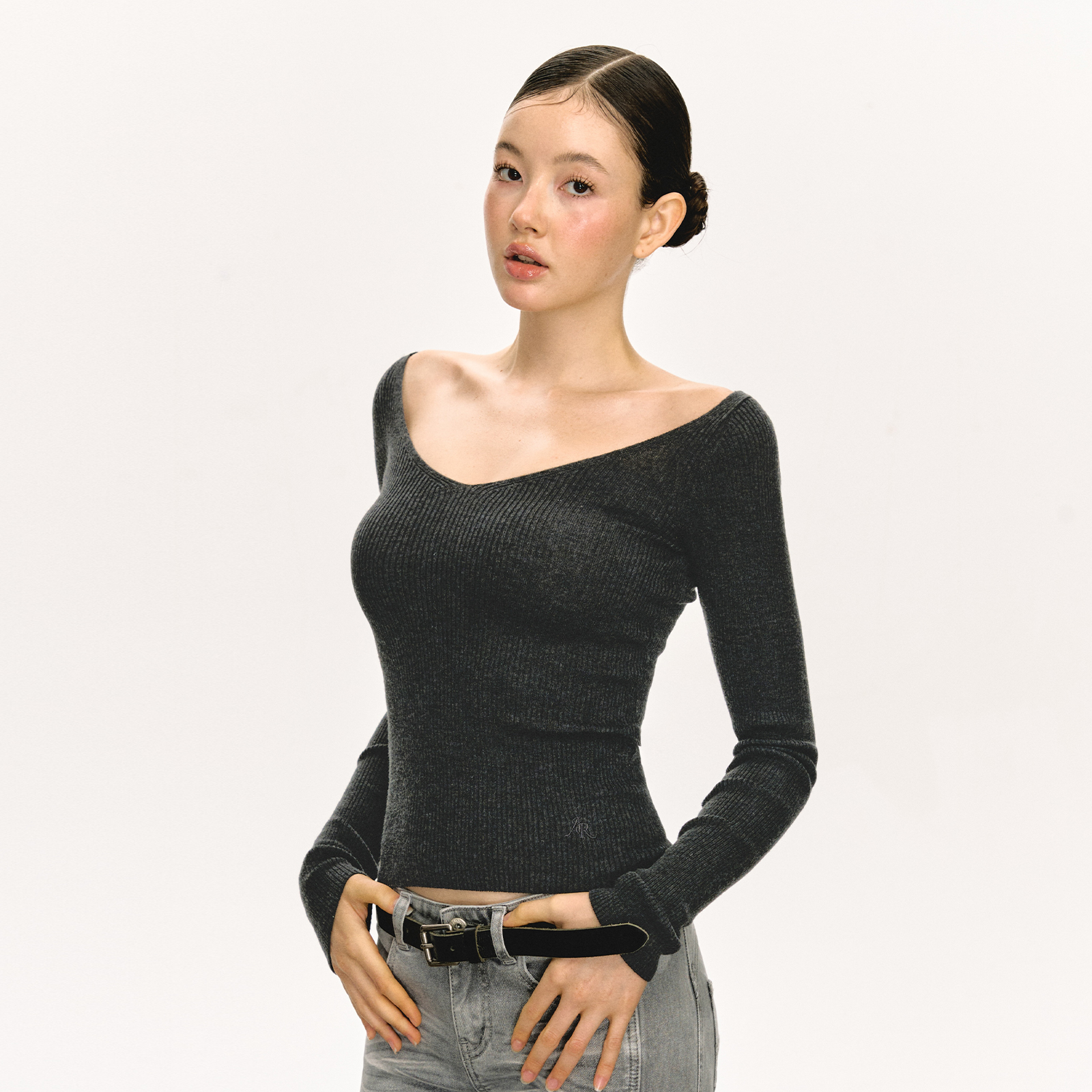 Ariseism 美式复古设计感露肩长袖针织衫女春季新款修身打底上衣