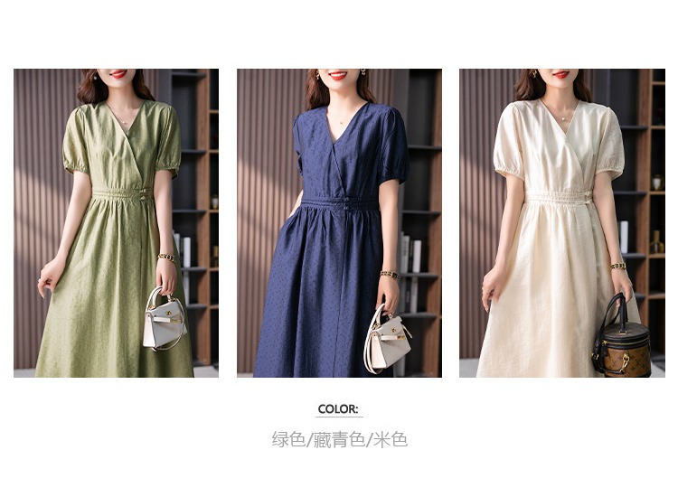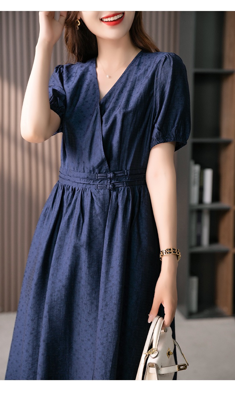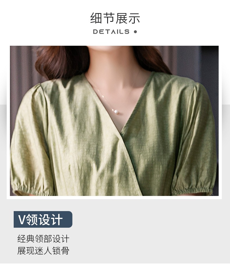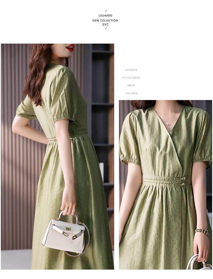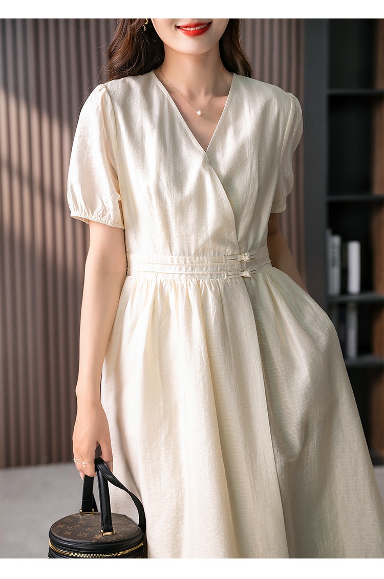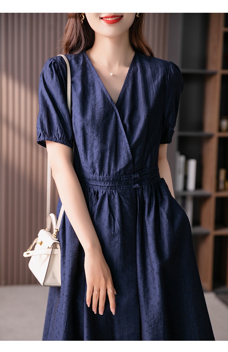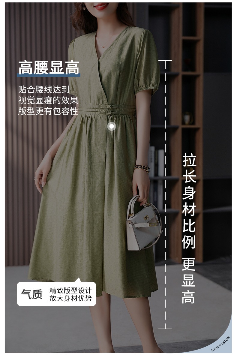 YX【定制15天】FSW天丝短袖连衣裙泡泡袖复古盘扣收腰A字裙