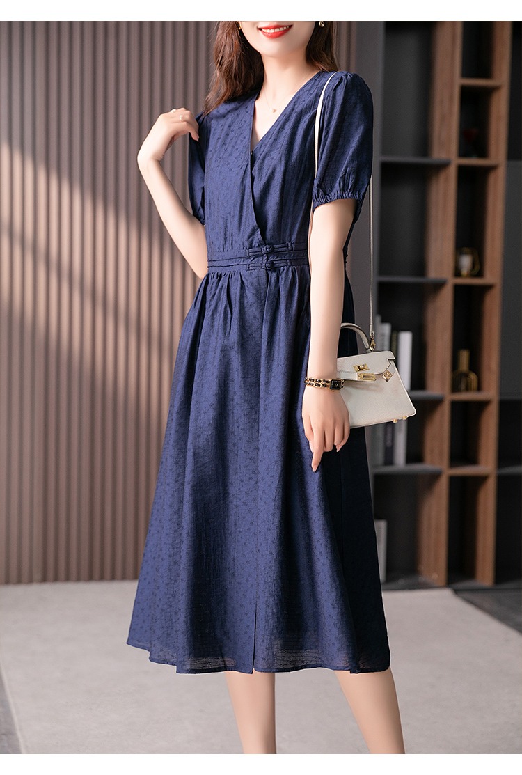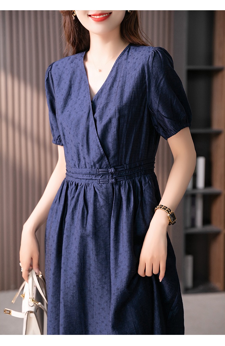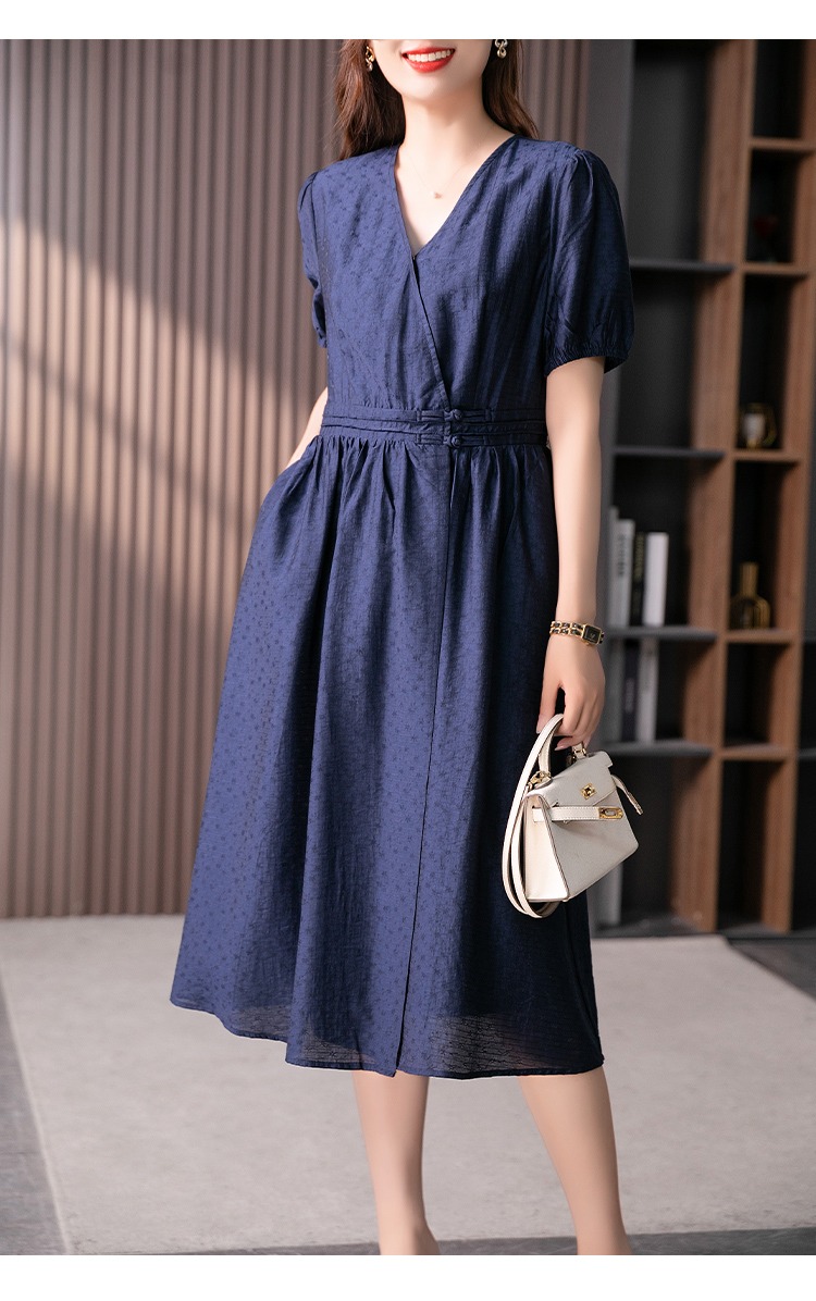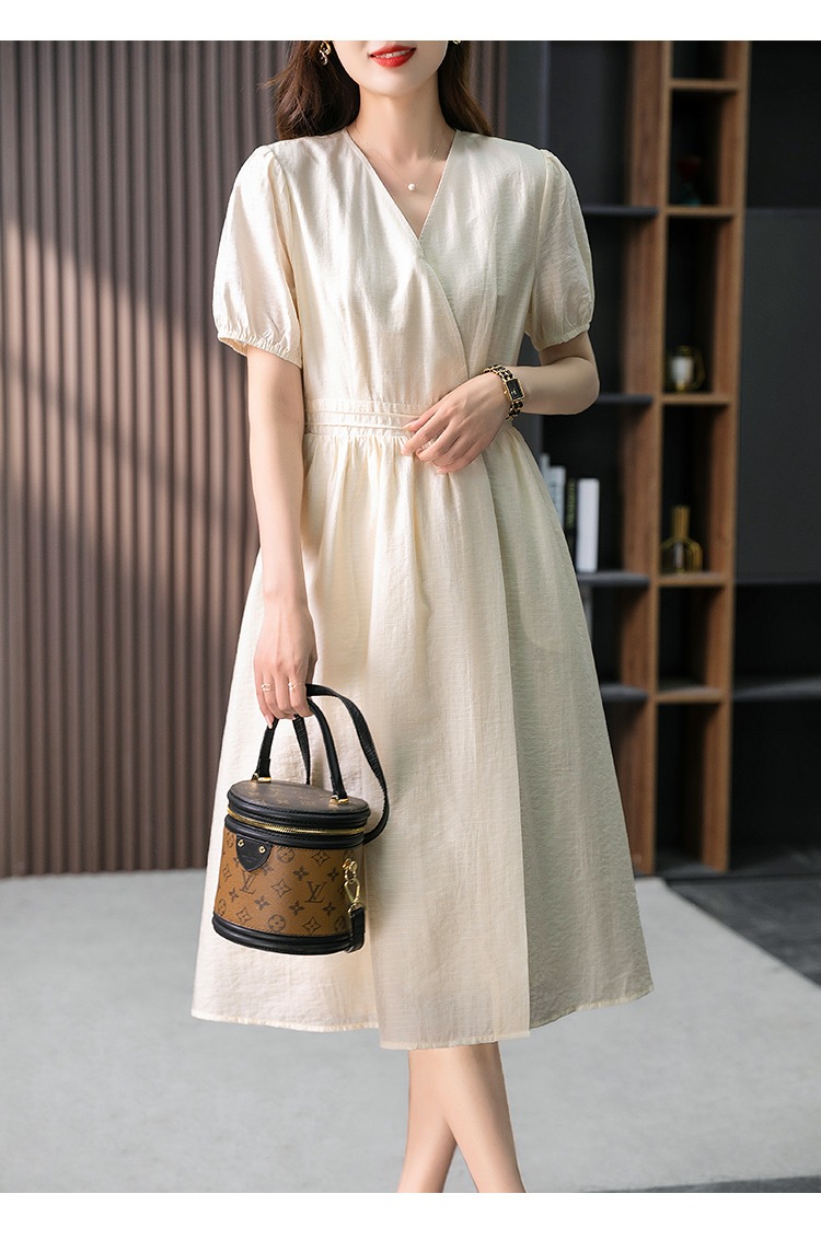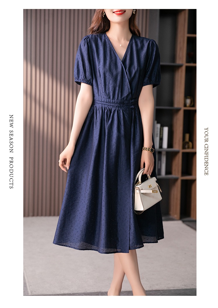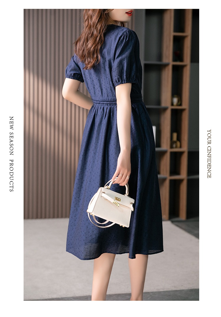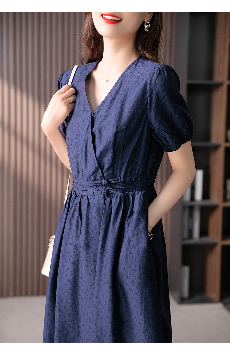 YX【定制15天】FSW天丝短袖连衣裙泡泡袖复古盘扣收腰A字裙