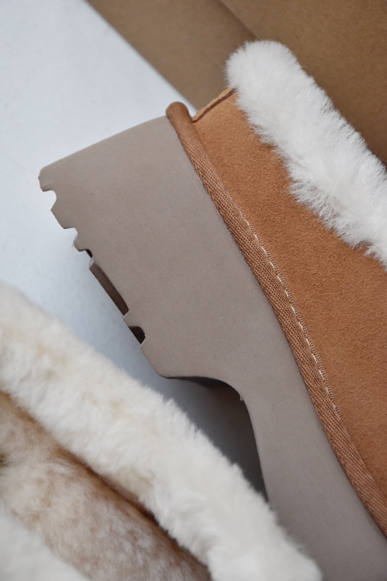 甄选优质翻毛皮鞋面,不仅呈现典雅的质感,同时柔软贴合您的双足,提升穿着体验。内里采用羊皮毛一体设计,赋予您如蓬松云朵般的柔软体验,即使长时间穿着也能保持舒适与温暖!