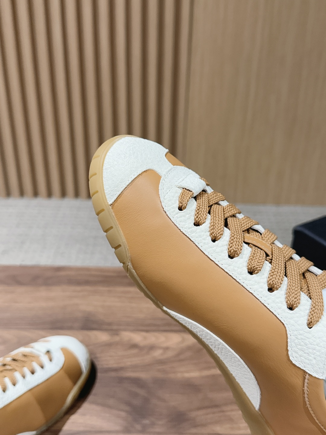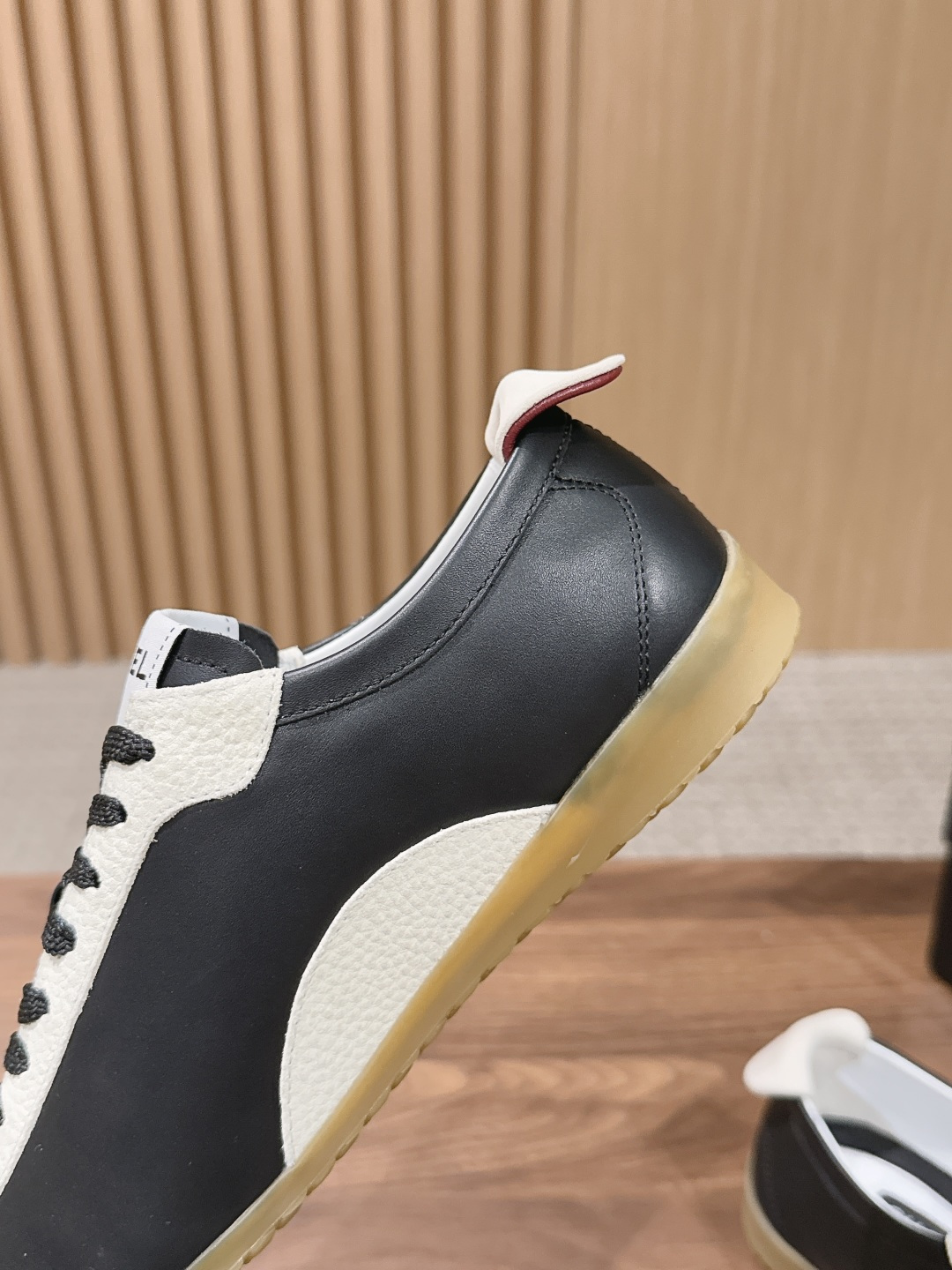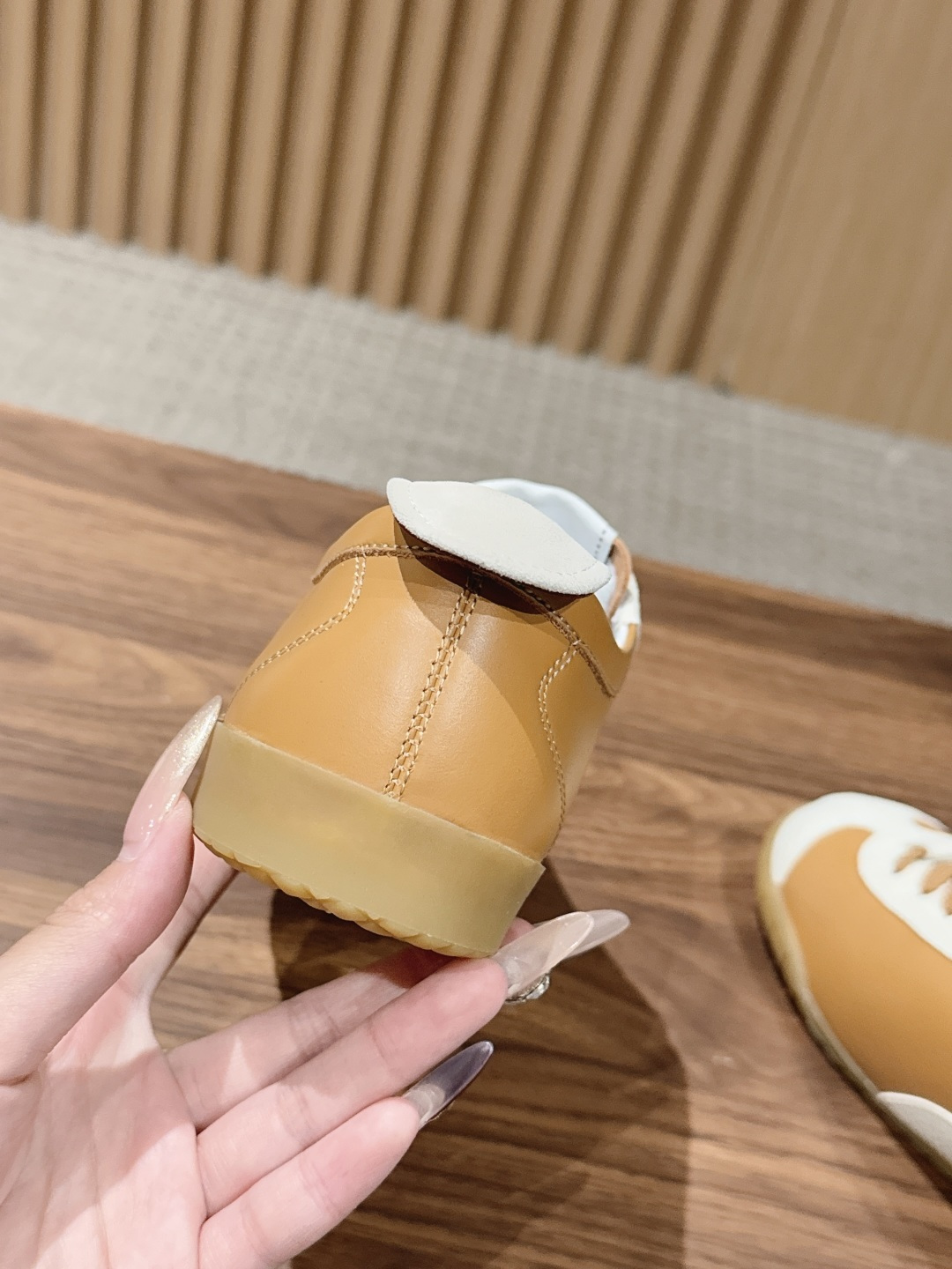 鞋身侧面的刺绣,是低调却极具辨识度的品牌符号,细节处彰显奢华质感。采用天然生胶大底,防滑耐磨且自带复古哑光质感,内置缓震层兼顾了造型感与行走舒适度。
