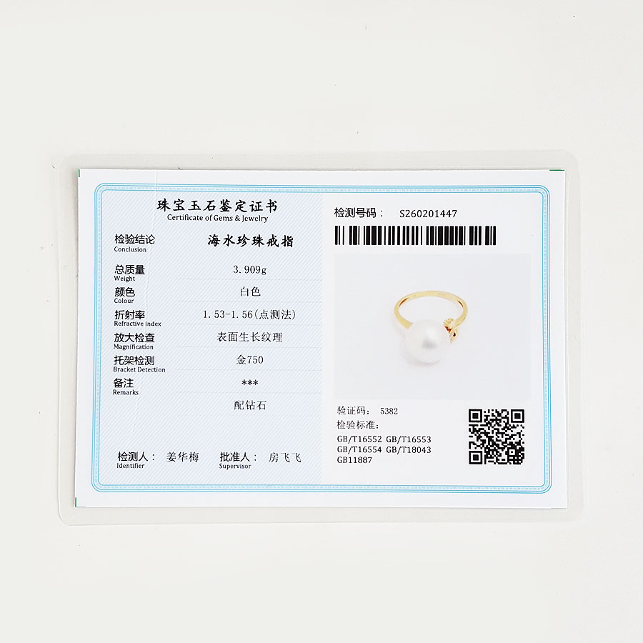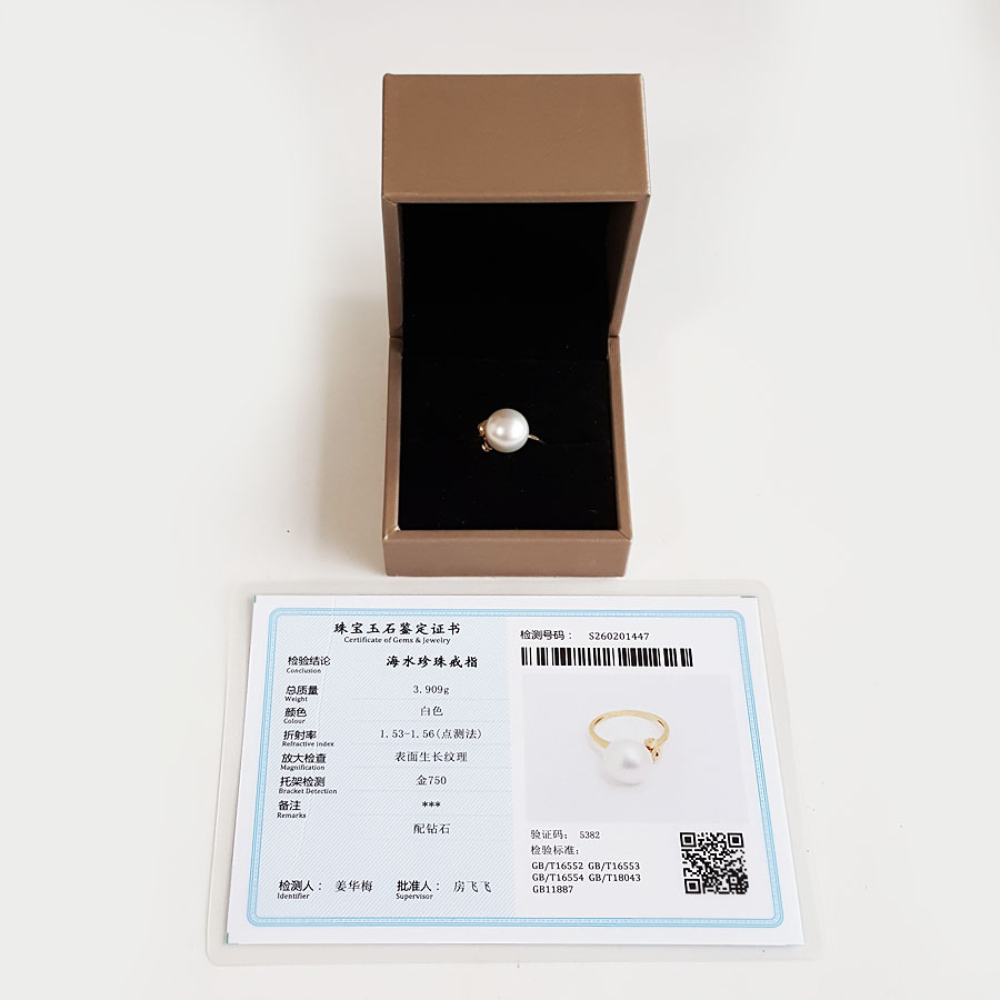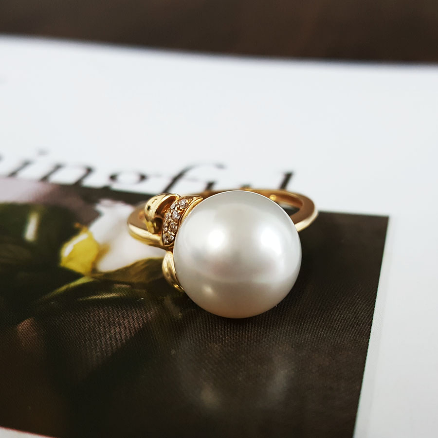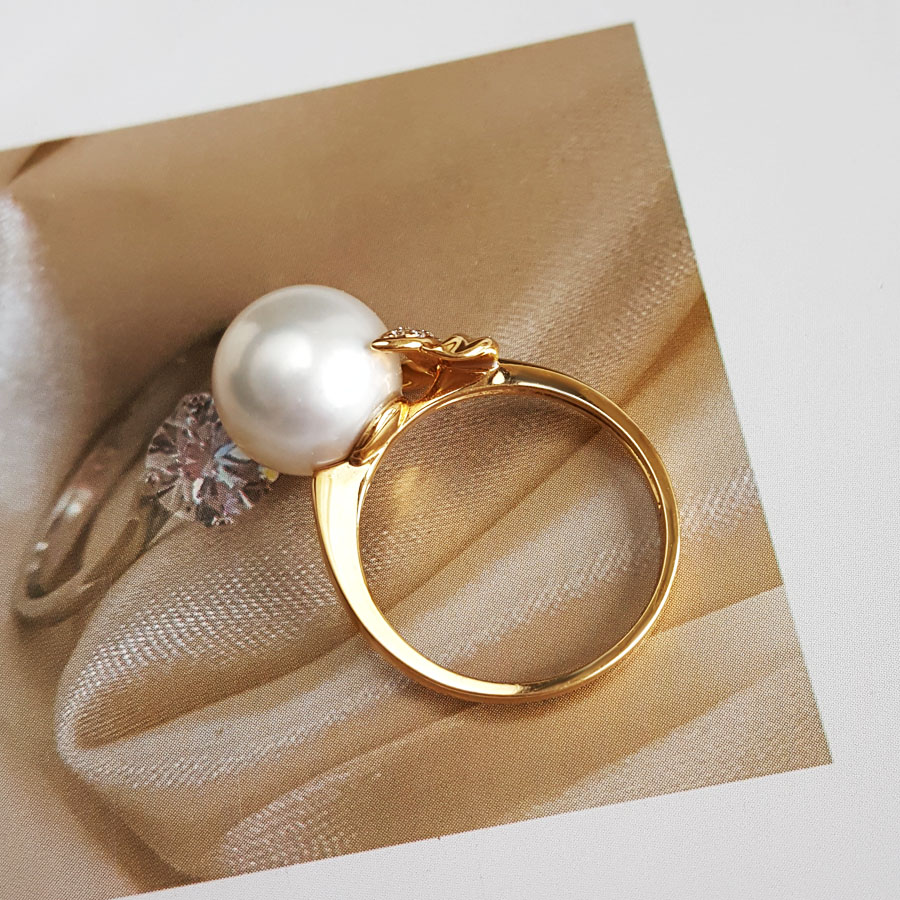 名称 | AU750黄金镶钻镶天然近完美约11MM澳白海水珍珠戒指 |