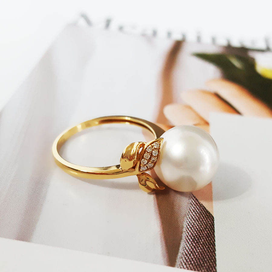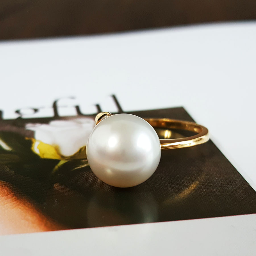 【天然正品】AU750黄金镶钻镶天然近完美约11MM澳白海水珍珠戒指 14号(戒圈可改)280226NJT20