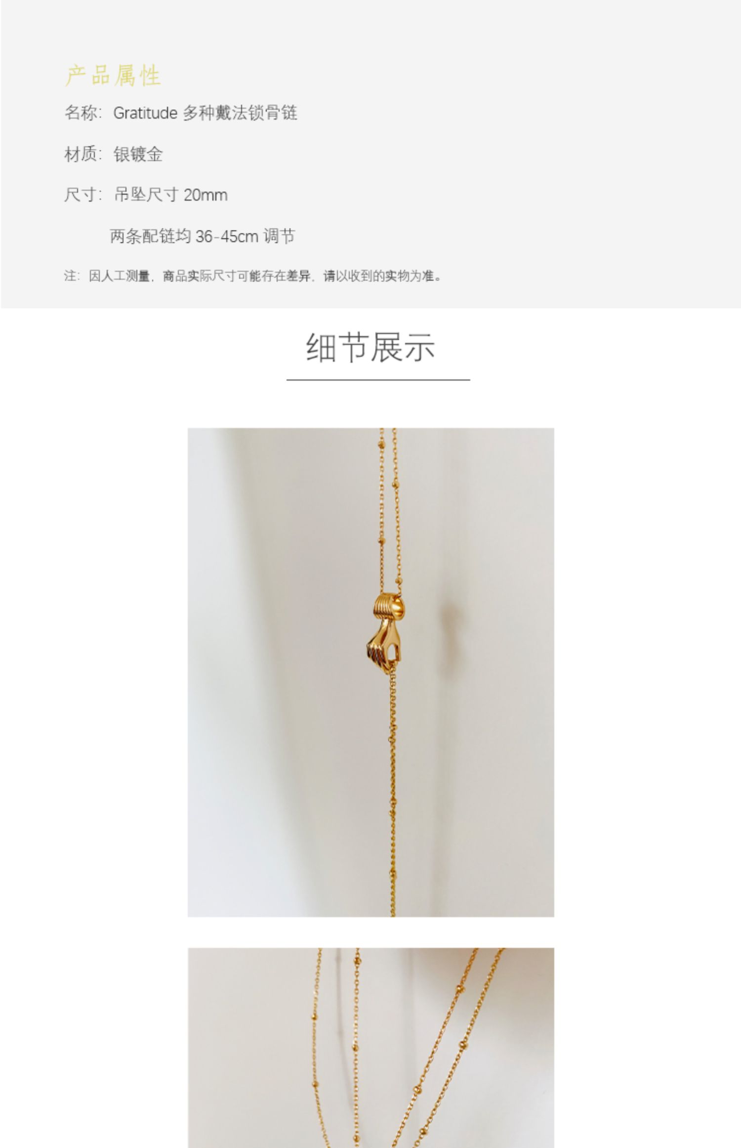 LHWINDSOR Gratitude手造型项链多种戴法锁骨链项链银镀金