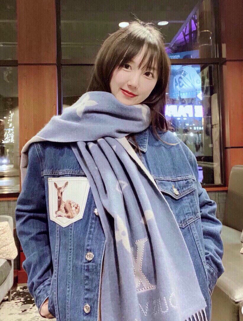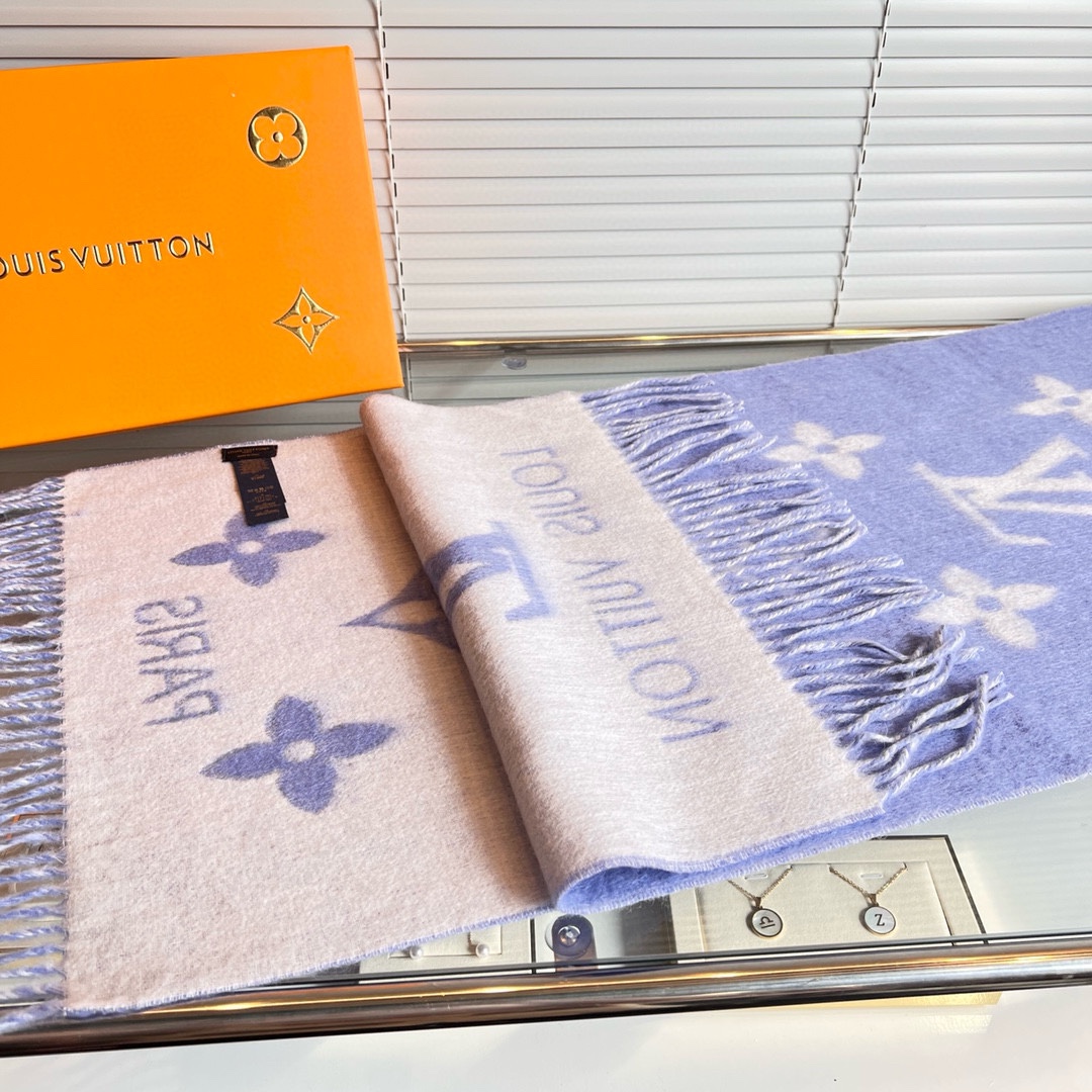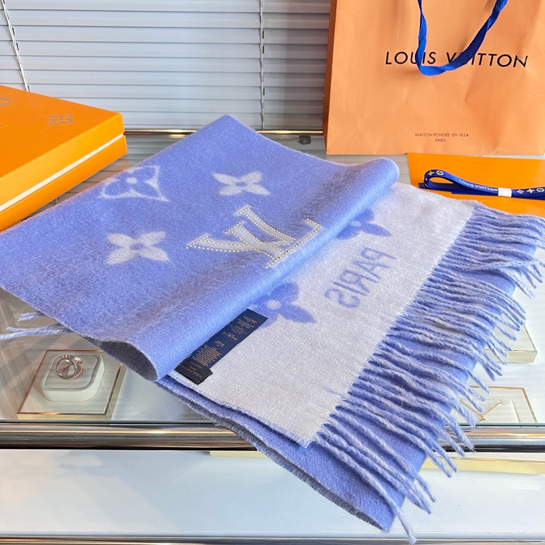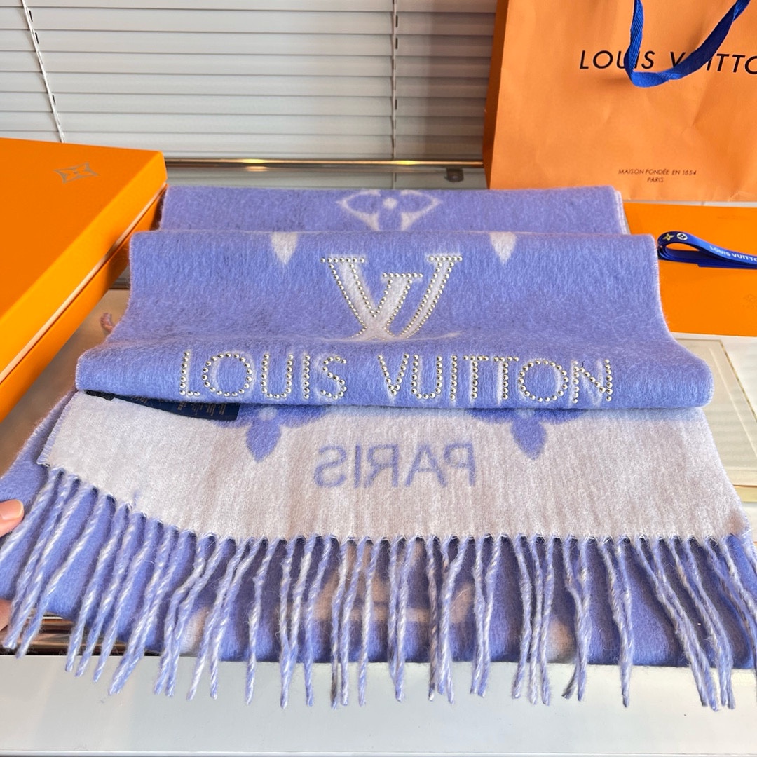 官网同步新款原单【雷克雅维克铆钉版]此款 Studdy R**kjavik 围巾融入了摇滚元素,为寒冷冬日带来摇滚韵律。柔软的羊绒面料上饰有大号Monogram Flowers 和LV 首字母织纹,搭配抛光饰钉装饰,质感轻盈,是理想的旅行伴侣Monogram Flowers 和 LV 首字母提花织纹背景,金色金属饰钉,底端饰有对比色路易威登英文字样,尺寸:170x45cm