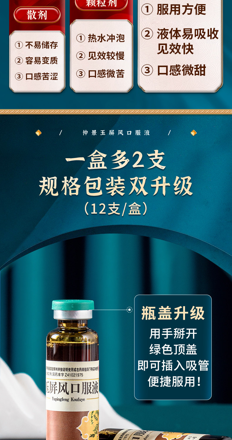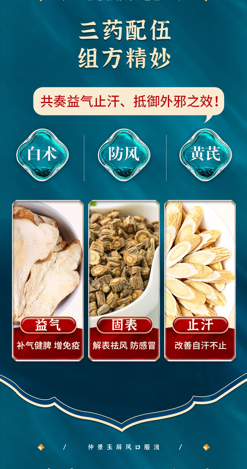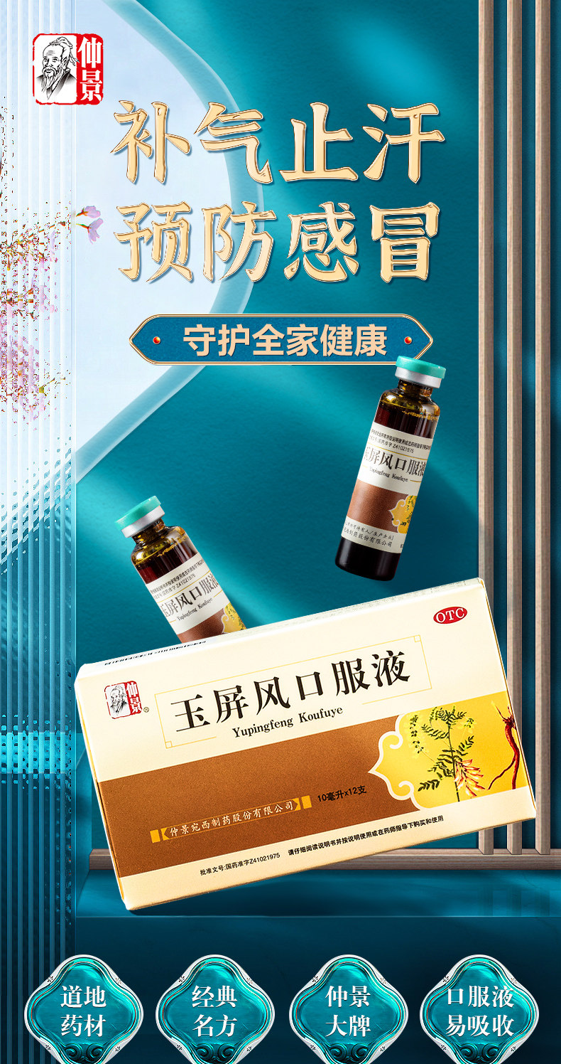 仲景玉屏风口服液官方旗舰店止汗儿童易感冒药黄芪精颗粒散中成药