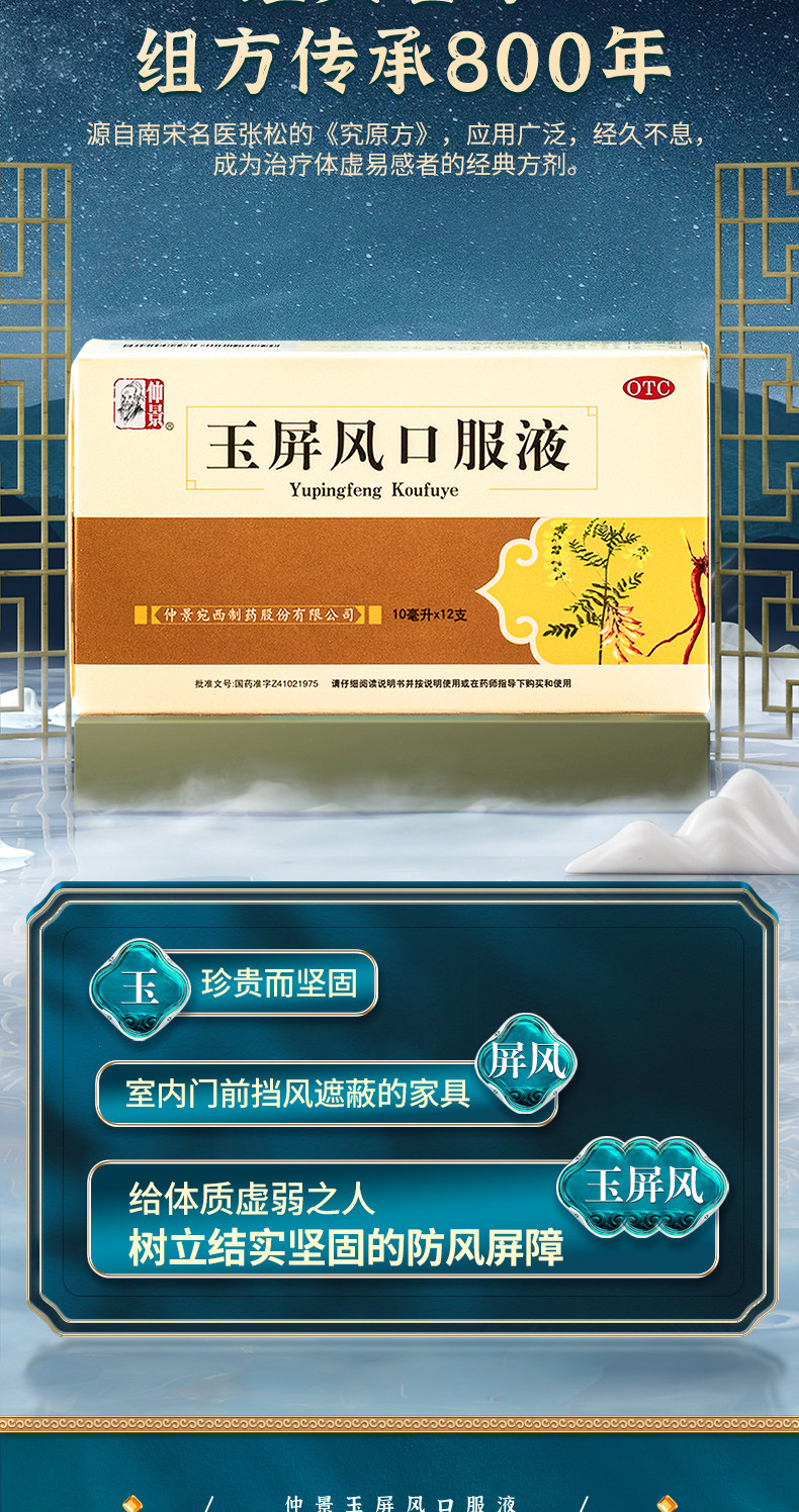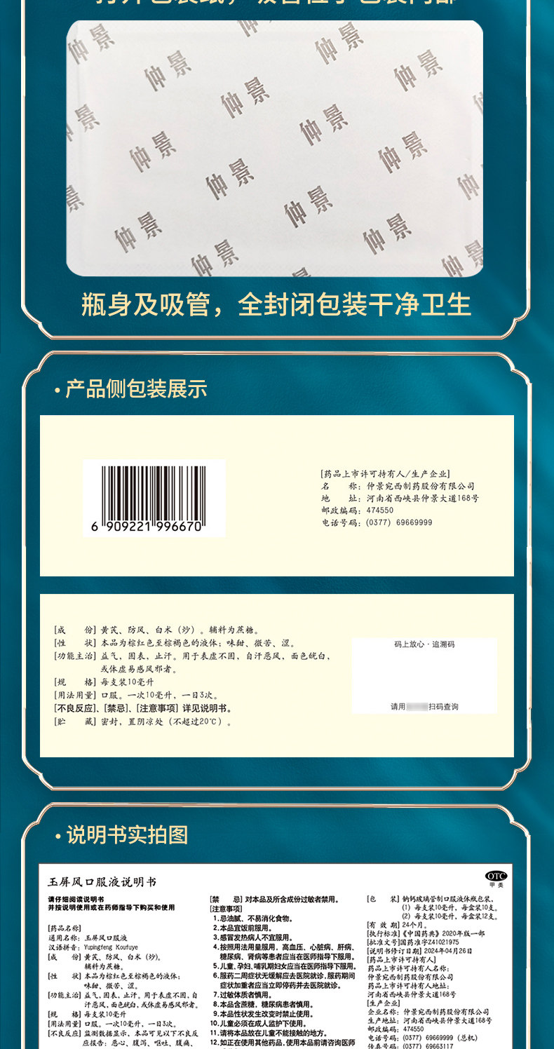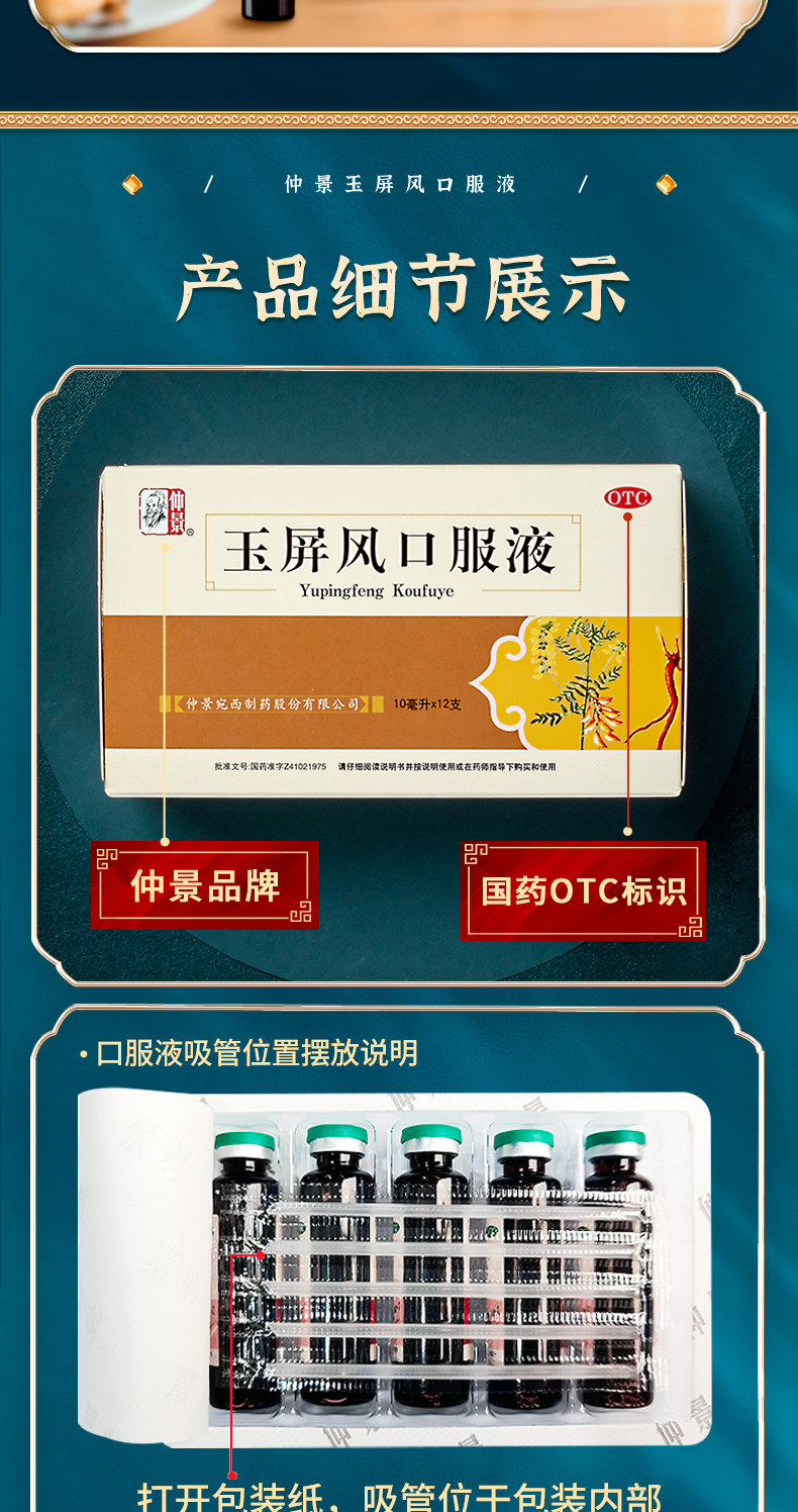 仲景玉屏风口服液官方旗舰店止汗儿童易感冒药黄芪精颗粒散中成药