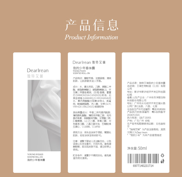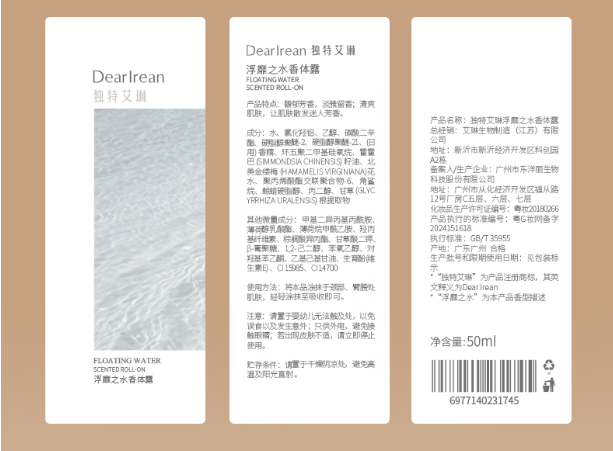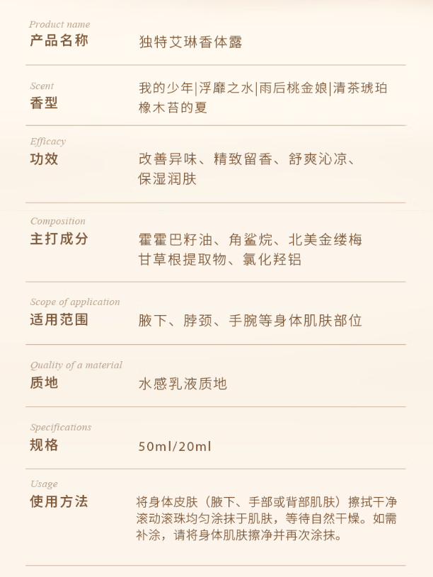 独特艾琳(Dear lrean)香体露50ml 沁心凉感净味留香流汗必备随身携带