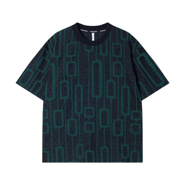 T2421春夏新款时尚个性韩版几何图案撞色圆领短袖T恤百搭宽松潮流上衣