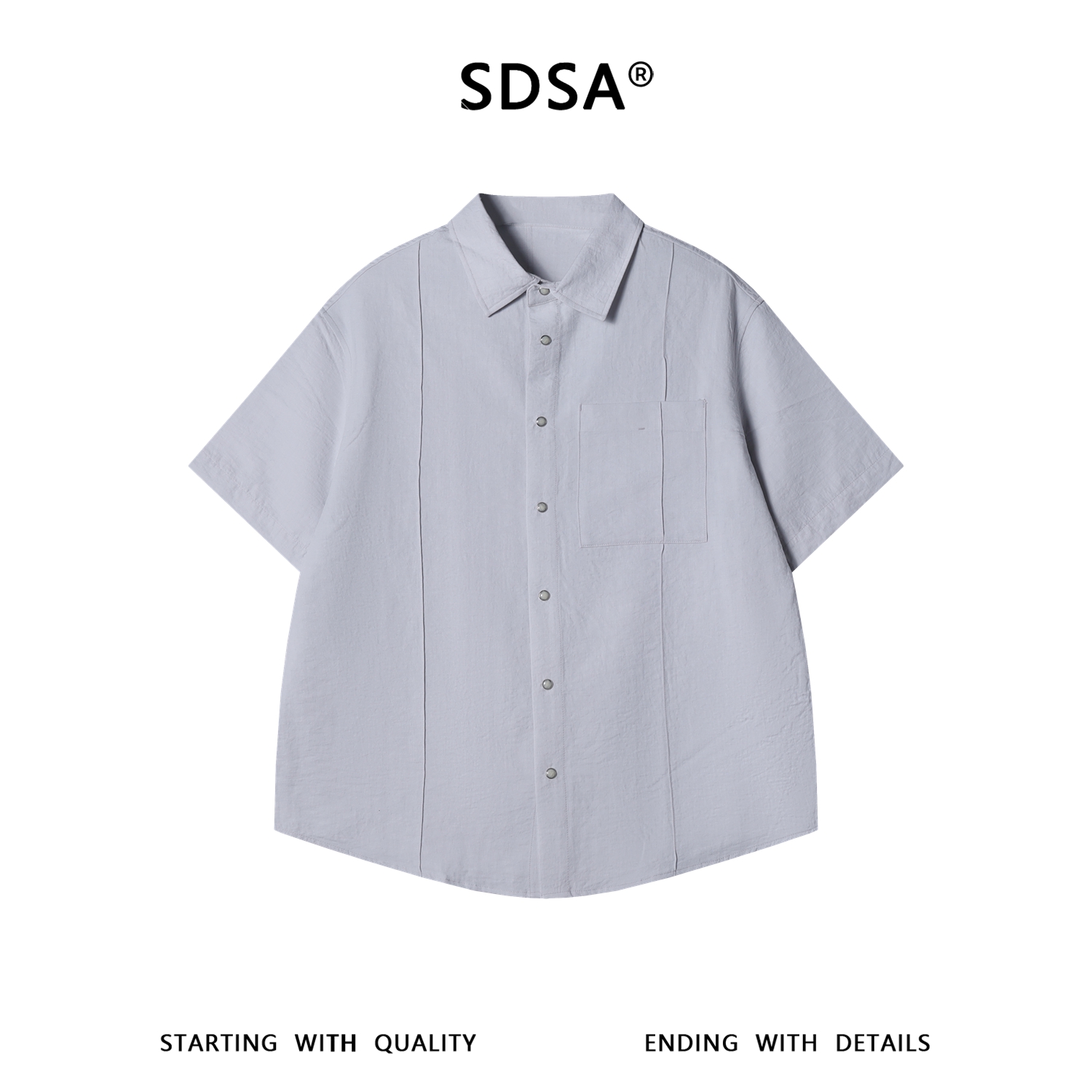 SDSA男装2026新款高贵轻奢简约立体竖条压褶短袖衬衫百搭简约衬衣