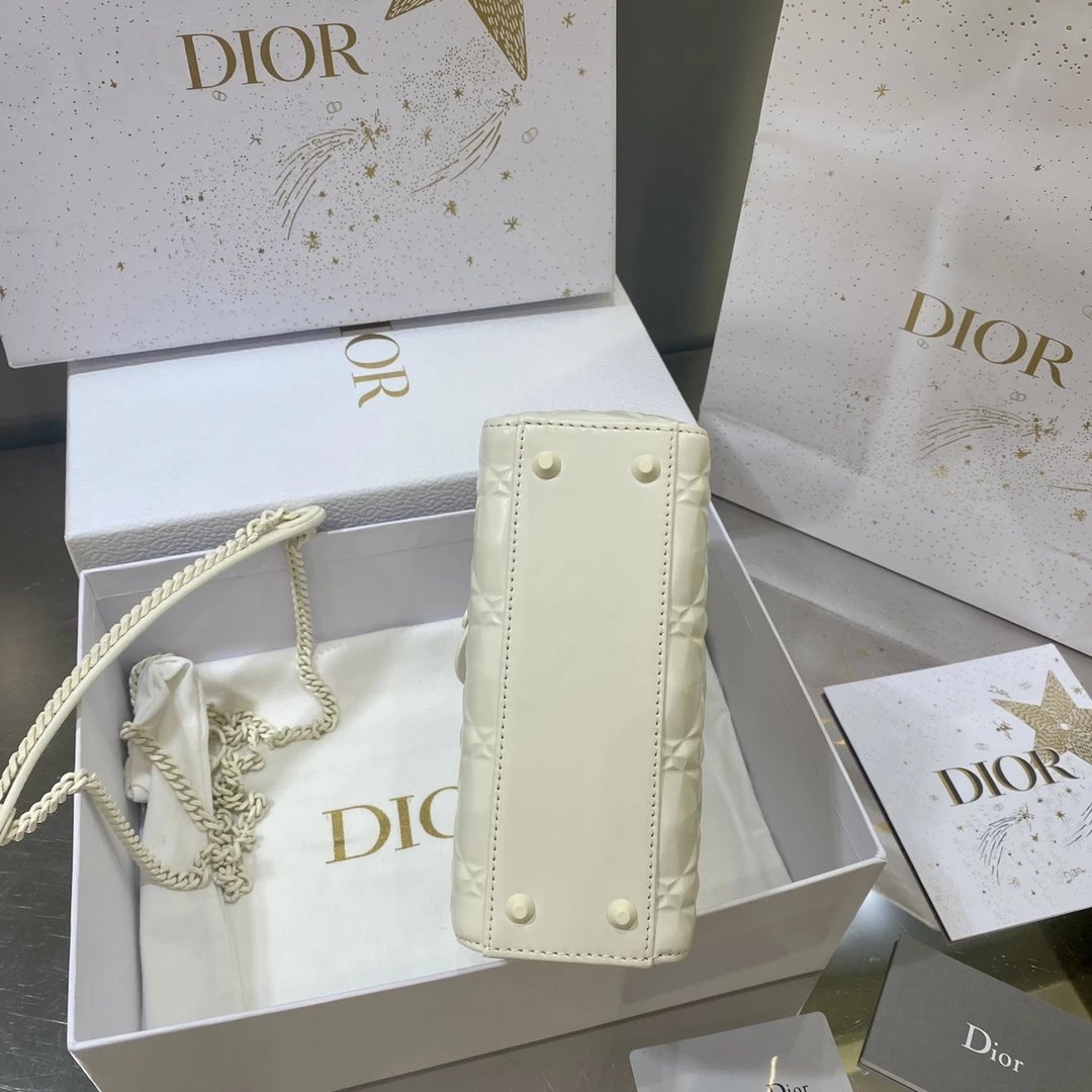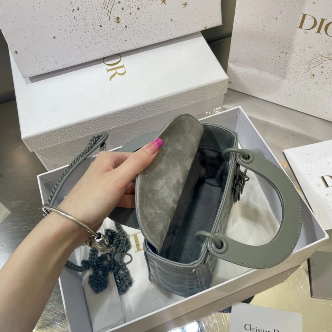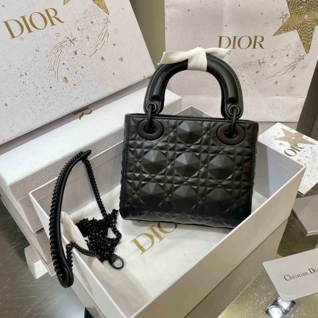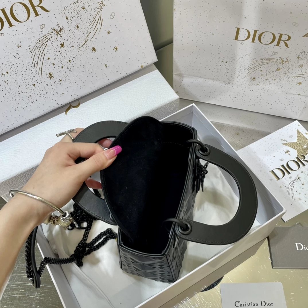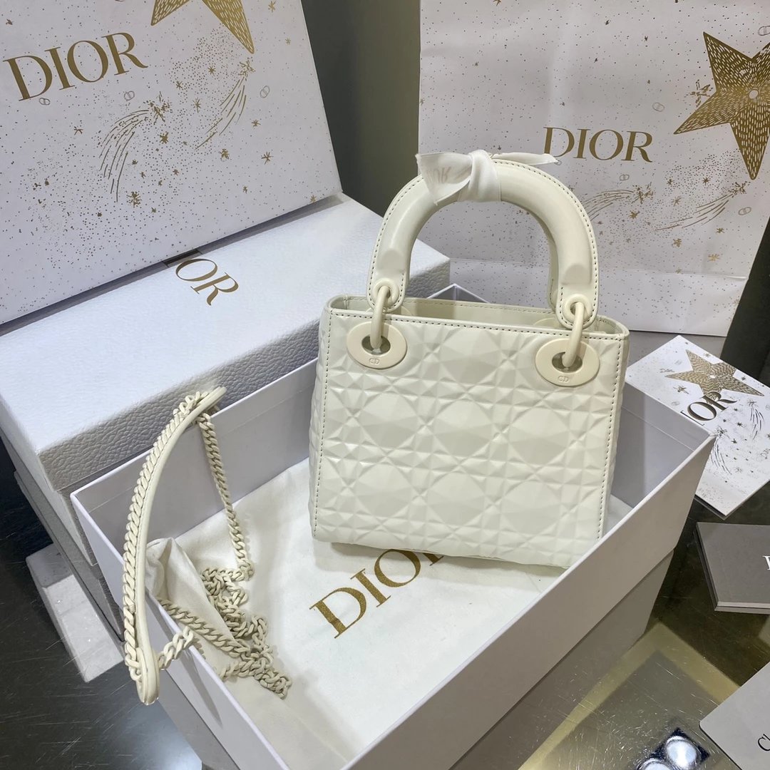Dio.r lady 钻石藤格纹到货 采用全钢进口五金Lady 系列高雅经典的款式,采用钻石藤格纹缉面线羊皮革精心制作,迷你款式,搭配可拆卸的链条肩带,可手提、肩背或斜挎?尺寸:17 CM