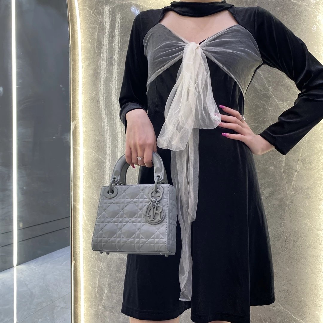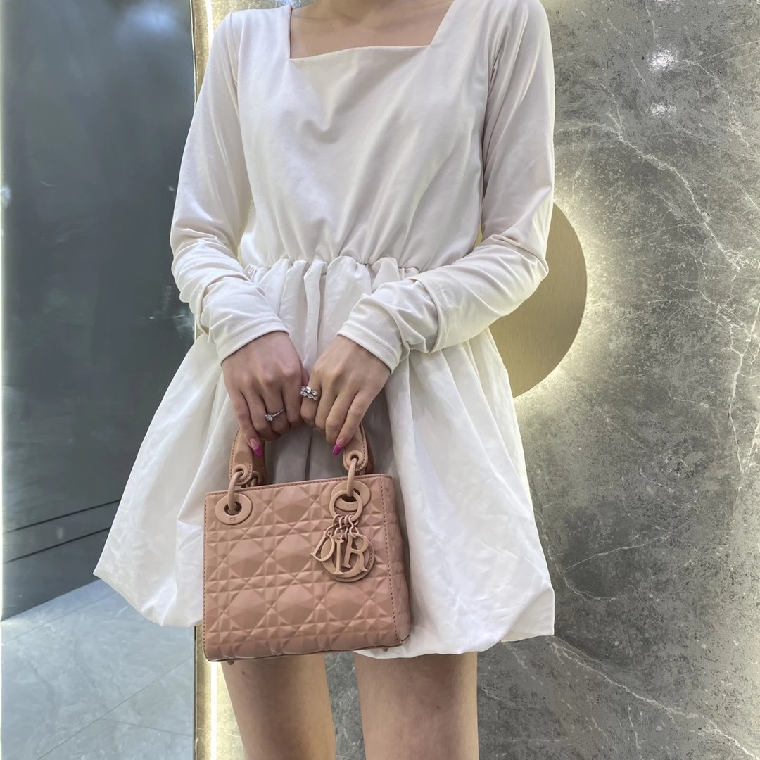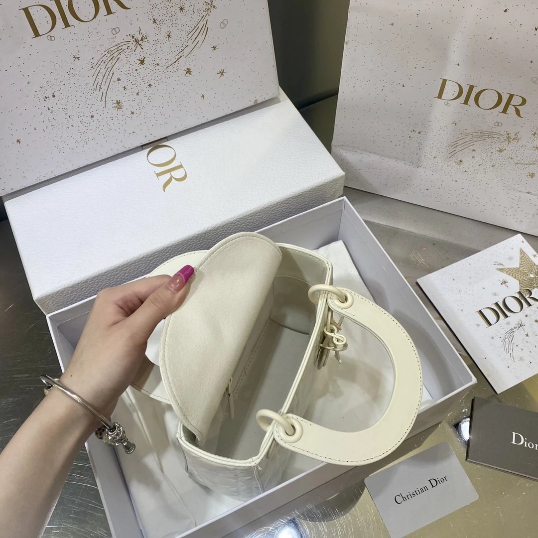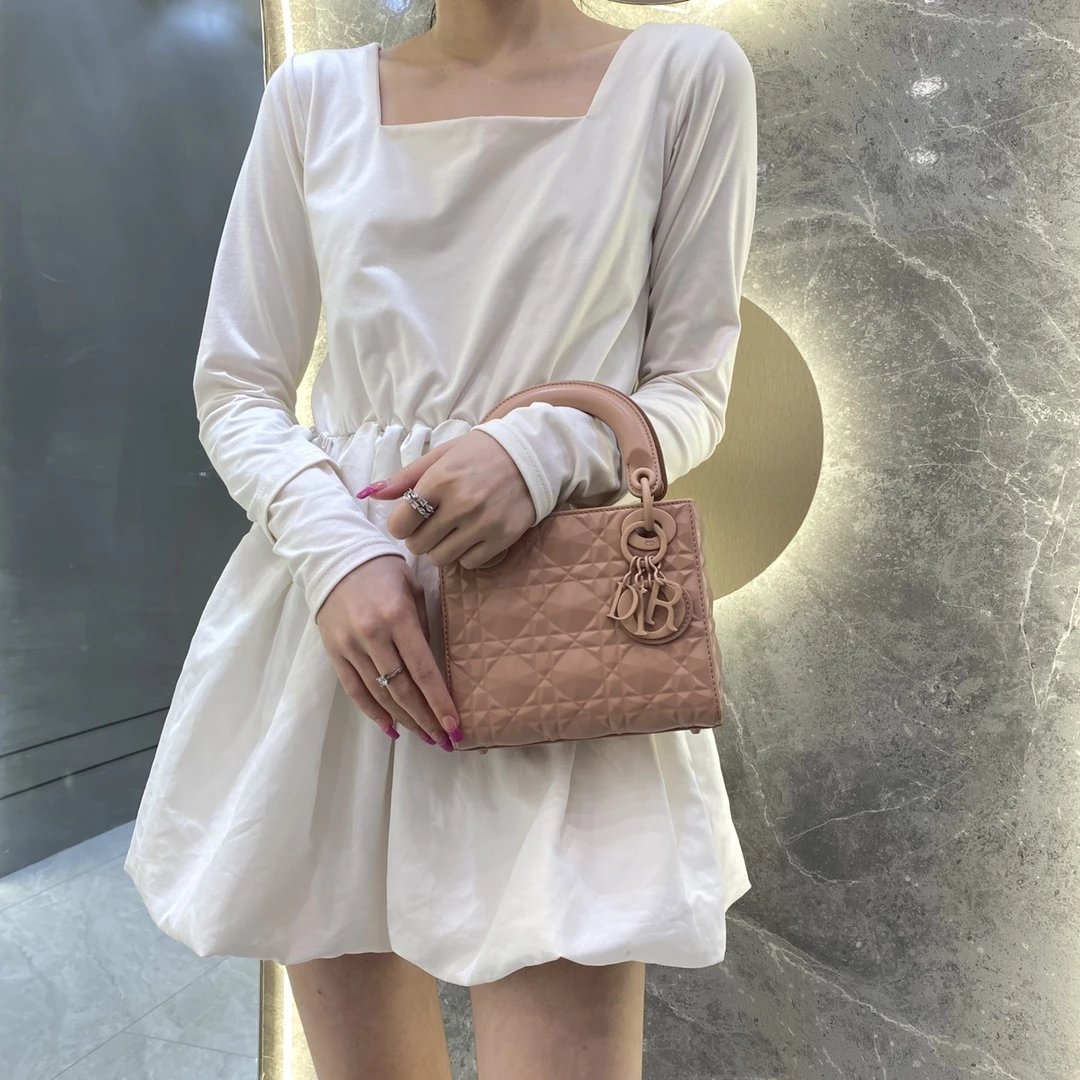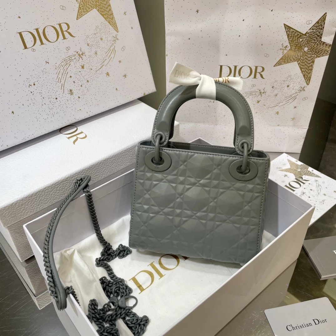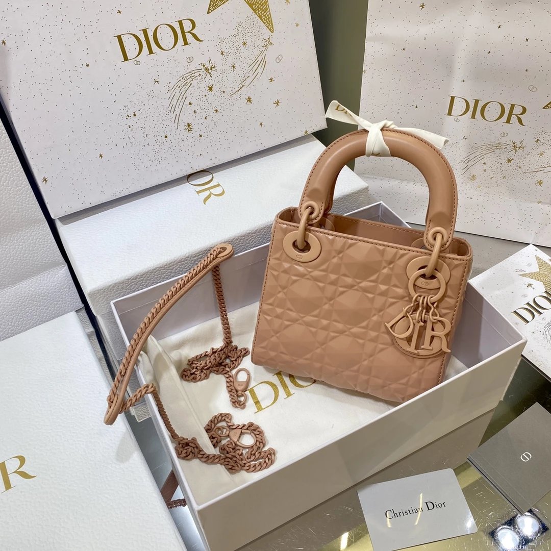 Dio.r lady 钻石藤格纹到货 采用全钢进口五金Lady 系列高雅经典的款式,采用钻石藤格纹缉面线羊皮革精心制作,迷你款式,搭配可拆卸的链条肩带,可手提、肩背或斜挎?尺寸:17 CM
