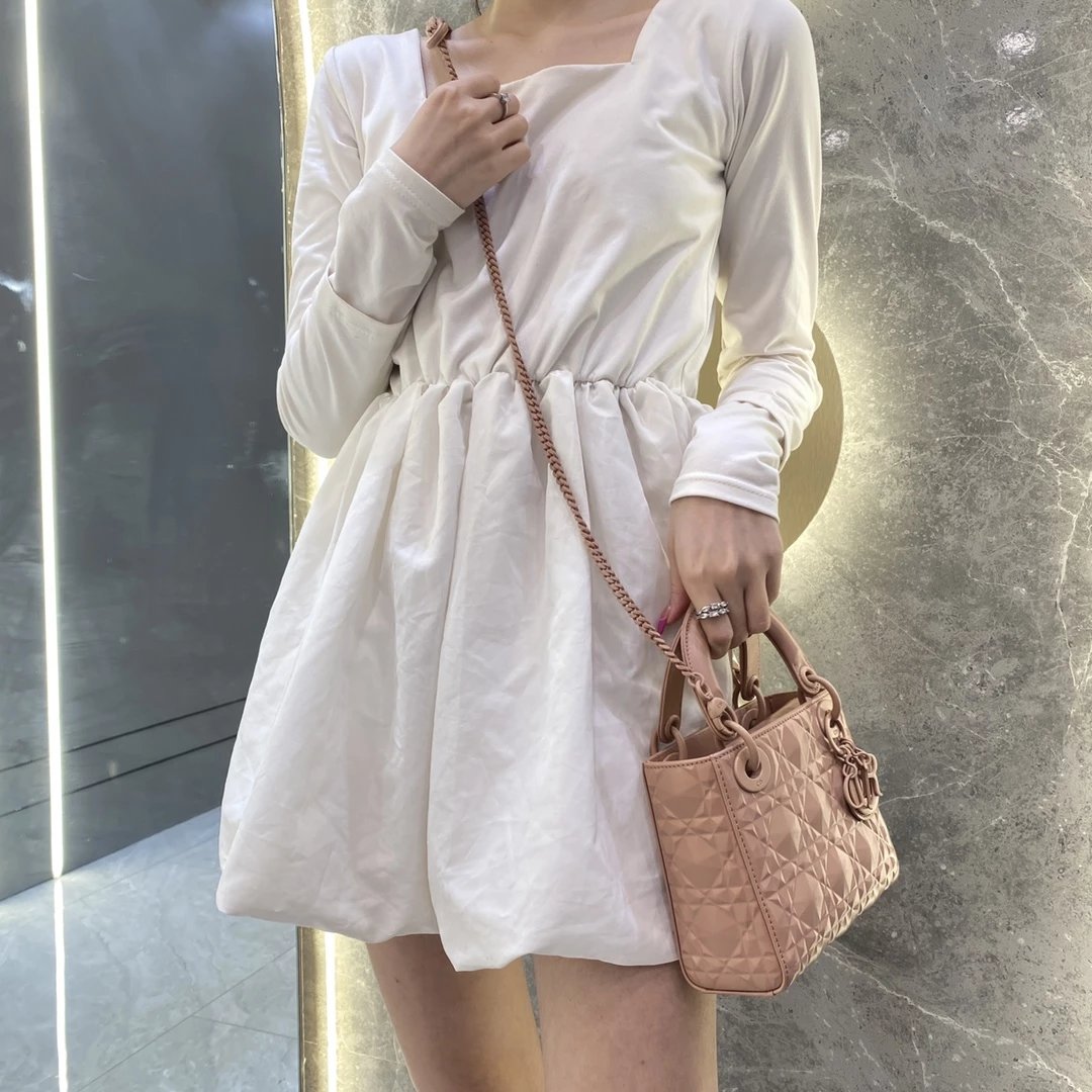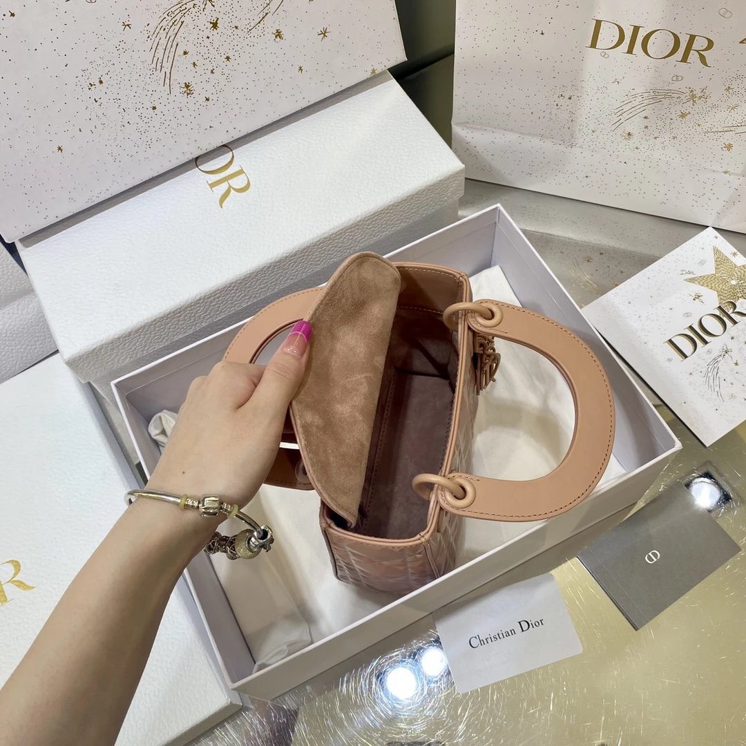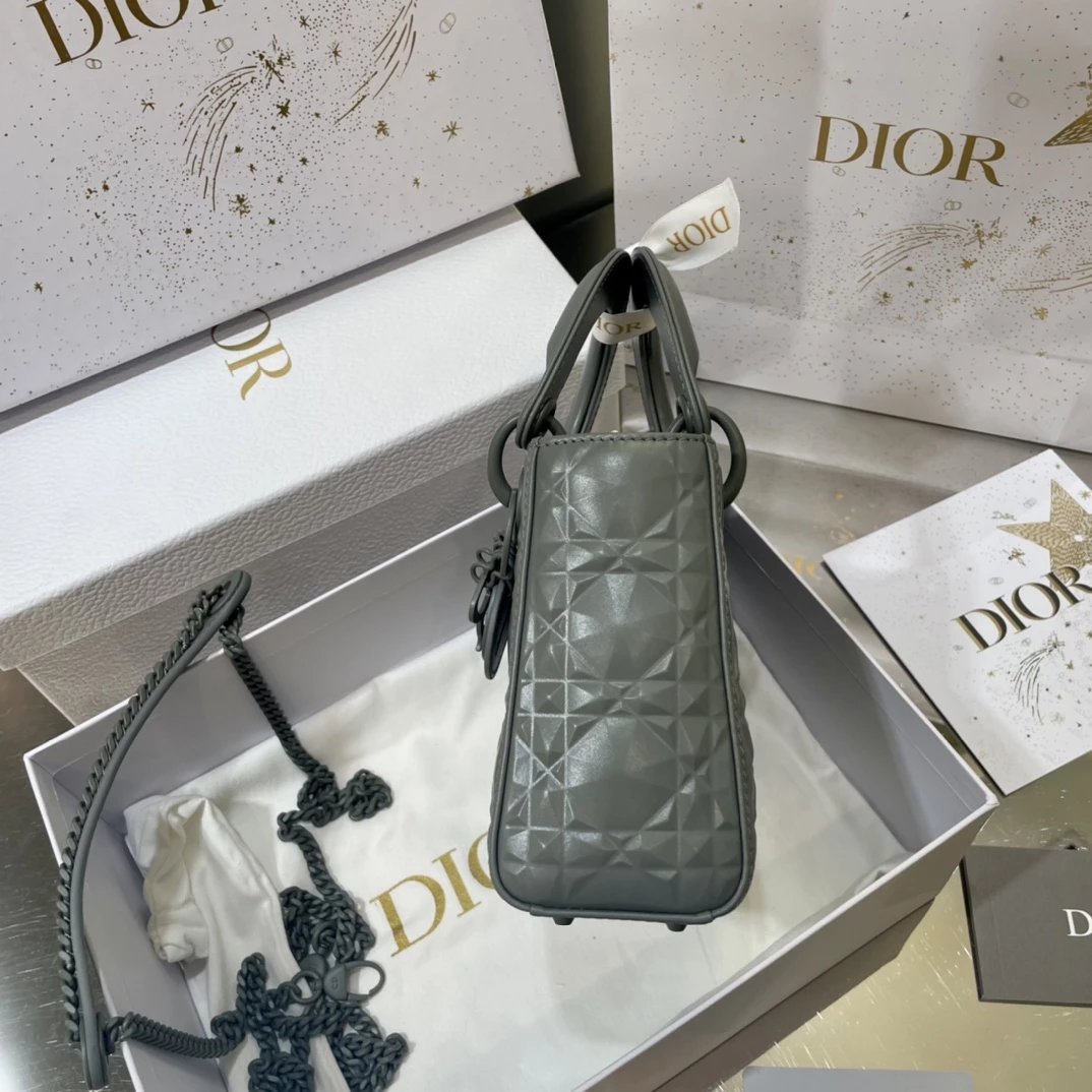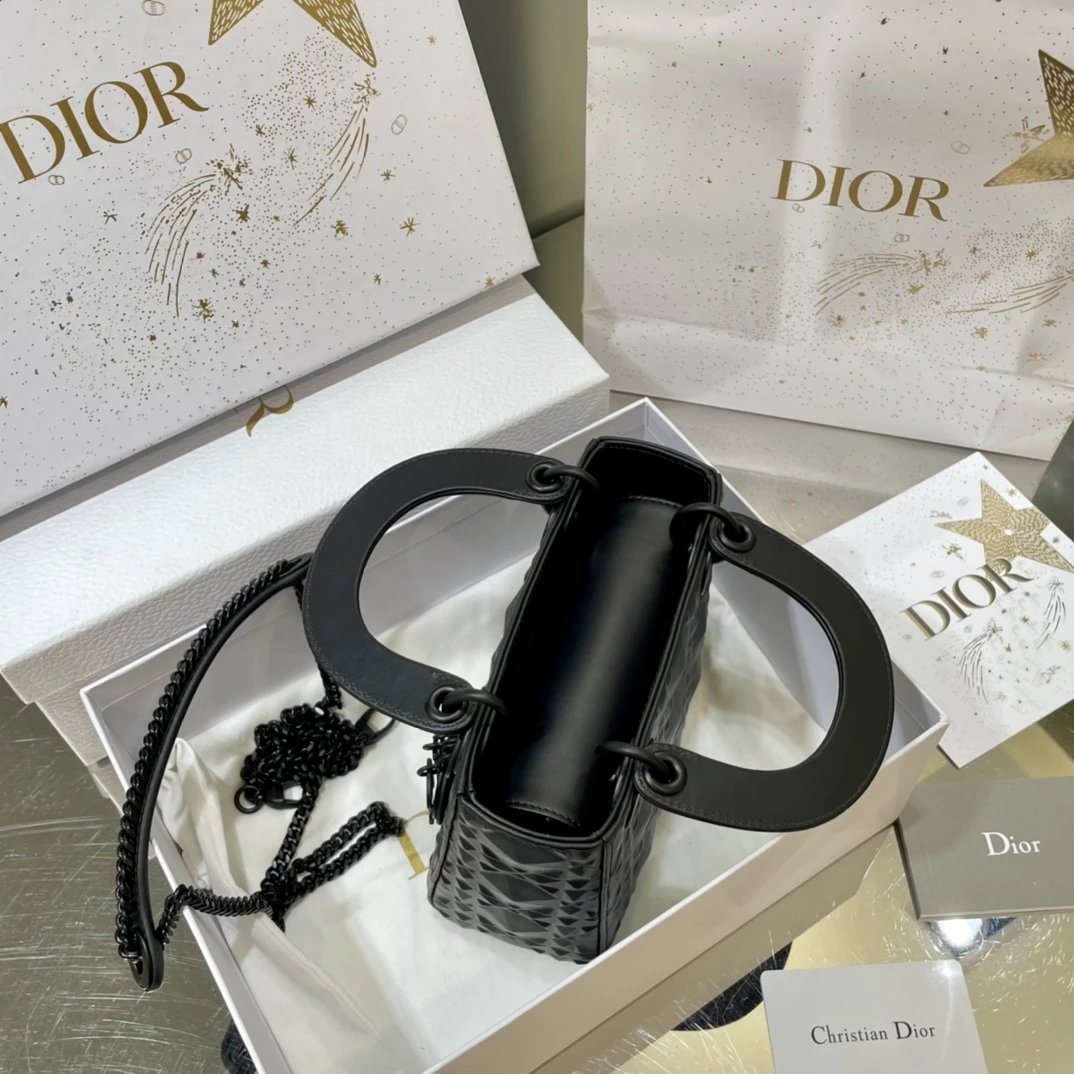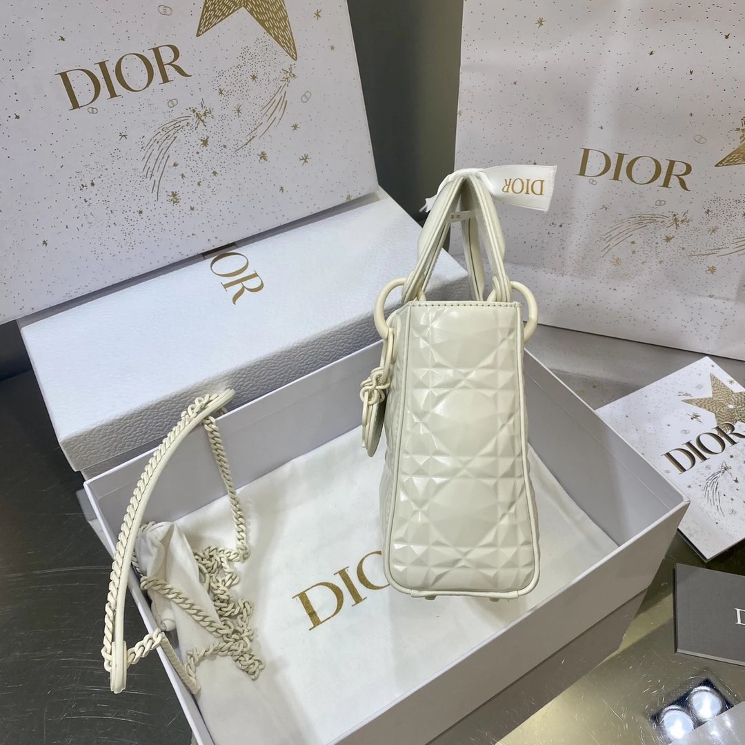 Dio.r lady 钻石藤格纹到货 采用全钢进口五金Lady 系列高雅经典的款式,采用钻石藤格纹缉面线羊皮革精心制作,迷你款式,搭配可拆卸的链条肩带,可手提、肩背或斜挎?尺寸:17 CM