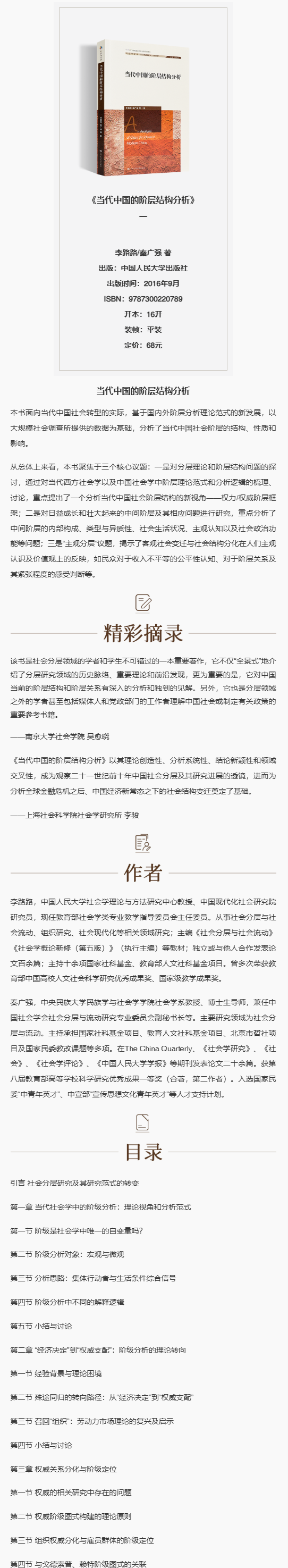 社会学文库《当代中国的阶层结构分析》李路路 / 秦广强 等著