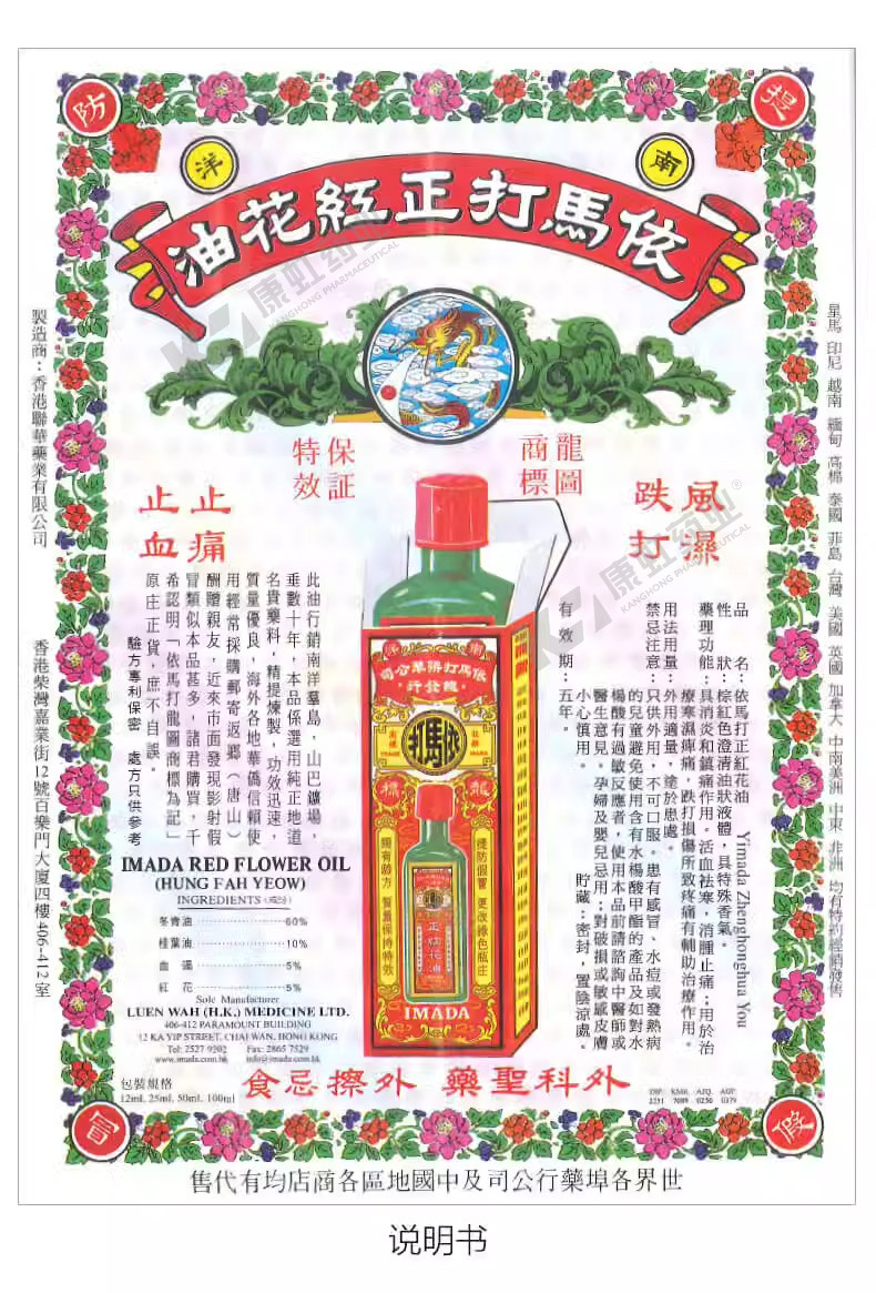 香港依马打正红花油50ml消除红肿活血化瘀驱寒消肿止痛疼痛活络油