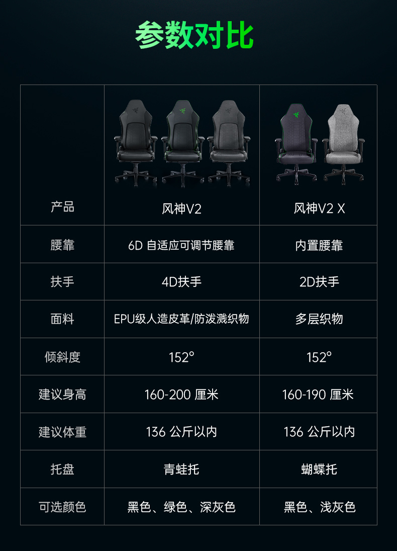 Razer雷蛇风神V2 X 织物版人体工学电脑椅电竞椅【雷蛇官方直营,4年有限质保】