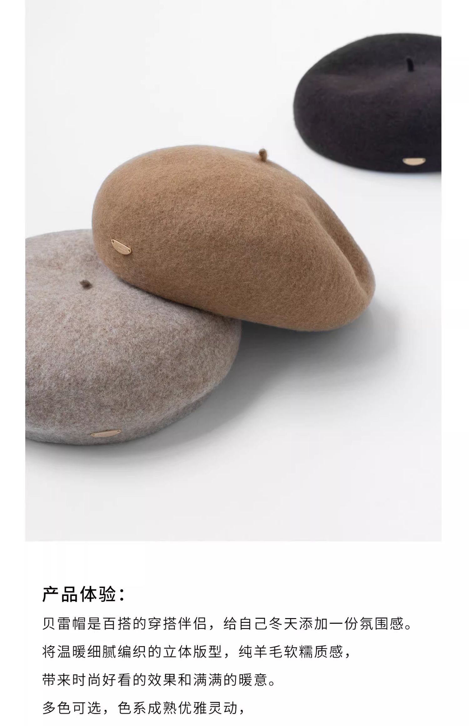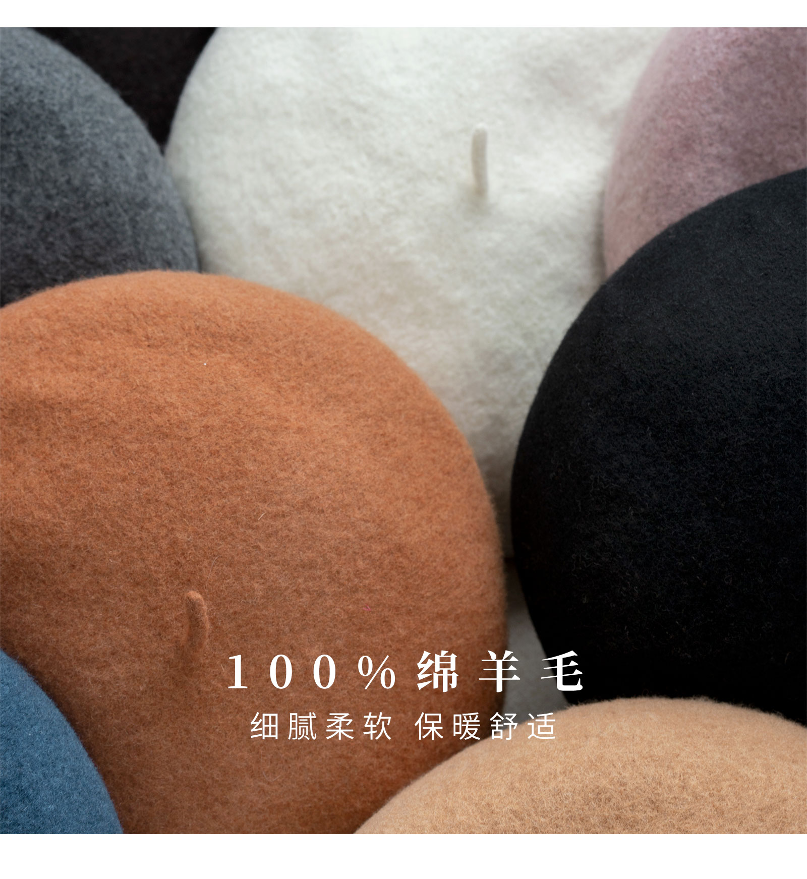 疯帽子 日系百搭纯色羊毛贝雷帽秋冬保暖画家帽MB244